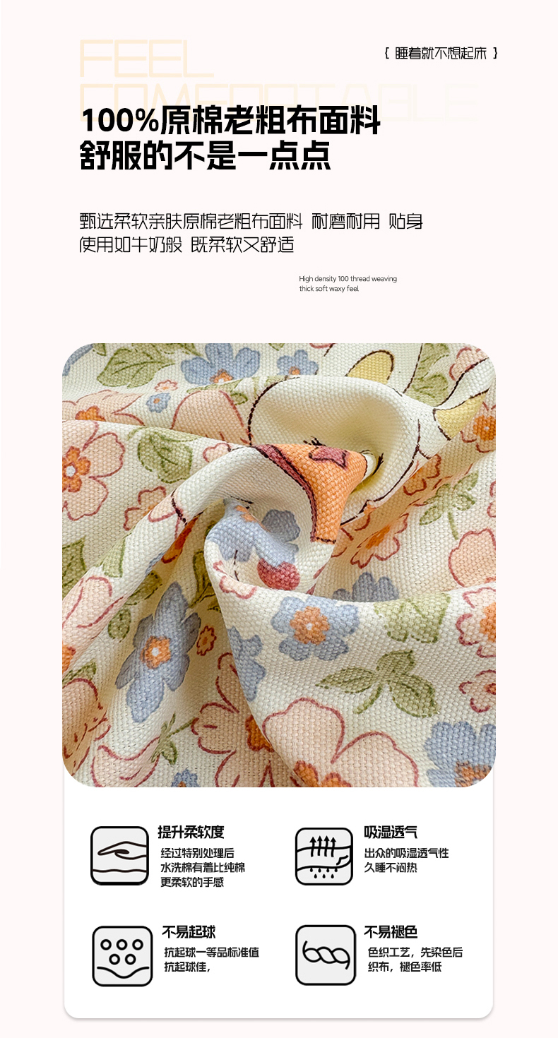 • 91家纺网 家纺一手货源 找家纺 爱彼家纺  2025新款锦柔老粗布席子凉席床单热卖花型 繁花兔影