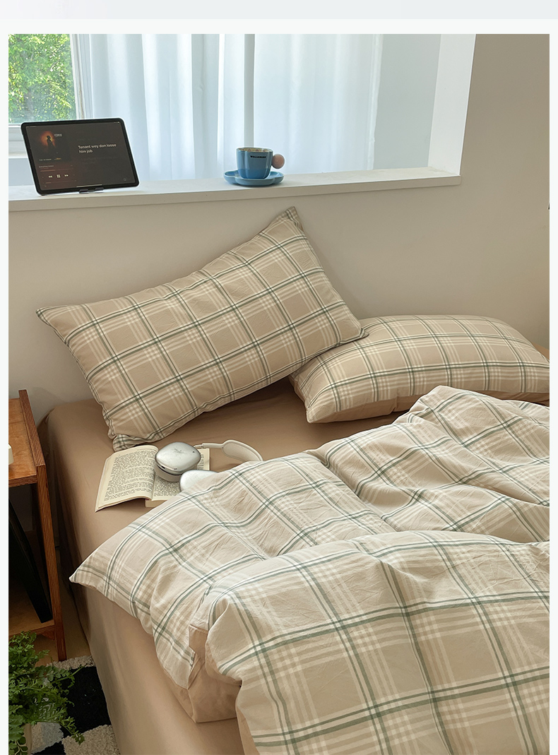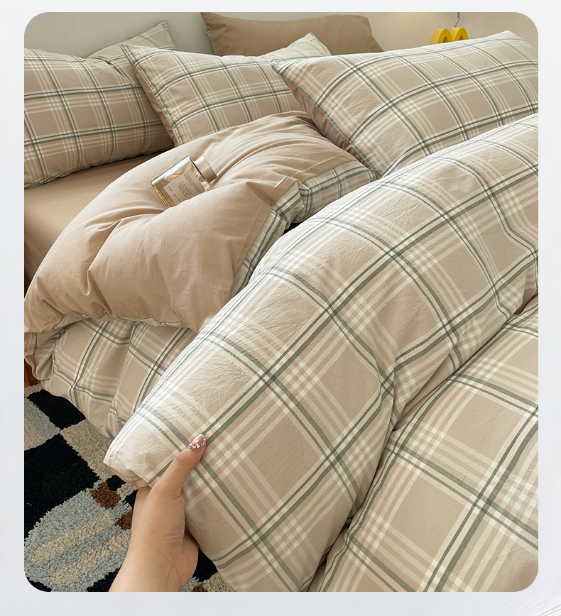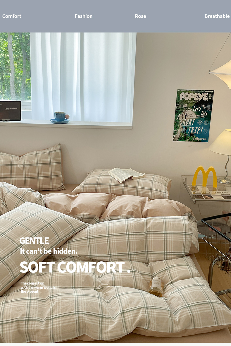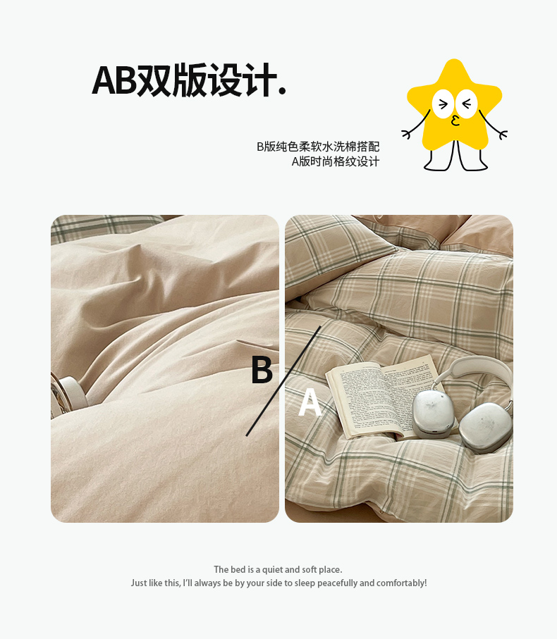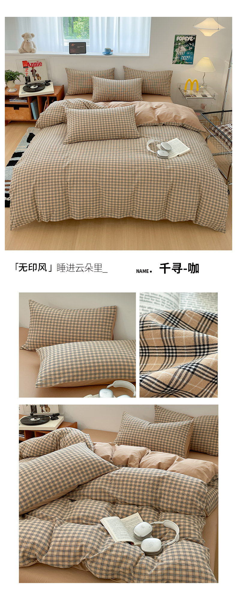 当前位置: 91家纺网 > 商品网购 > 床品套件 > 四件套 > 水洗棉四件套 > ab家纺 2025新款40支色织a类全棉水洗棉四件套 富士格-咖