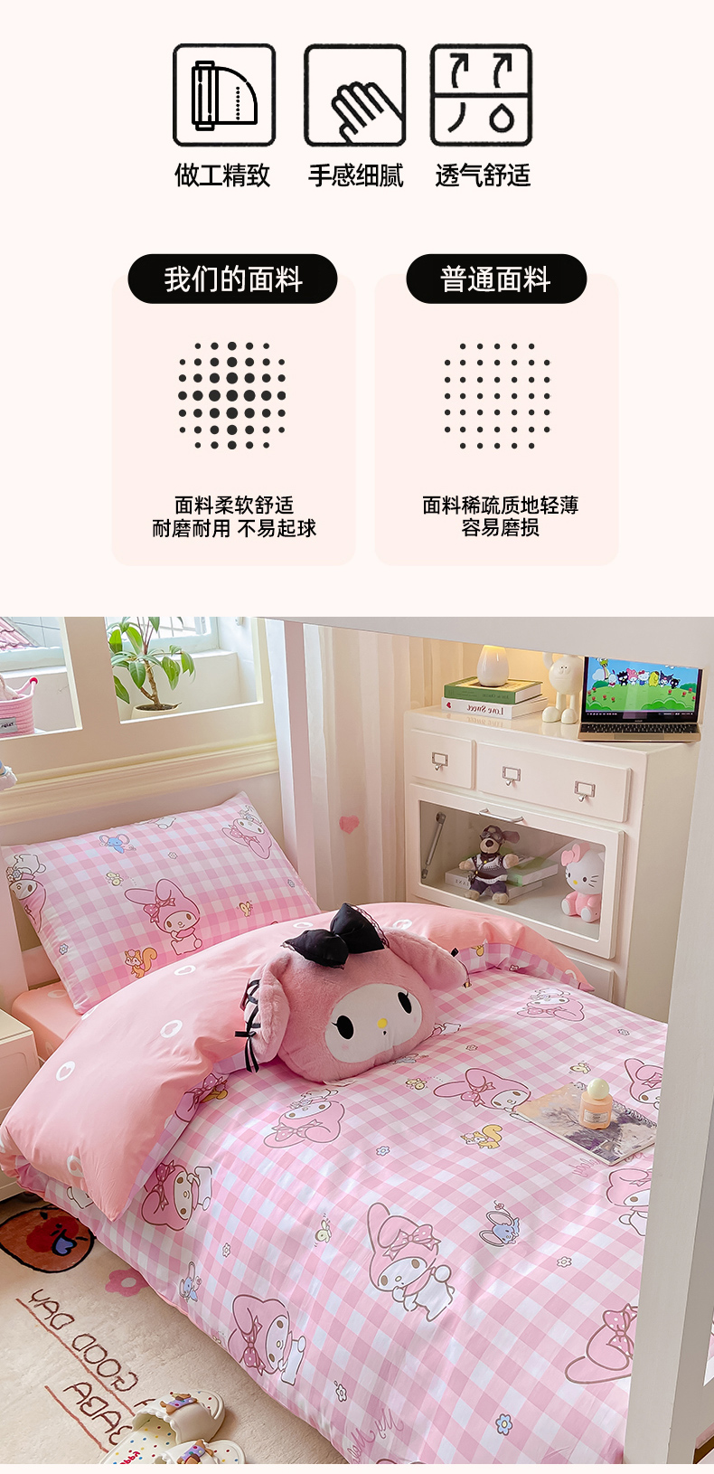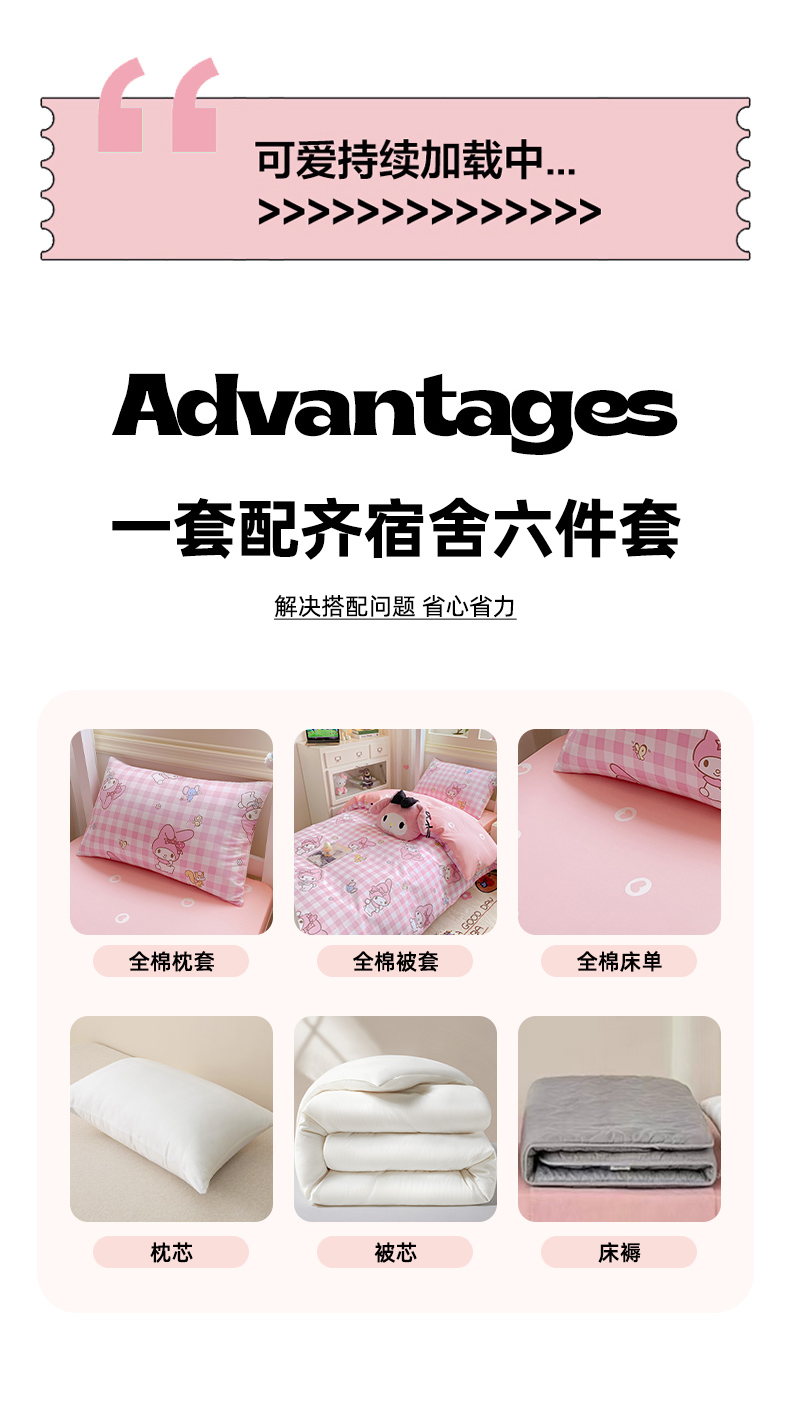 当前位置: 91家纺网 > 商品网购 > 床品套件 > 三件套 > 博雅 2025春夏新款三丽鸥全棉纯棉卡通学生宿舍三件套上下铺三件套-小版 粉格美乐蒂