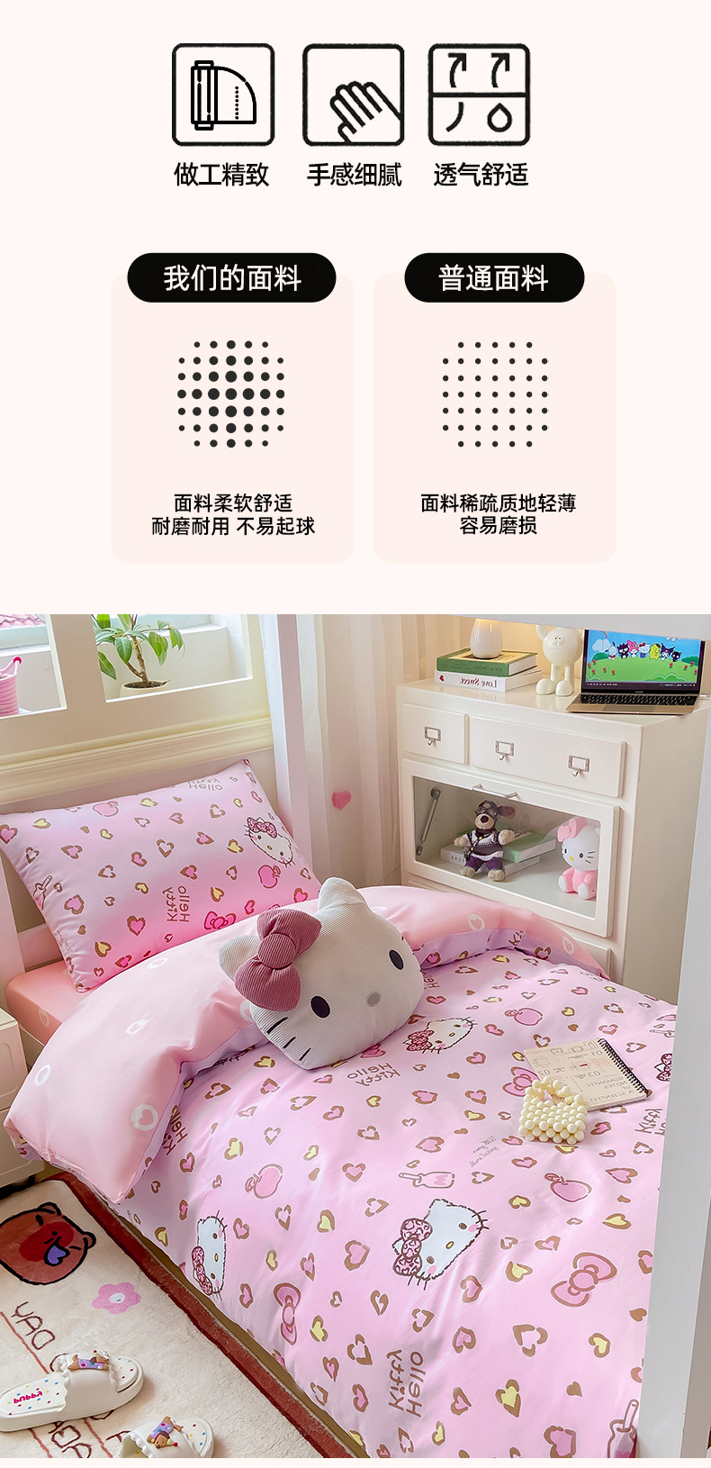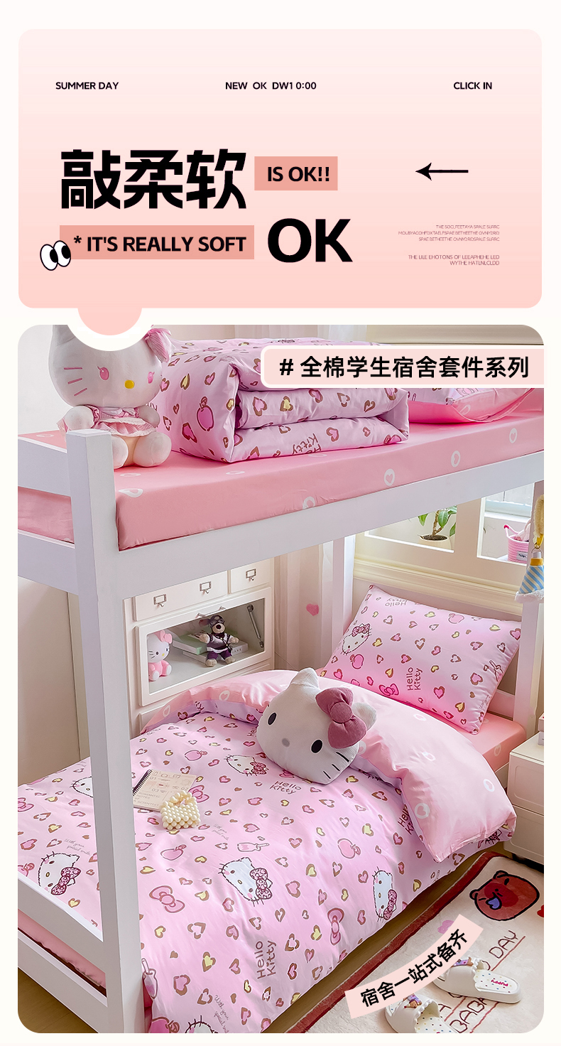 当前位置: 91家纺网 > 商品网购 > 床品套件 > 三件套 > 博雅 2025春夏新款三丽鸥全棉纯棉卡通学生宿舍三件套上下铺三件套-小版 心心KT