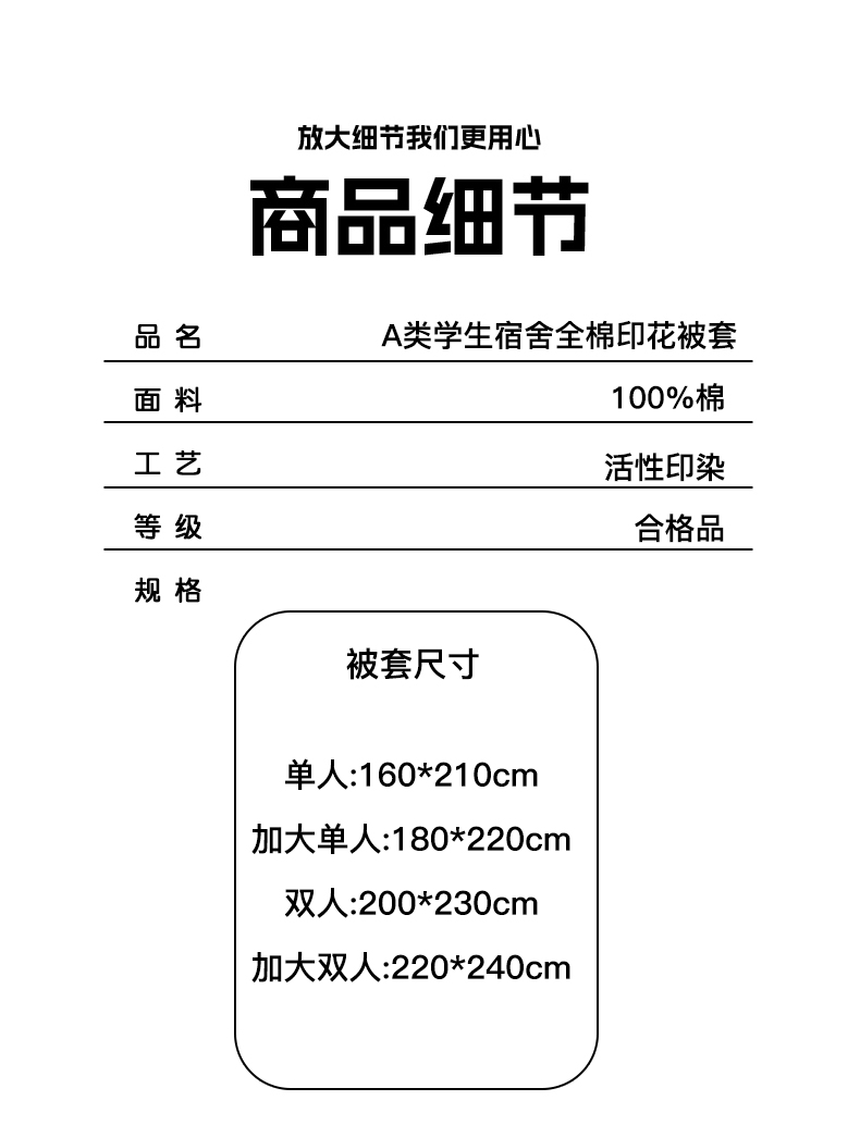 220*240cm单被套 | ¥65.00 |