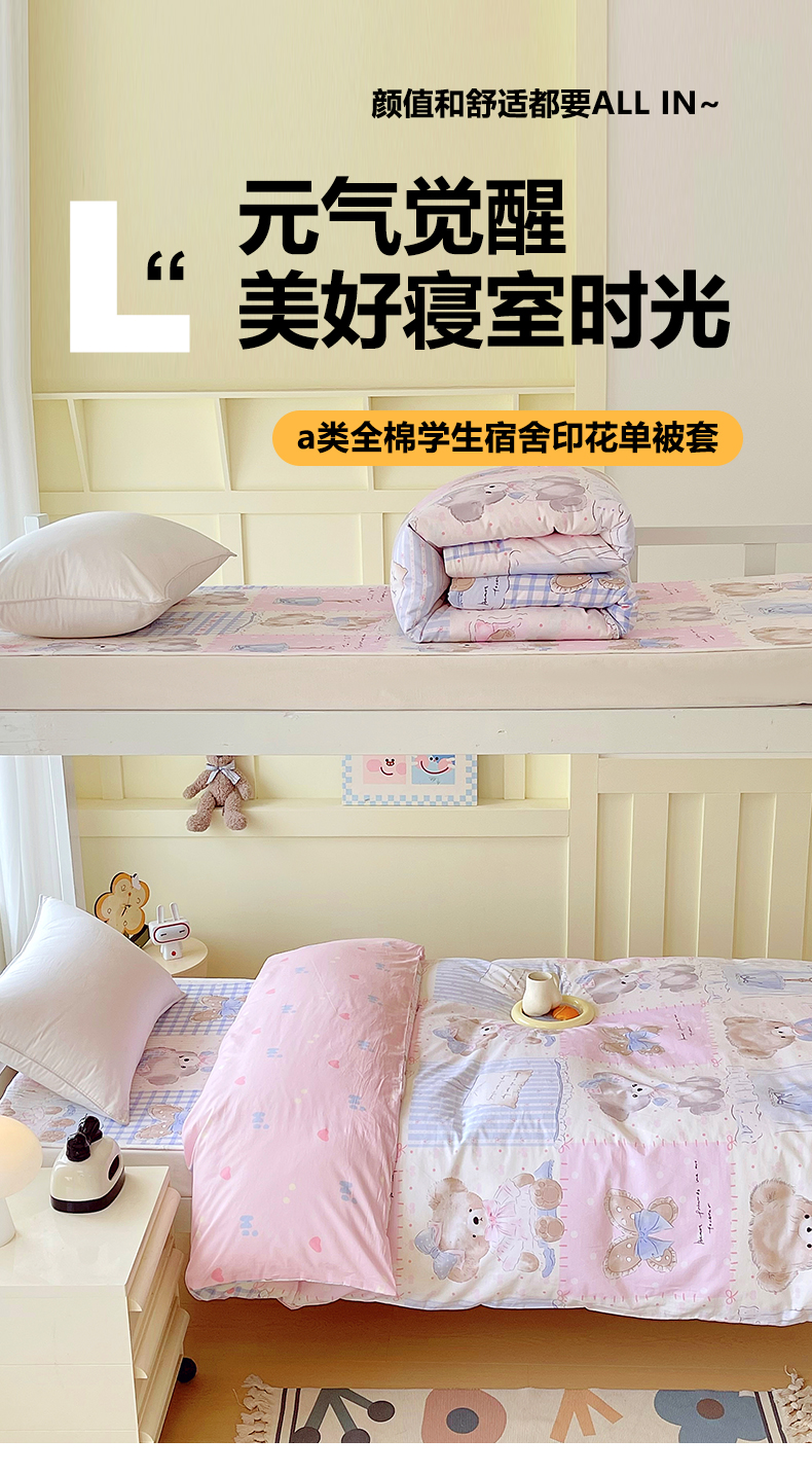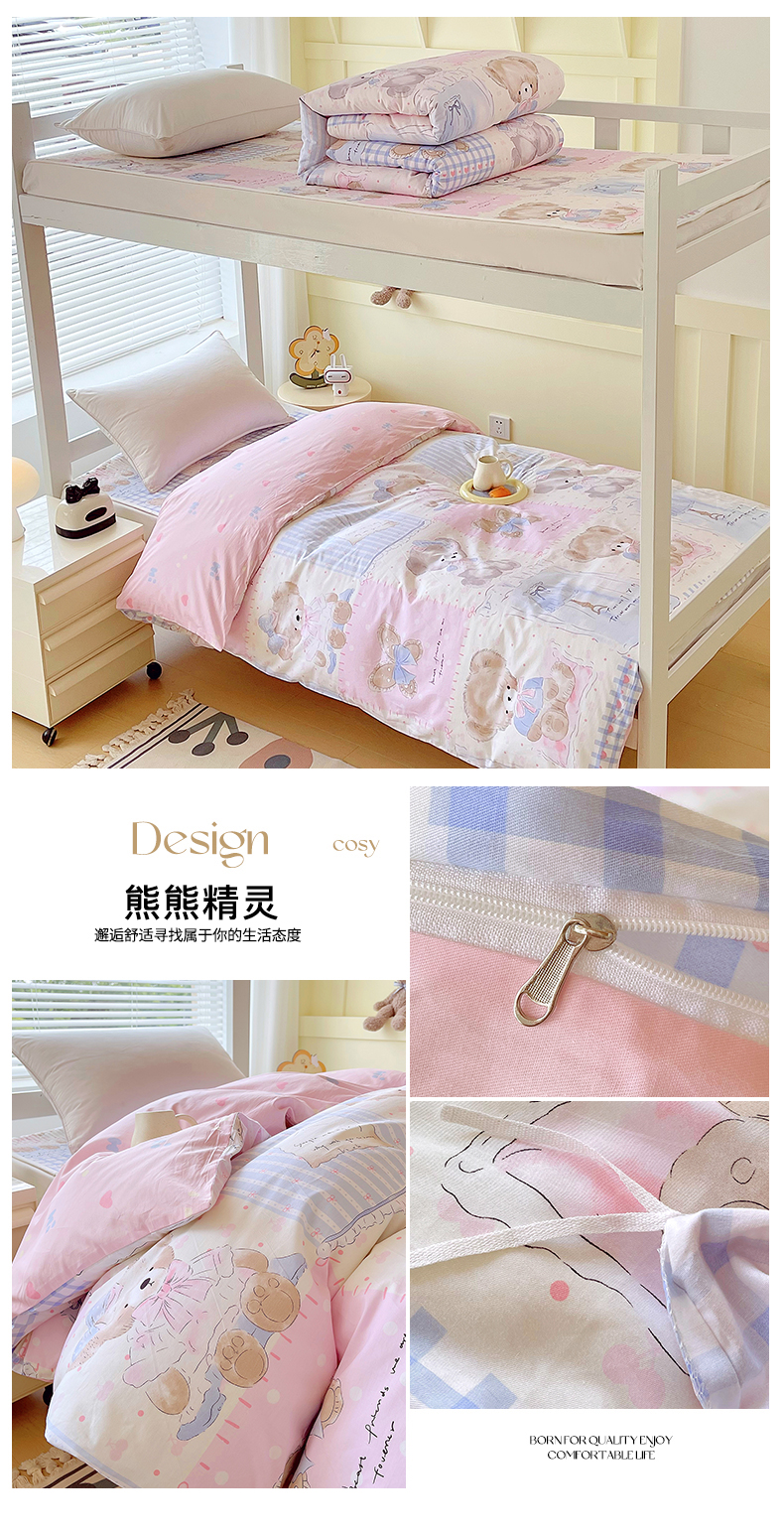 当前位置: 91家纺网 > 商品网购 > 床品套件 > 四件套 > 全棉普通四件套 > 金鑫汇家纺2025新款全棉纯棉宿舍印花学生宿舍上下铺三件套单被套 熊熊精灵