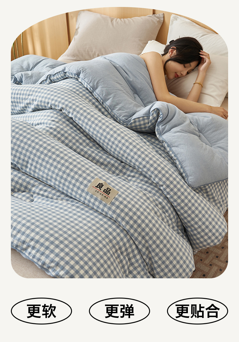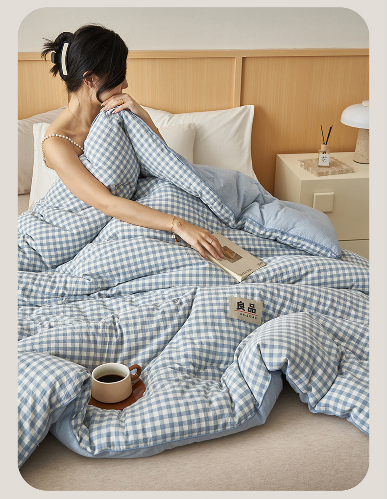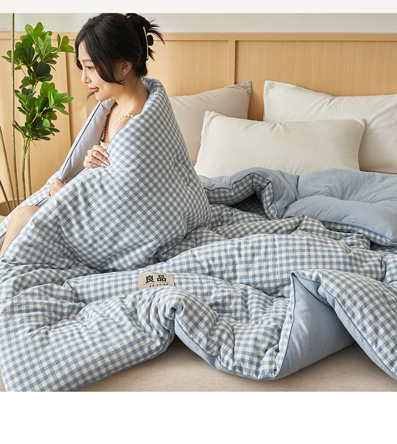 恬思语家纺 2025秋冬新款色织格子里外全棉棉花冬被被子被芯 小蓝格