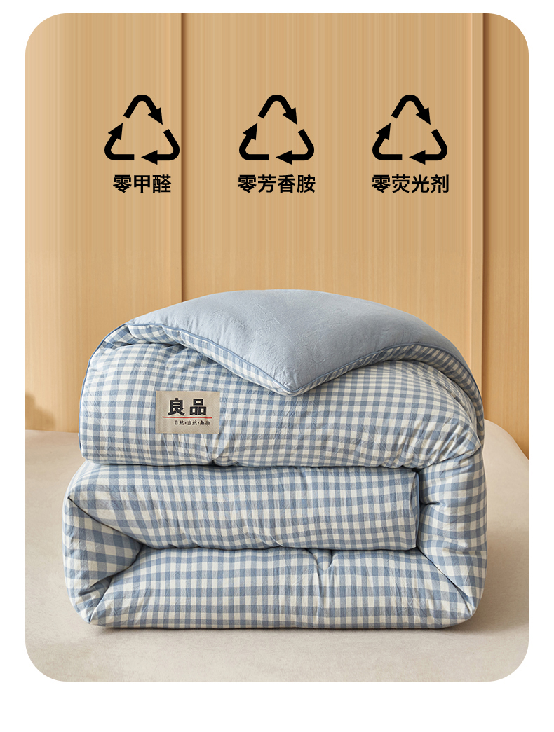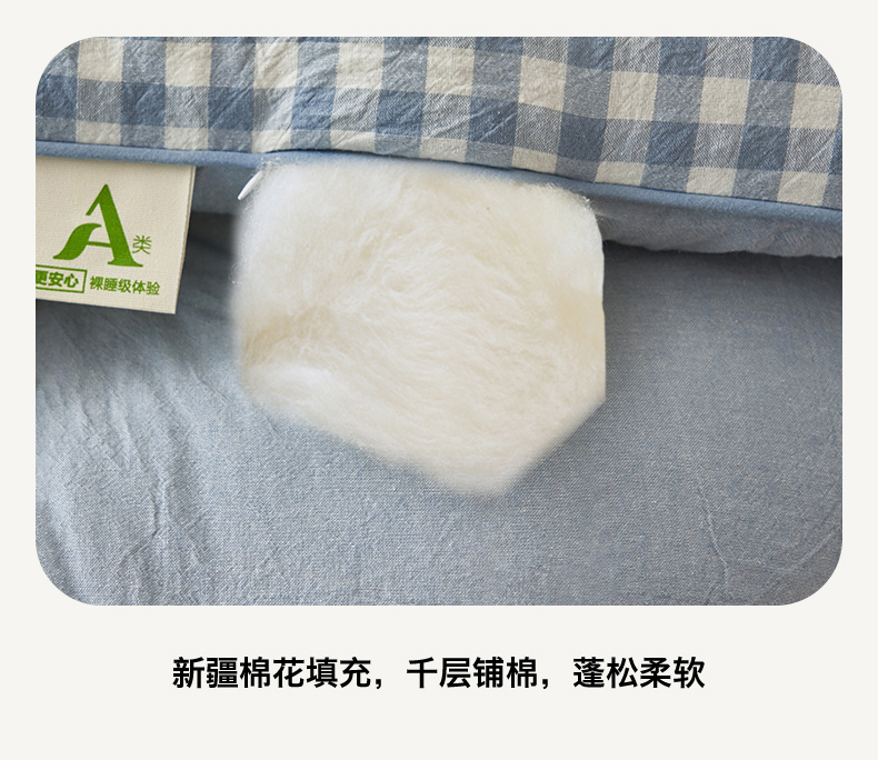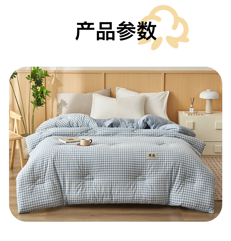 商品名称:恬思语家纺 2025秋冬新款色织格子里外全棉棉花冬被被子被芯 小蓝格