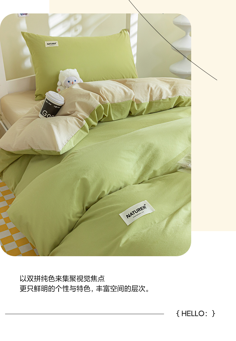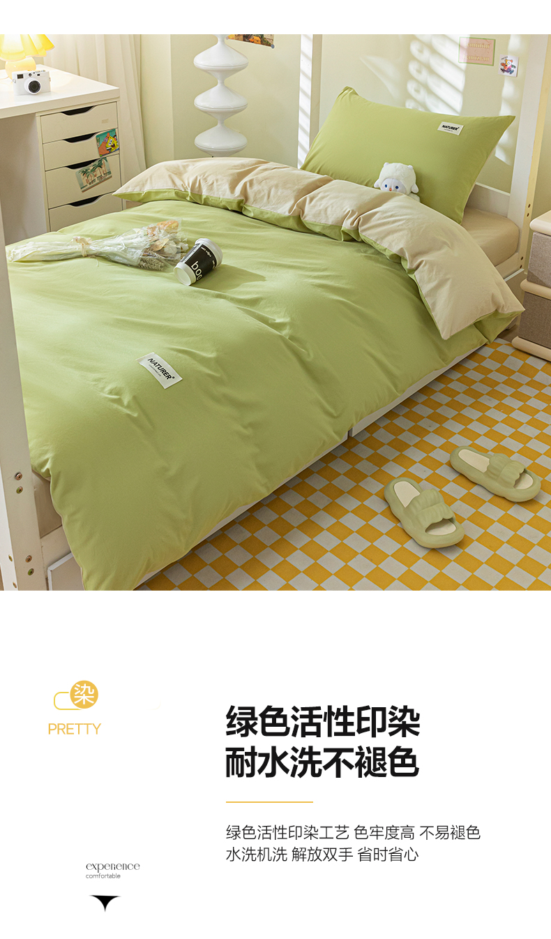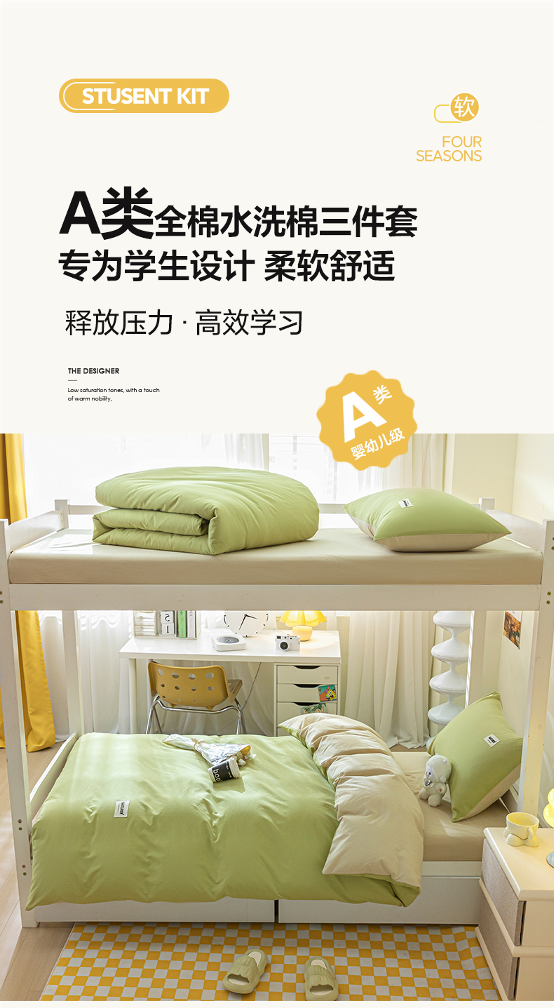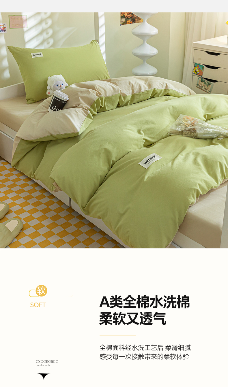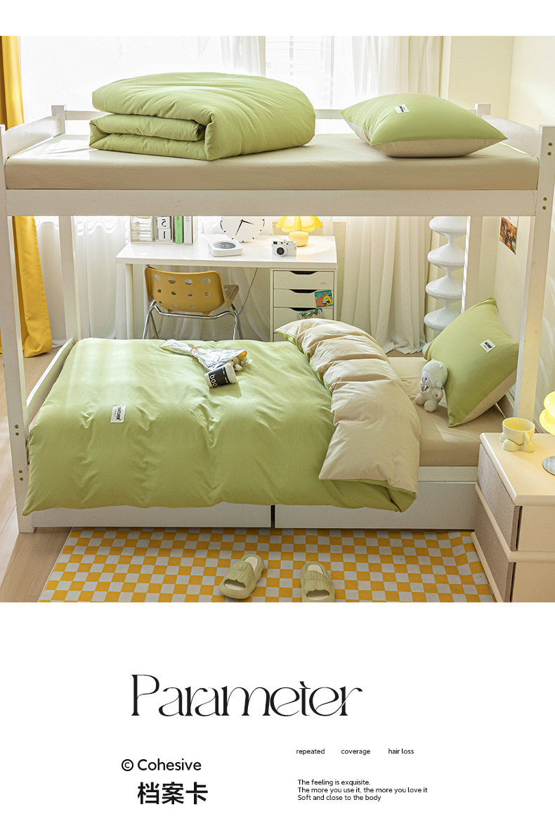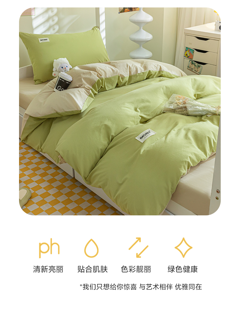佳汐蓝家纺 2025新款A类全棉水洗棉学生三件套 贴标-果绿+奶茶