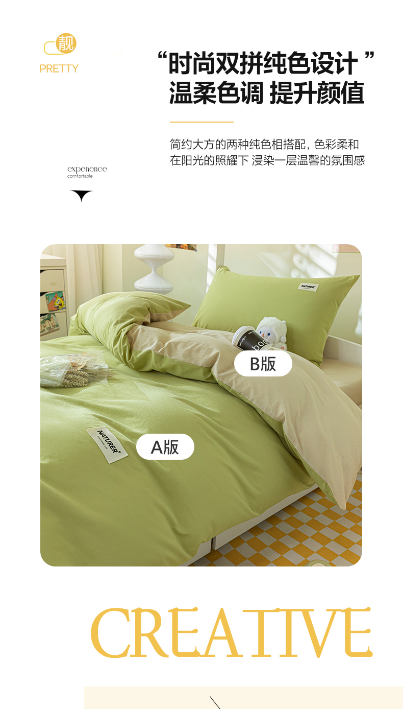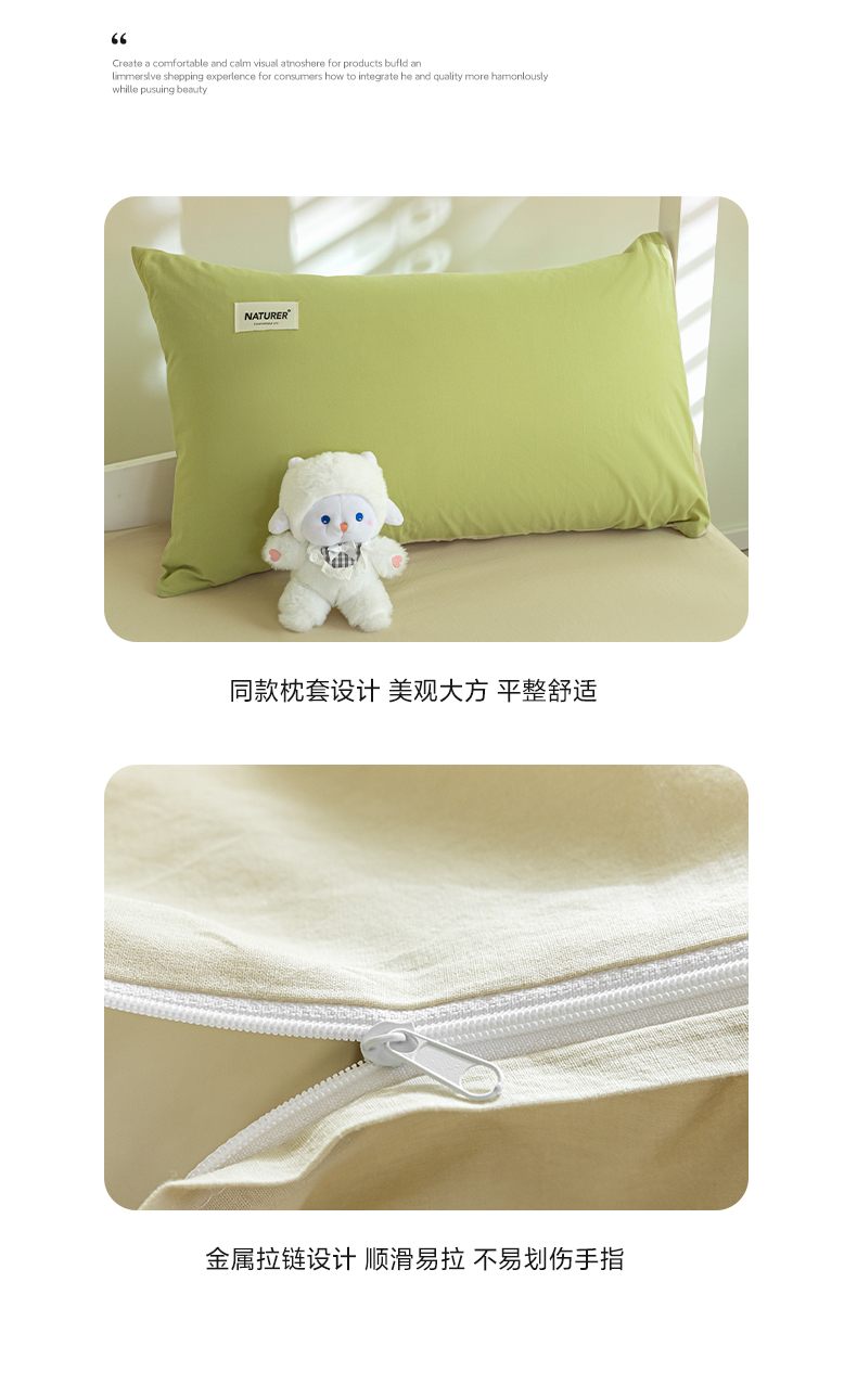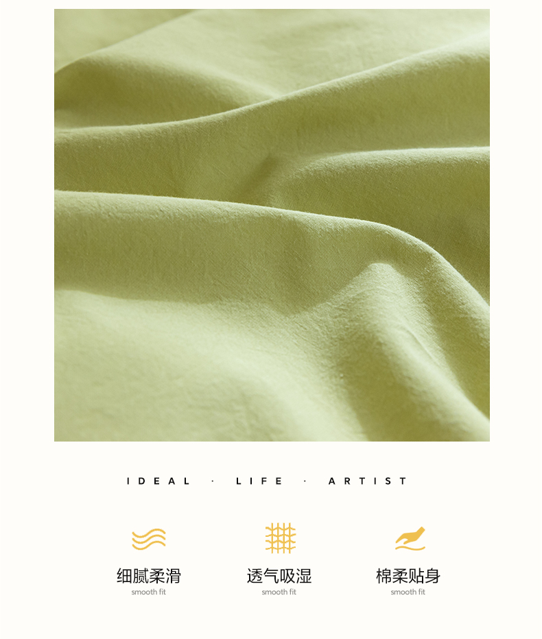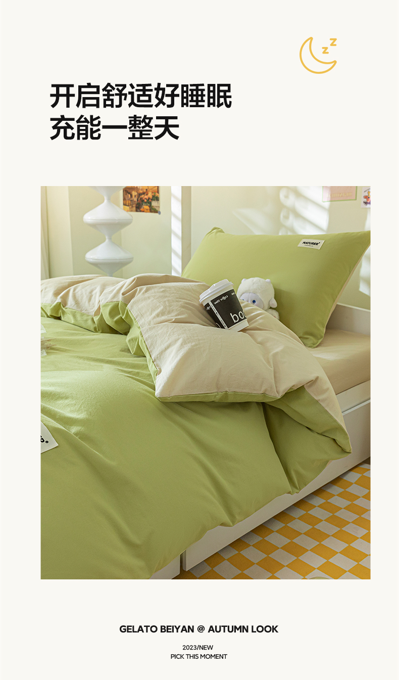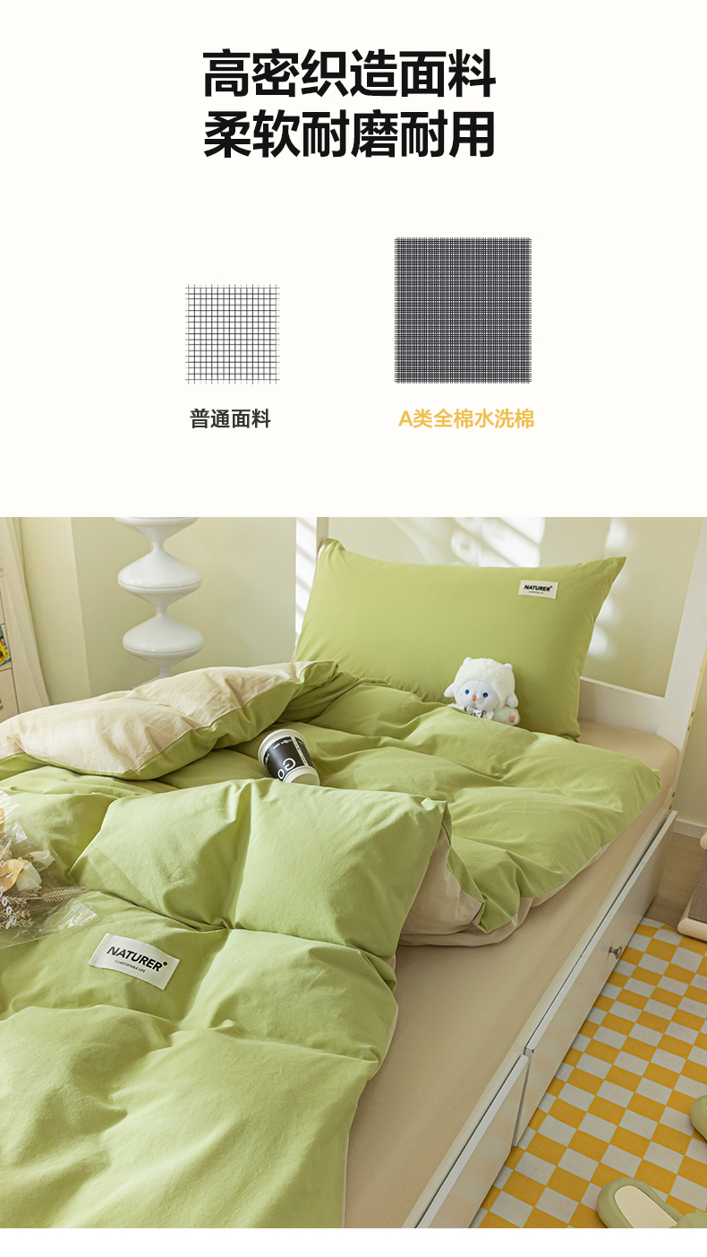 佳汐蓝家纺 2025新款A类全棉水洗棉学生三件套 贴标-果绿+奶茶