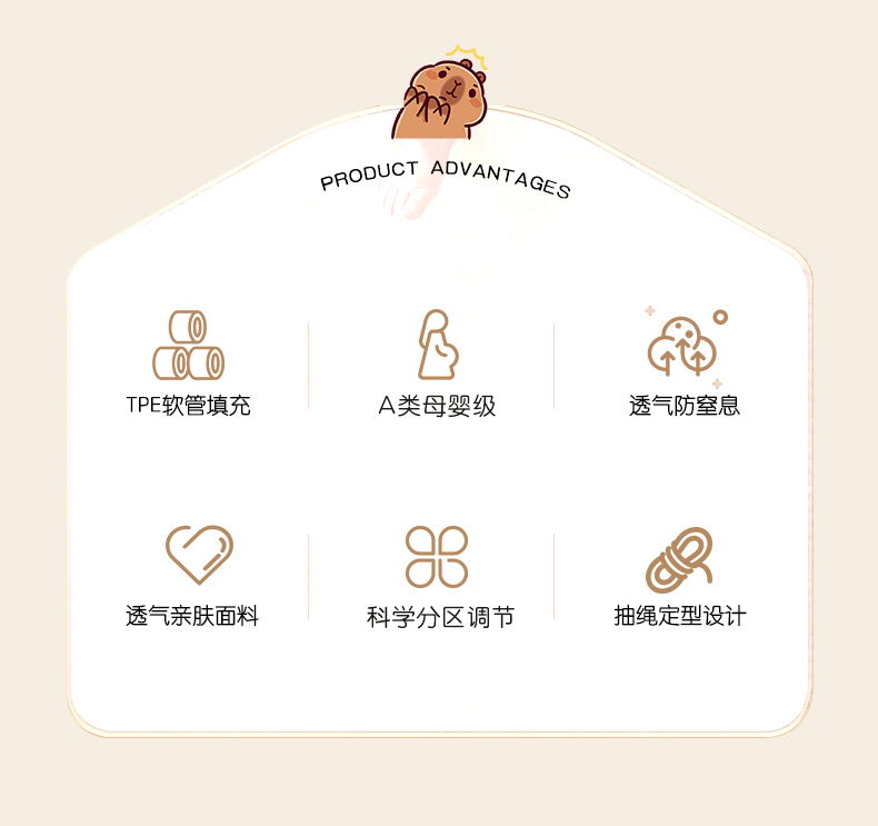 当前位置: 91家纺网 > 商品网购 > 枕头/枕芯/保健枕/颈椎枕 > 普通枕芯 > 昕科 2025新款A类母婴-卡皮巴拉软管婴童定型枕(送礼袋) 卡皮巴拉-软管+羽丝棉儿童枕40x60cm/只