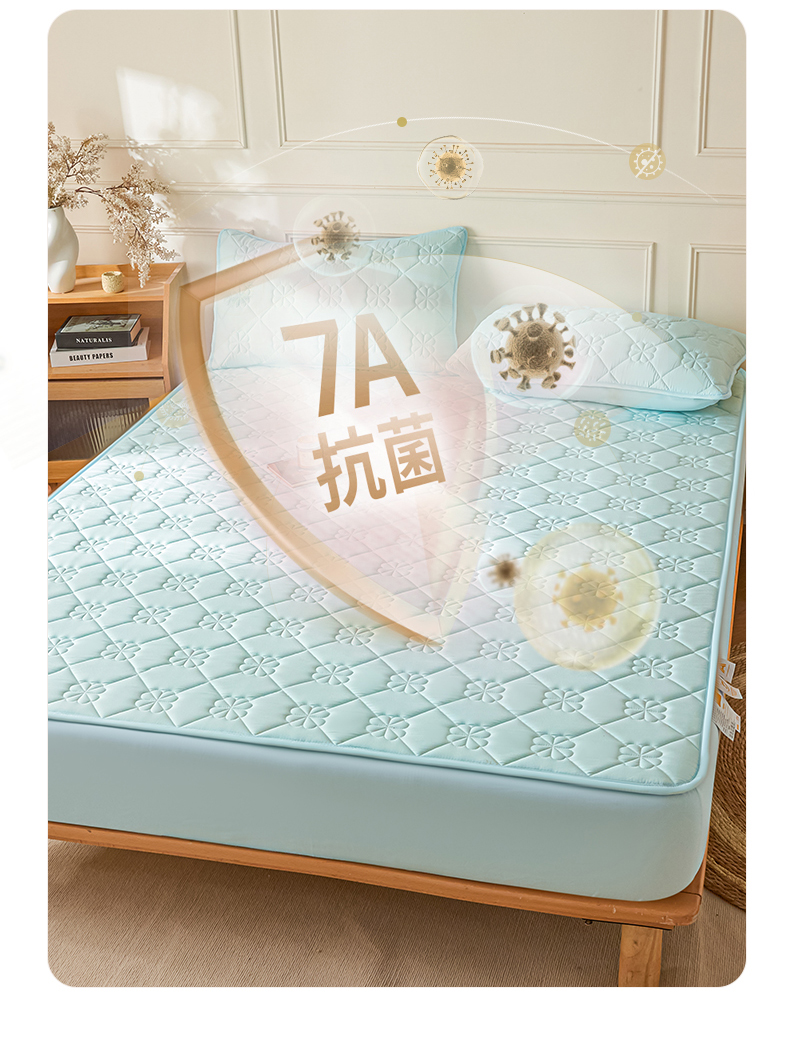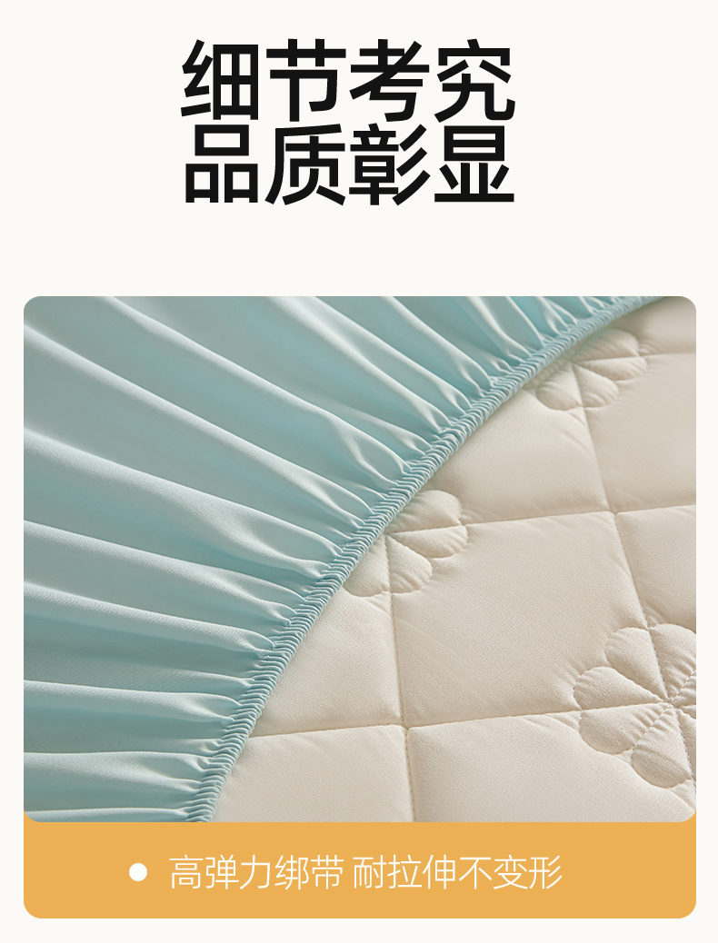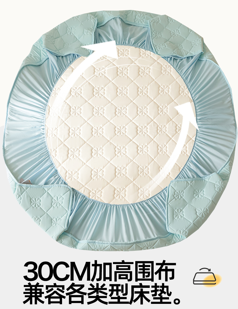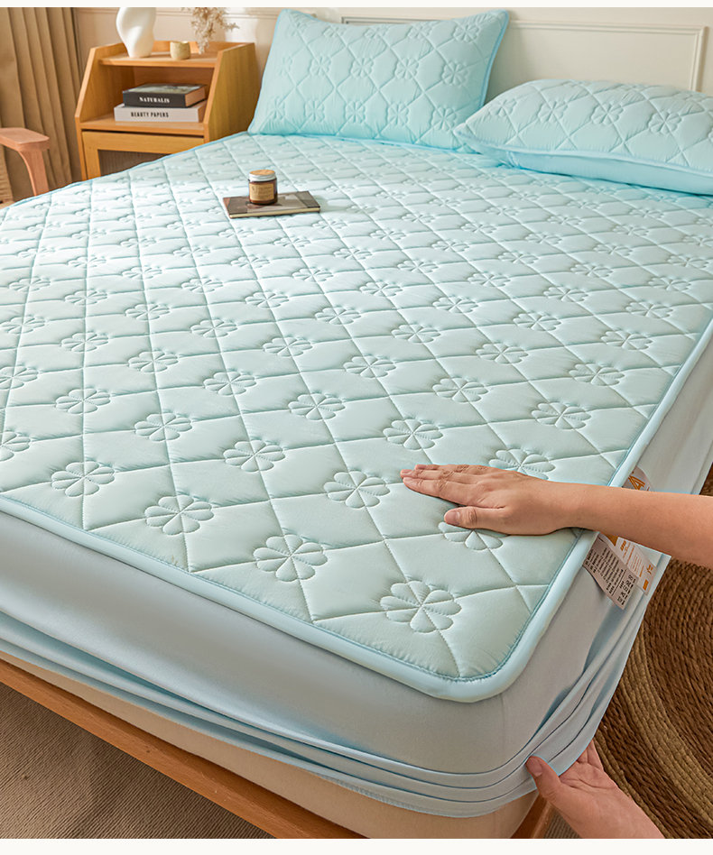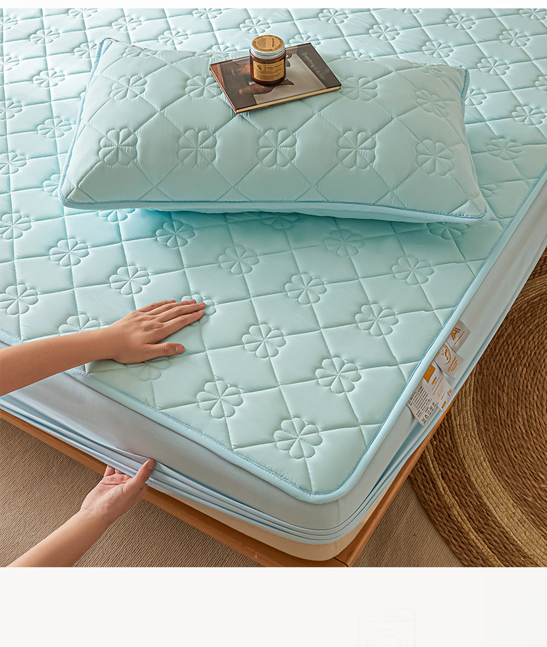 • 91家纺网 家纺一手货源 找家纺 雯豆家纺 2025新款简约防水款水洗棉夹棉床笠 幸运草-淡水蓝
