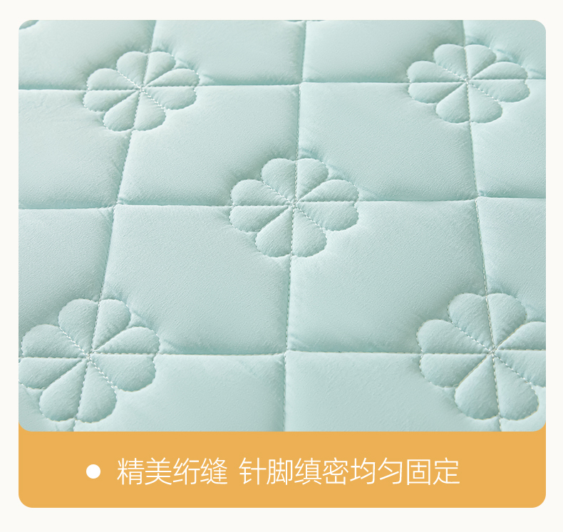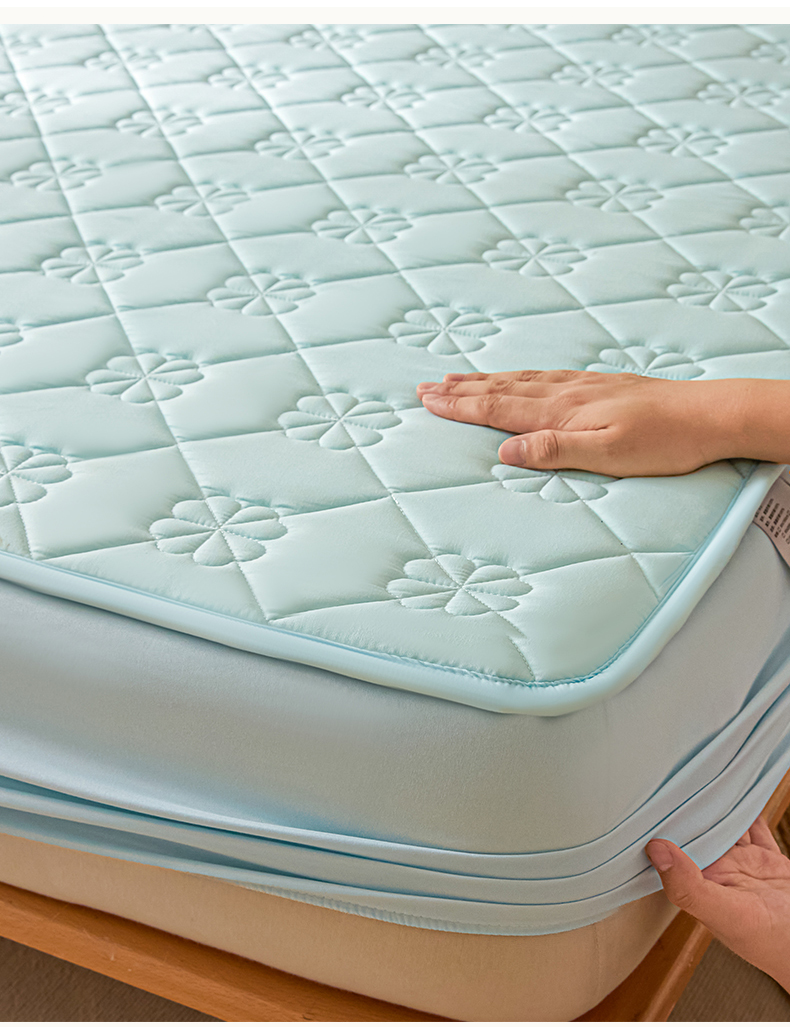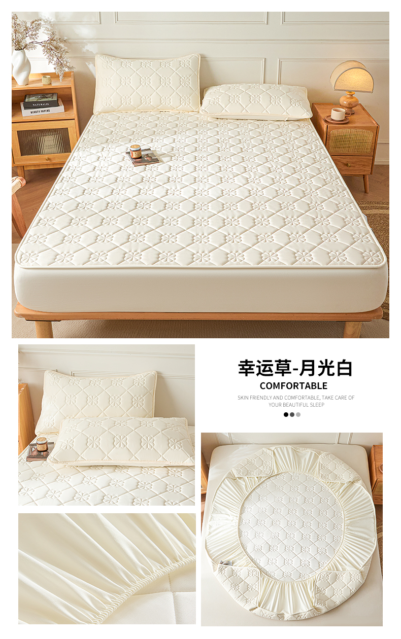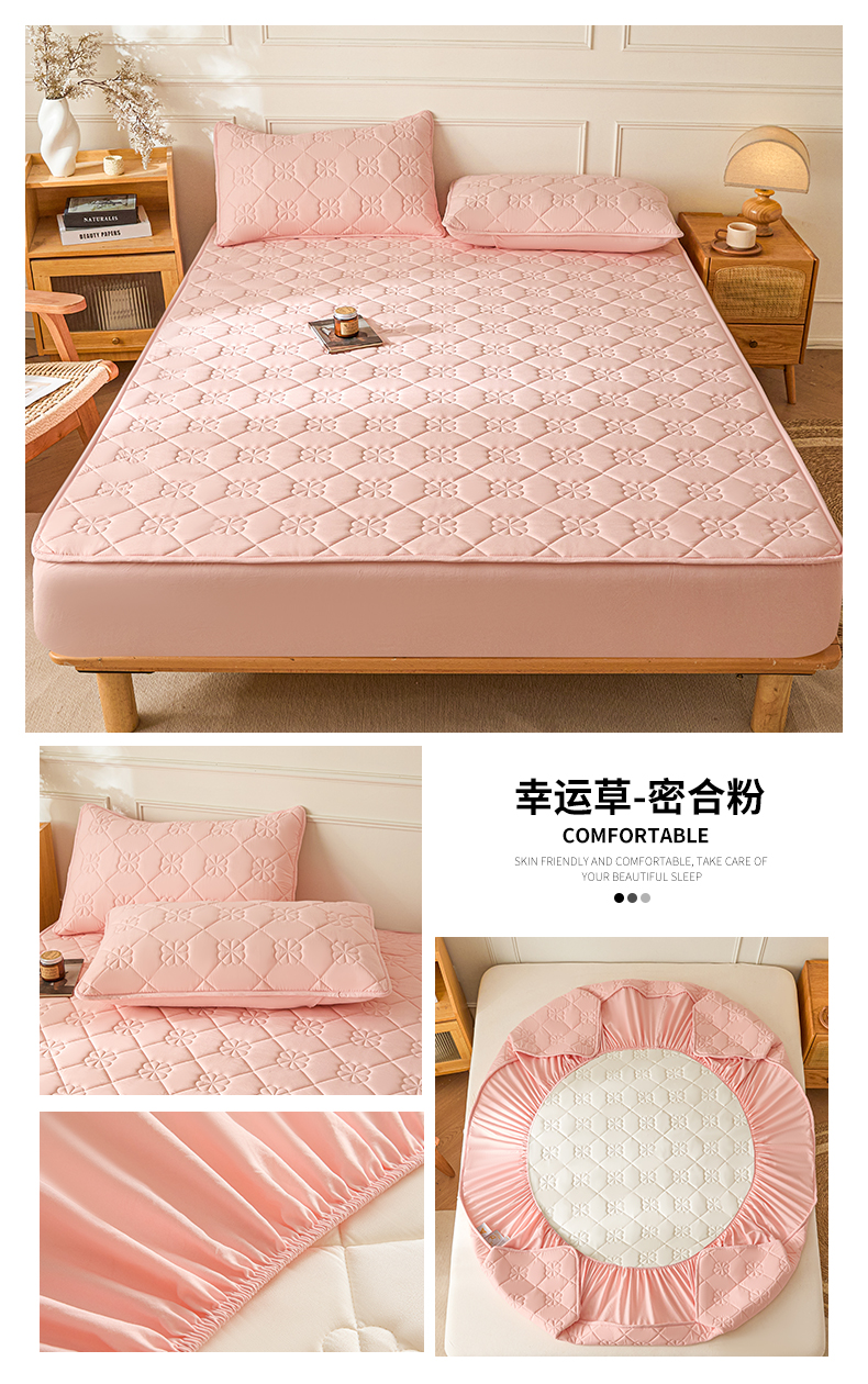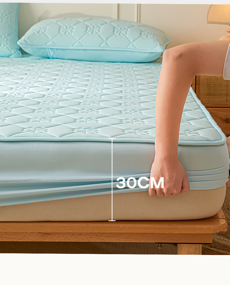 • 91家纺网 家纺一手货源 找家纺 雯豆家纺 2025新款简约防水款水洗棉夹棉床笠 幸运草-淡水蓝