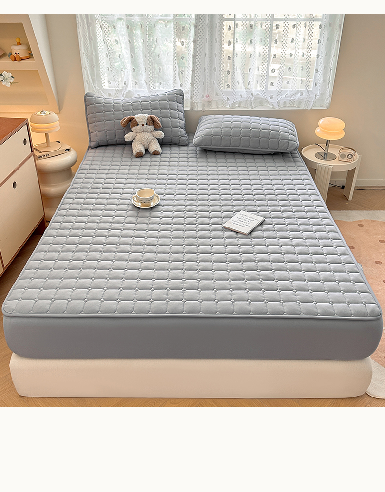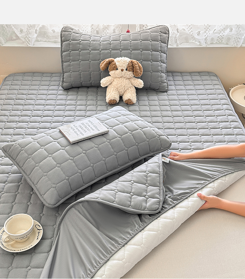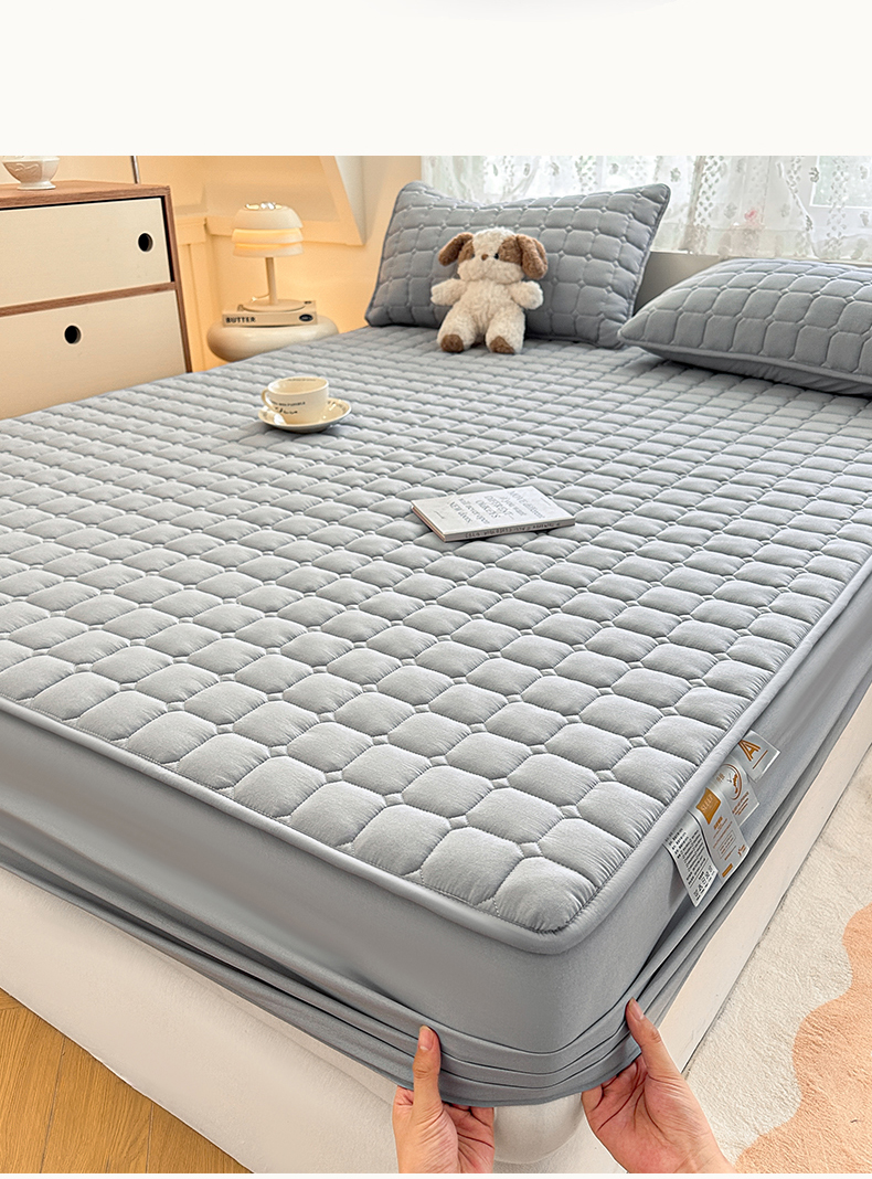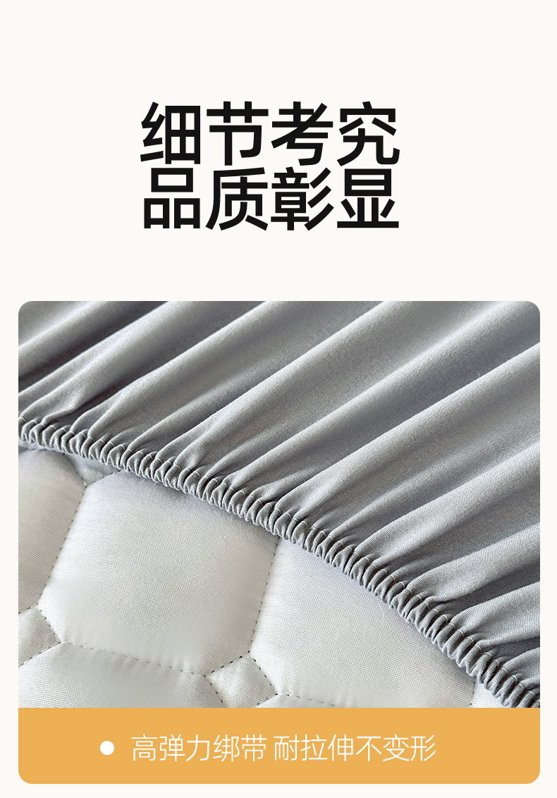 • 91家纺网 家纺一手货源 找家纺 雯豆家纺 2025新款简约水洗棉夹棉床笠-雅韵 雅韵-暮云灰