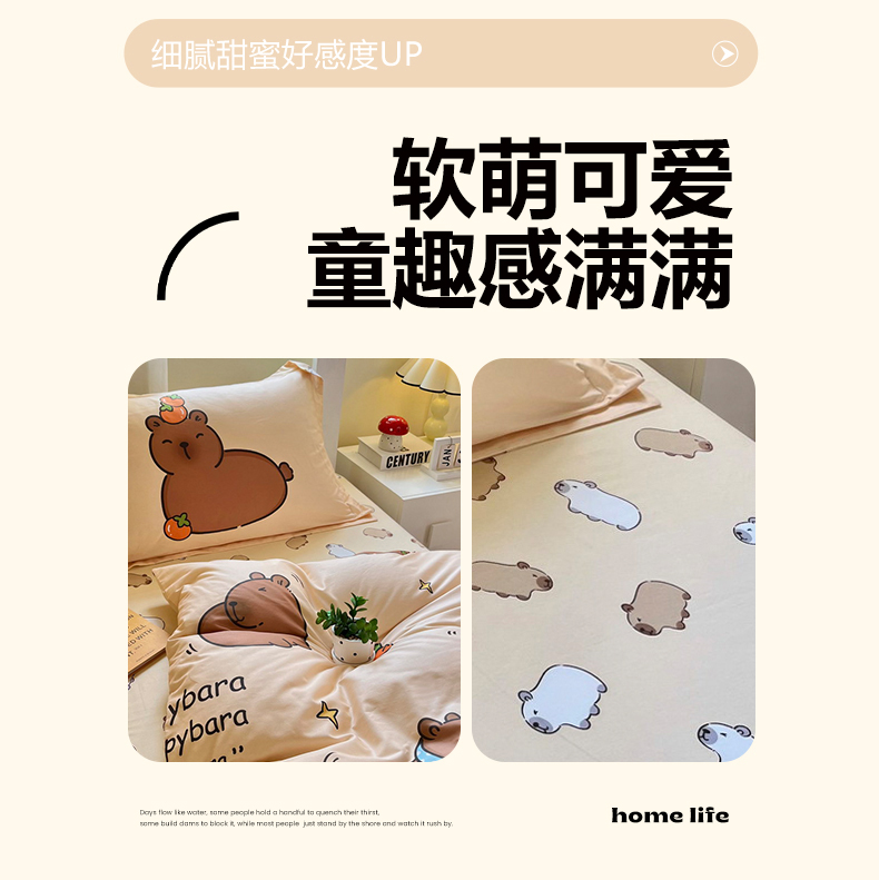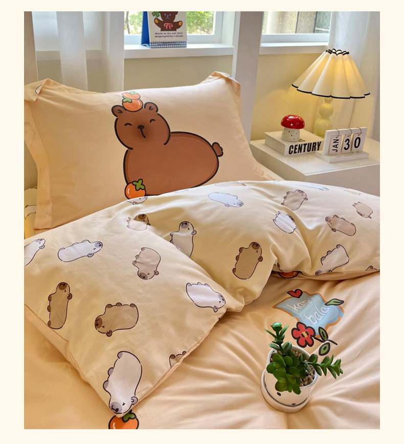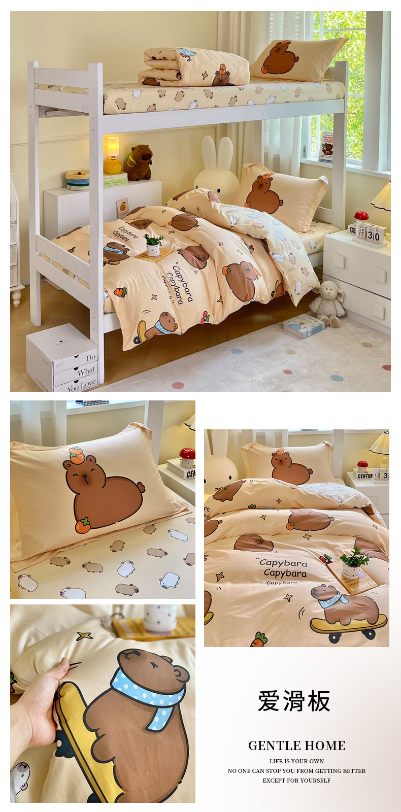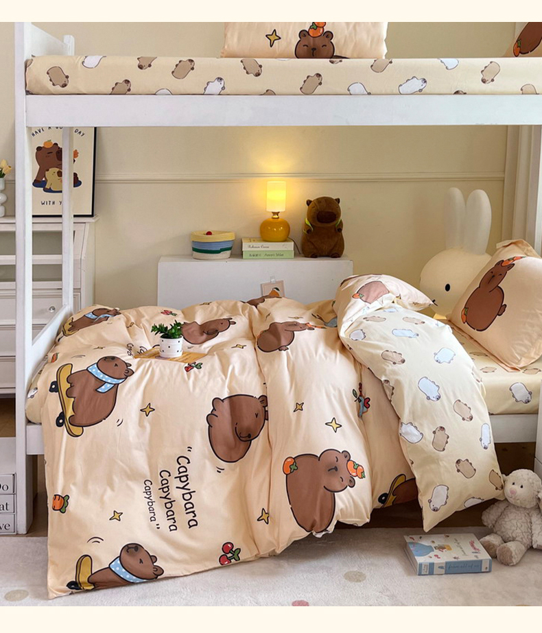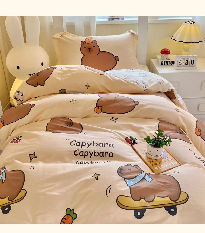 当前位置: 91家纺网 > 商品网购 > 床品套件 > 三件套 > 蘭菲家纺 2025新款学生季卡皮巴拉系列全棉印花三件套 爱滑板