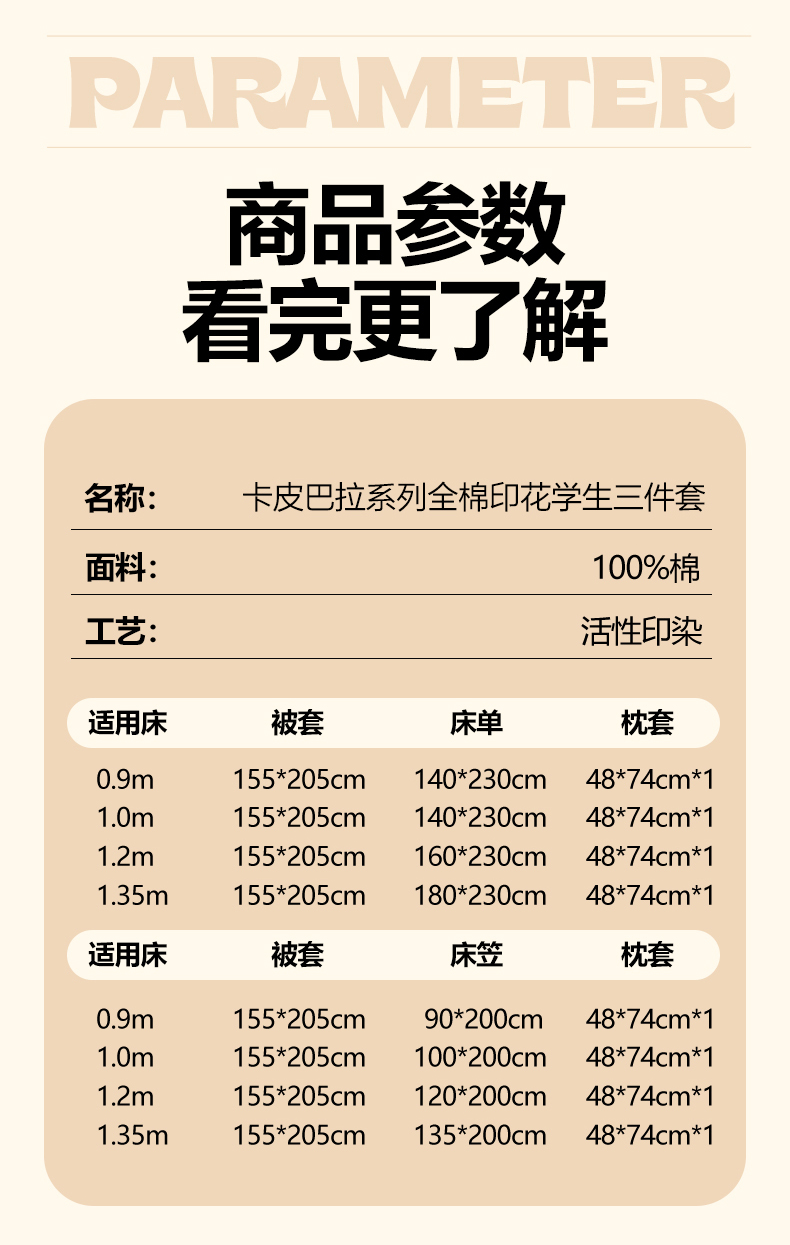 1.0m床笠三件套被套155*205 | ¥85.00 |