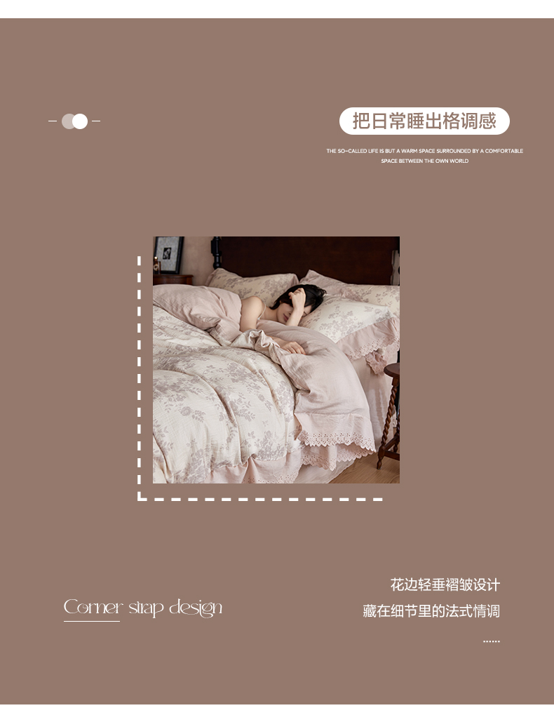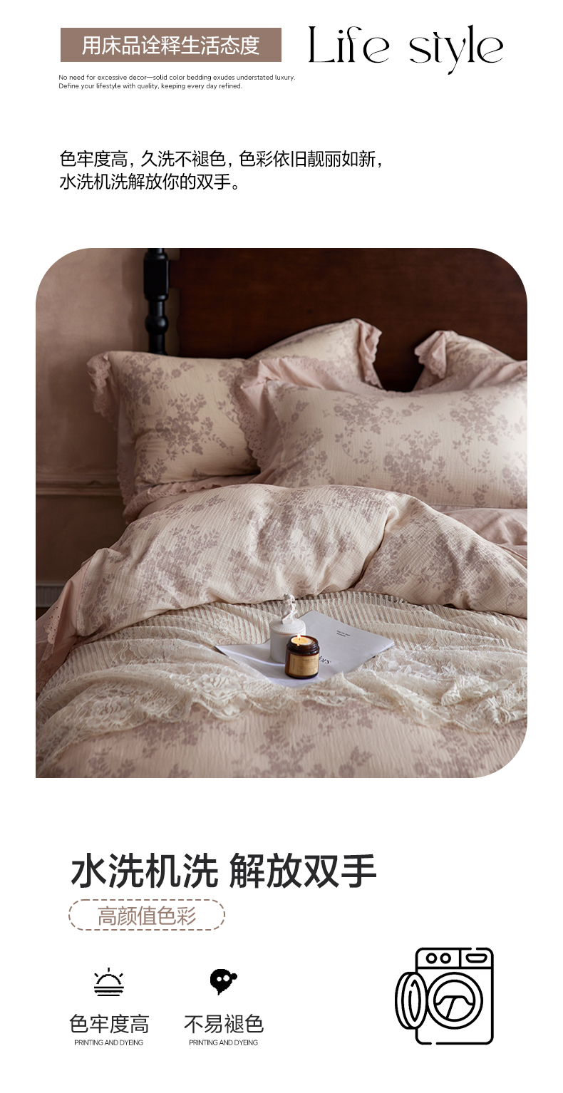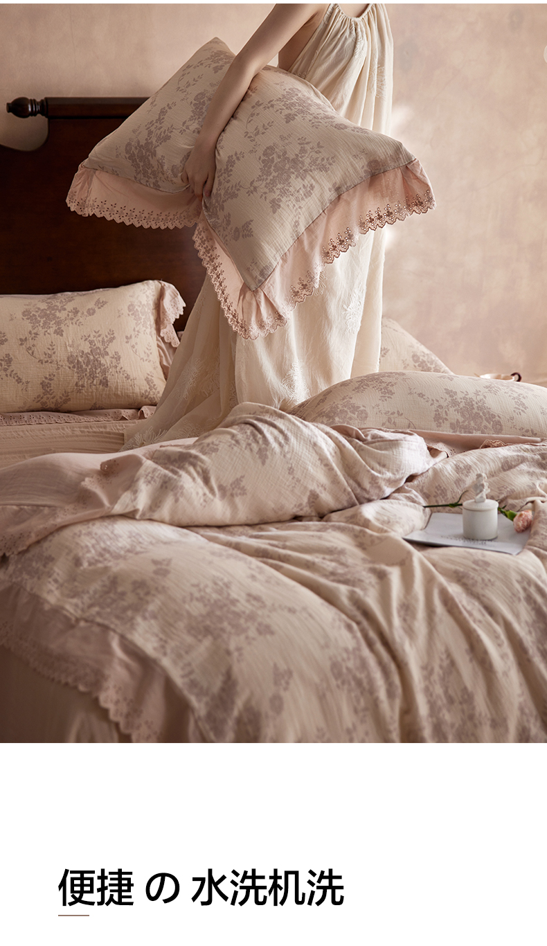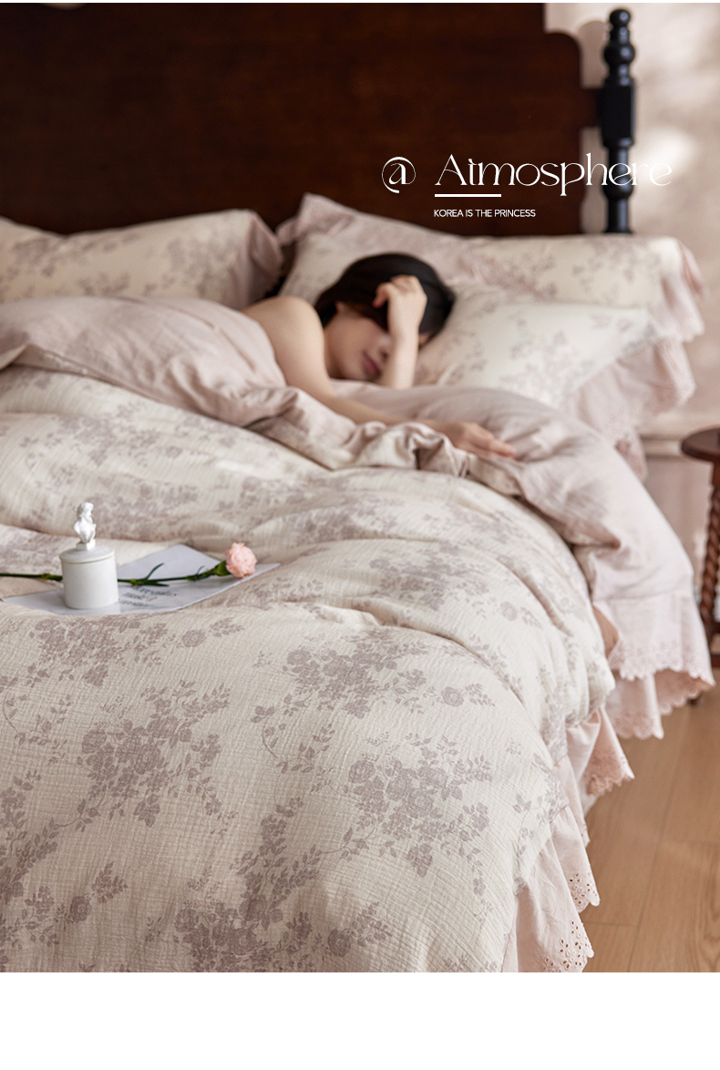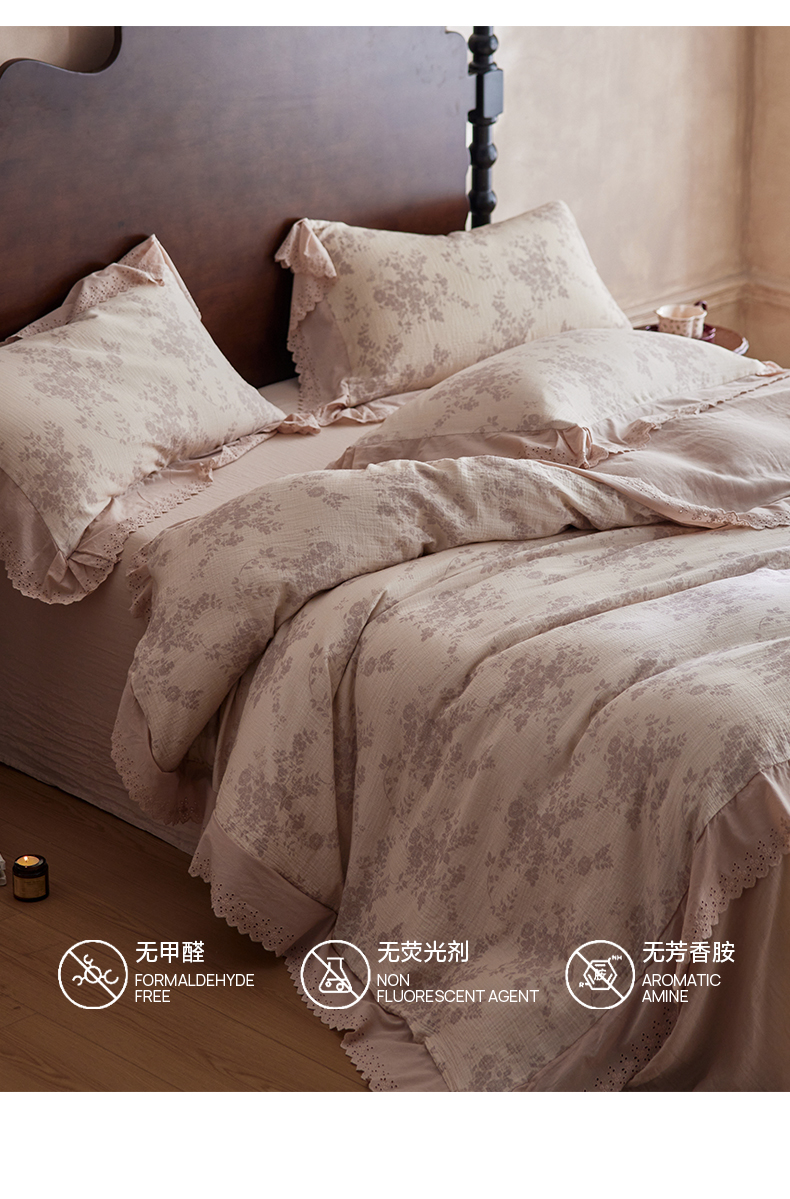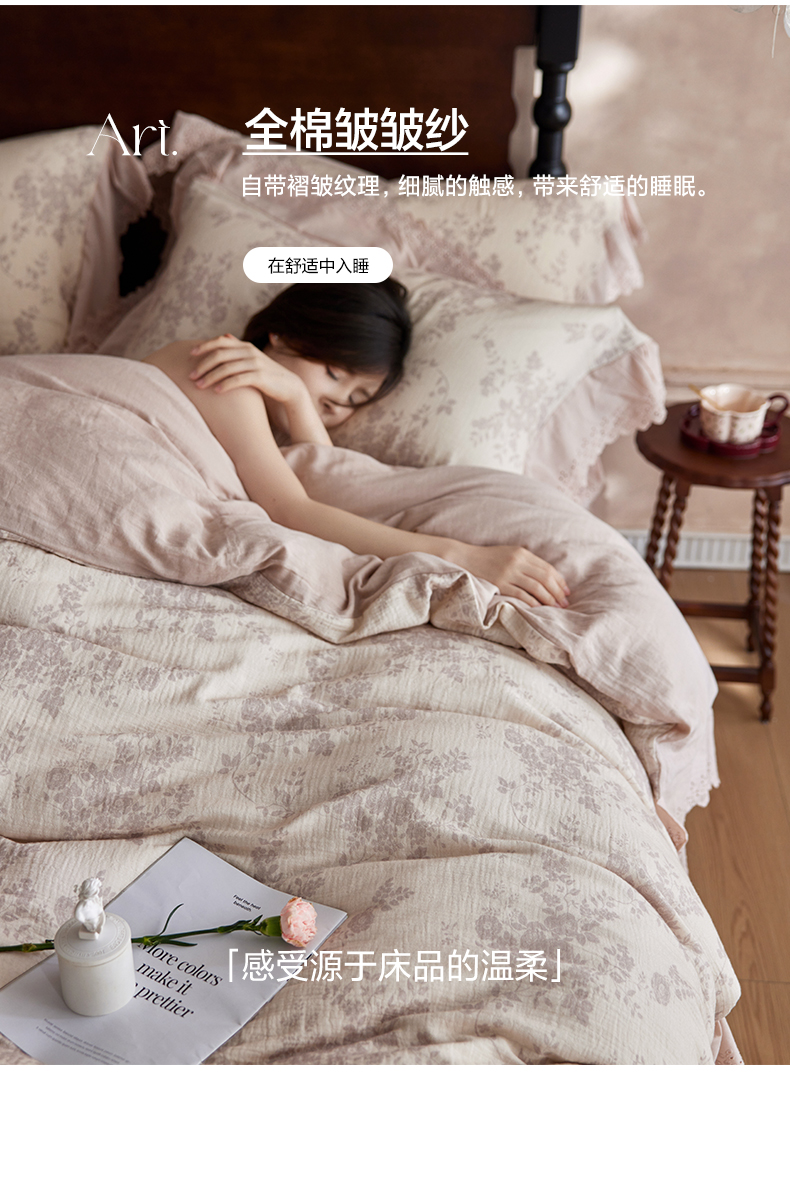 简纯主义 2025新款100%棉皱皱纱四件套-花甜系列 枝瑶粉