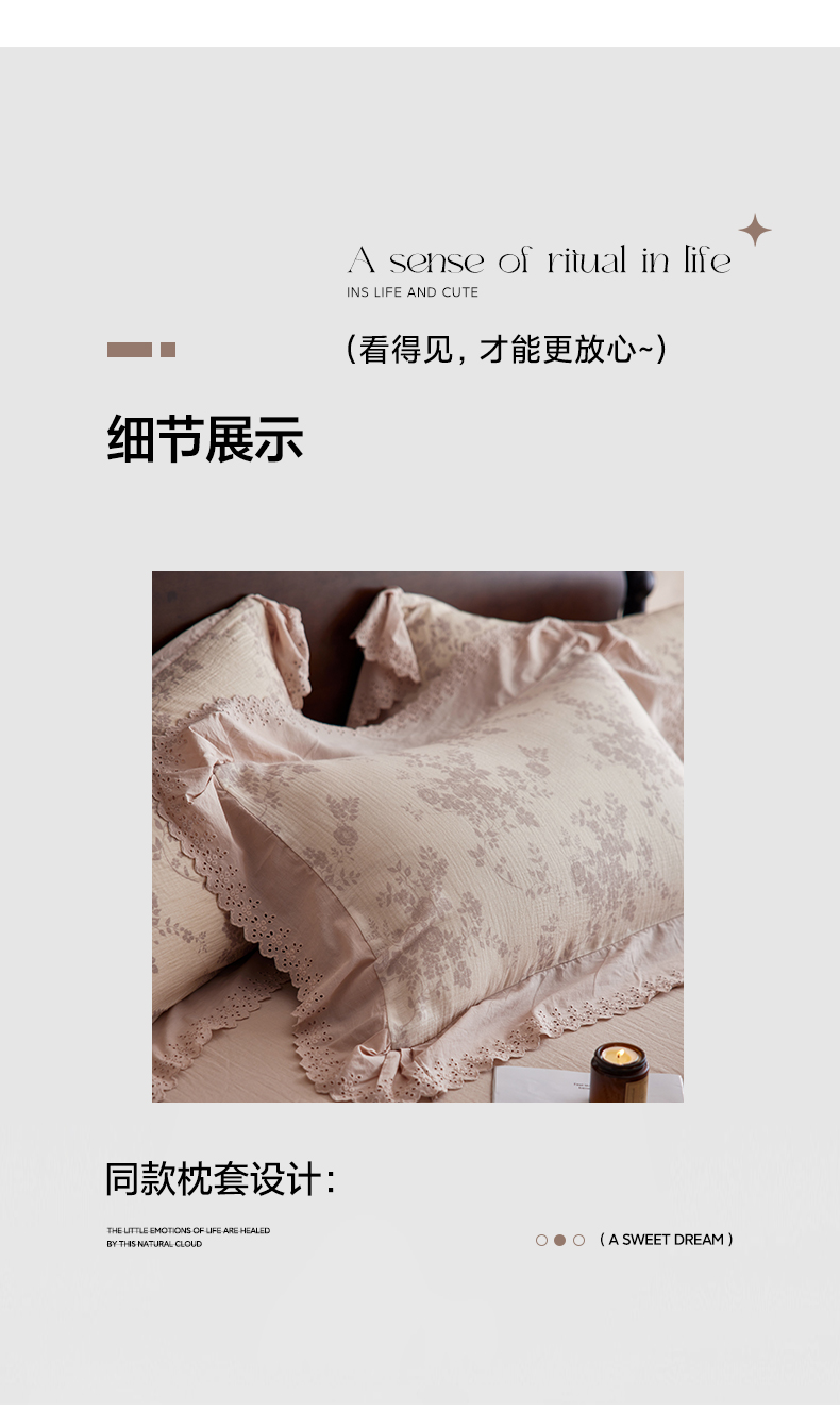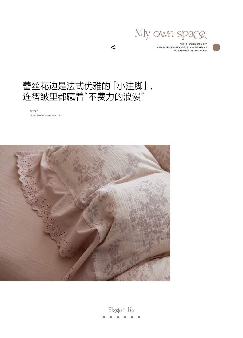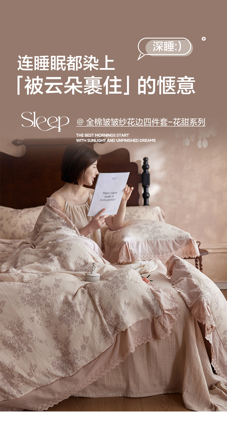 商品名称:简纯主义 2025新款100%棉皱皱纱四件套-花甜系列 枝瑶粉