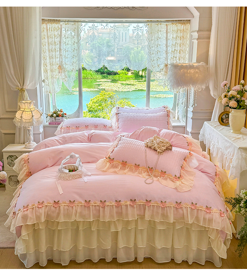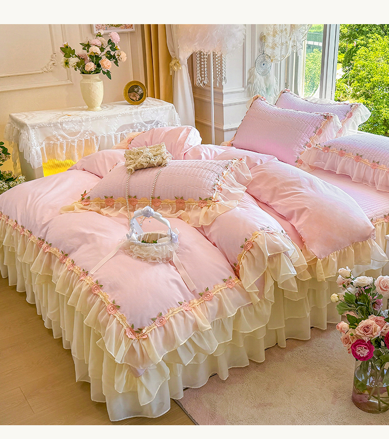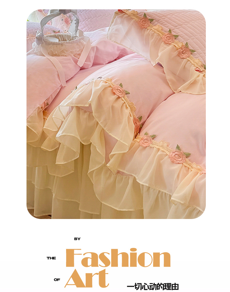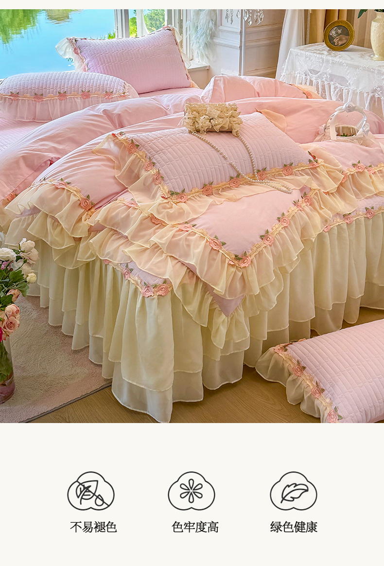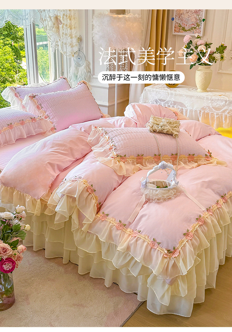 当前位置: 91家纺网 > 商品网购 > 床品套件 > 四件套 > 全棉普通四件套 > 虹星家纺 2025新款玫瑰花语全棉纯棉床裙款四件套 玫瑰花语-樱花粉