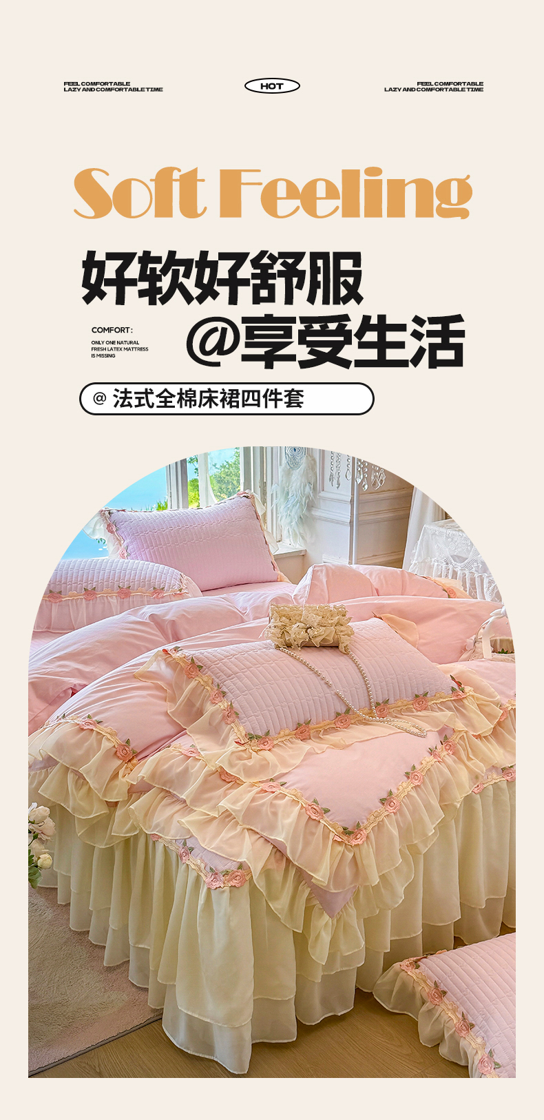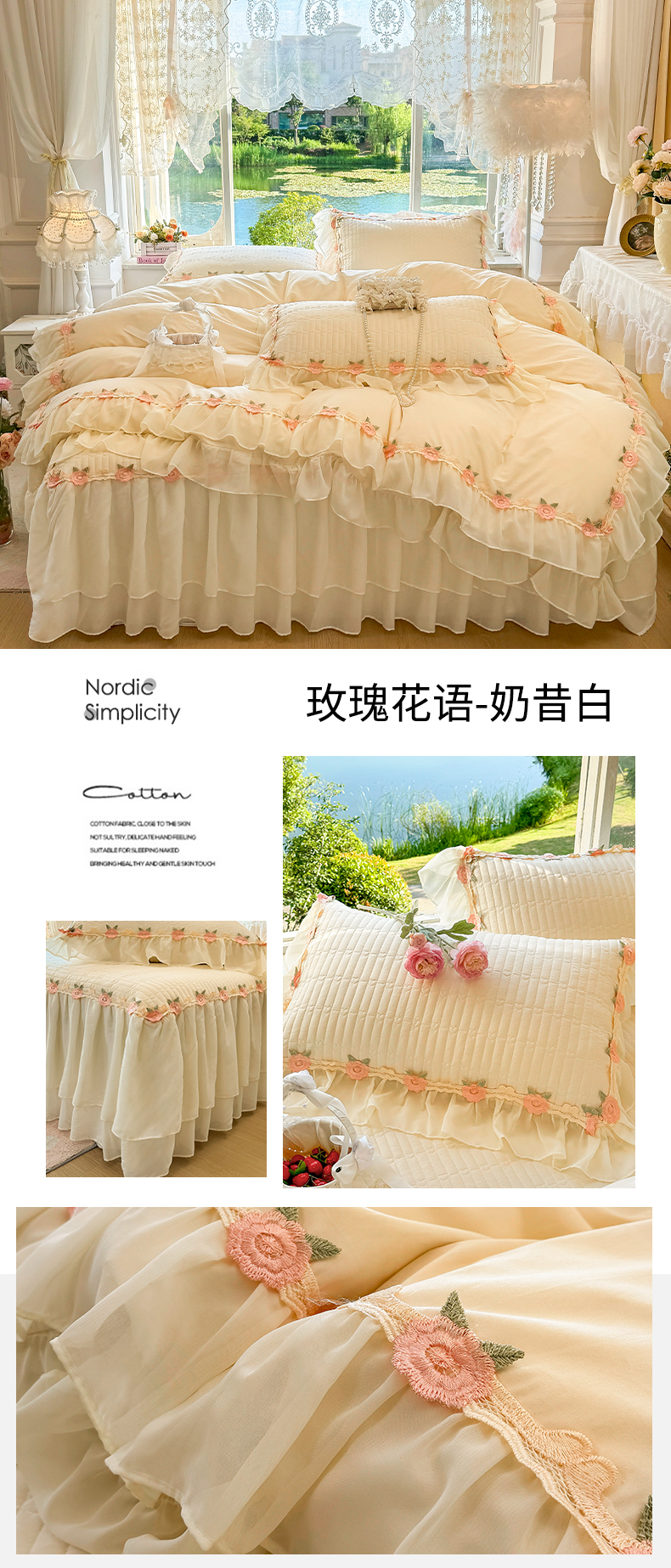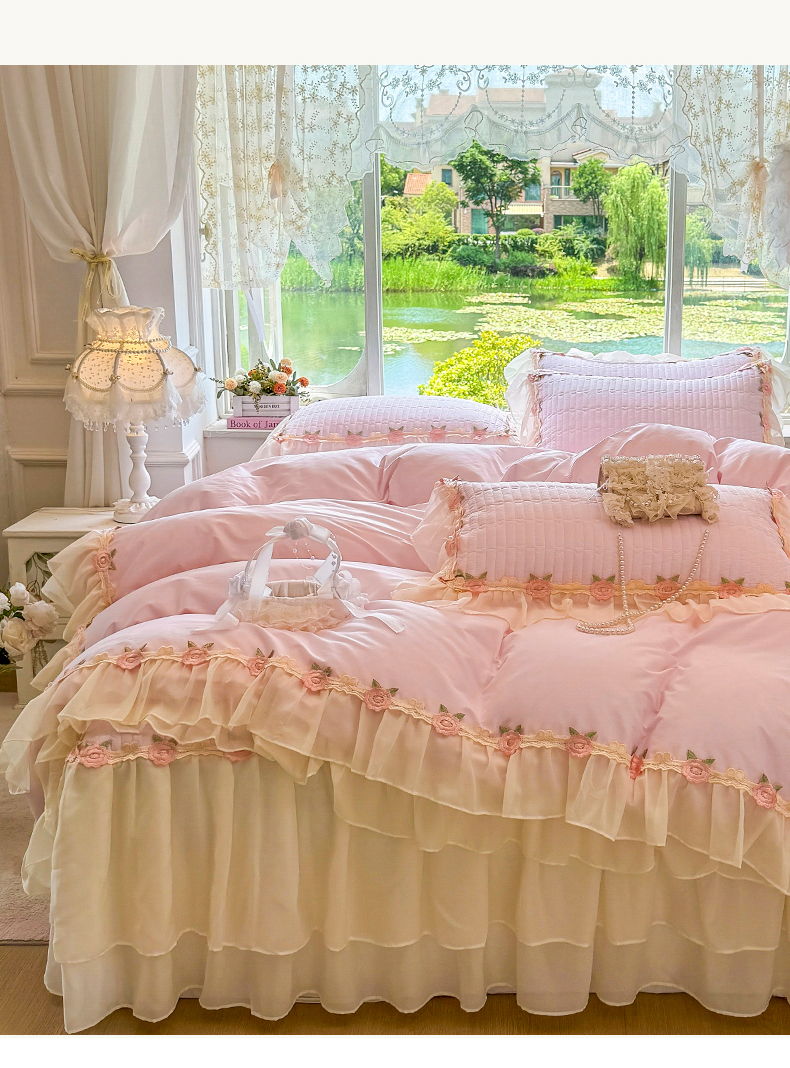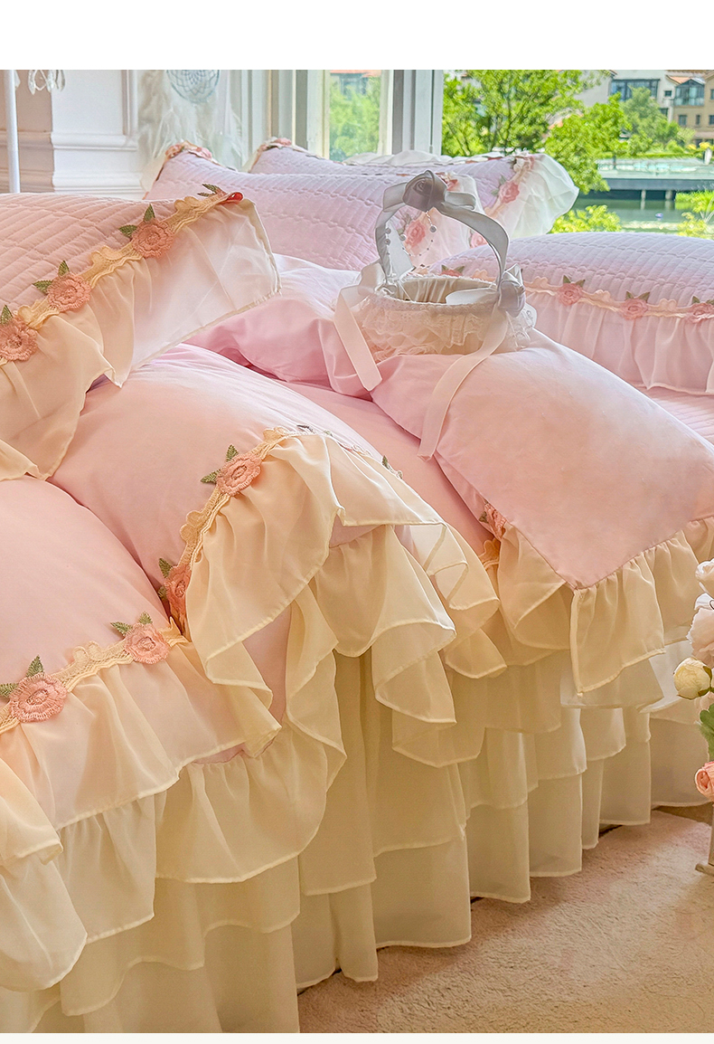 当前位置: 91家纺网 > 商品网购 > 床品套件 > 四件套 > 全棉普通四件套 > 虹星家纺 2025新款玫瑰花语全棉纯棉床裙款四件套 玫瑰花语-樱花粉