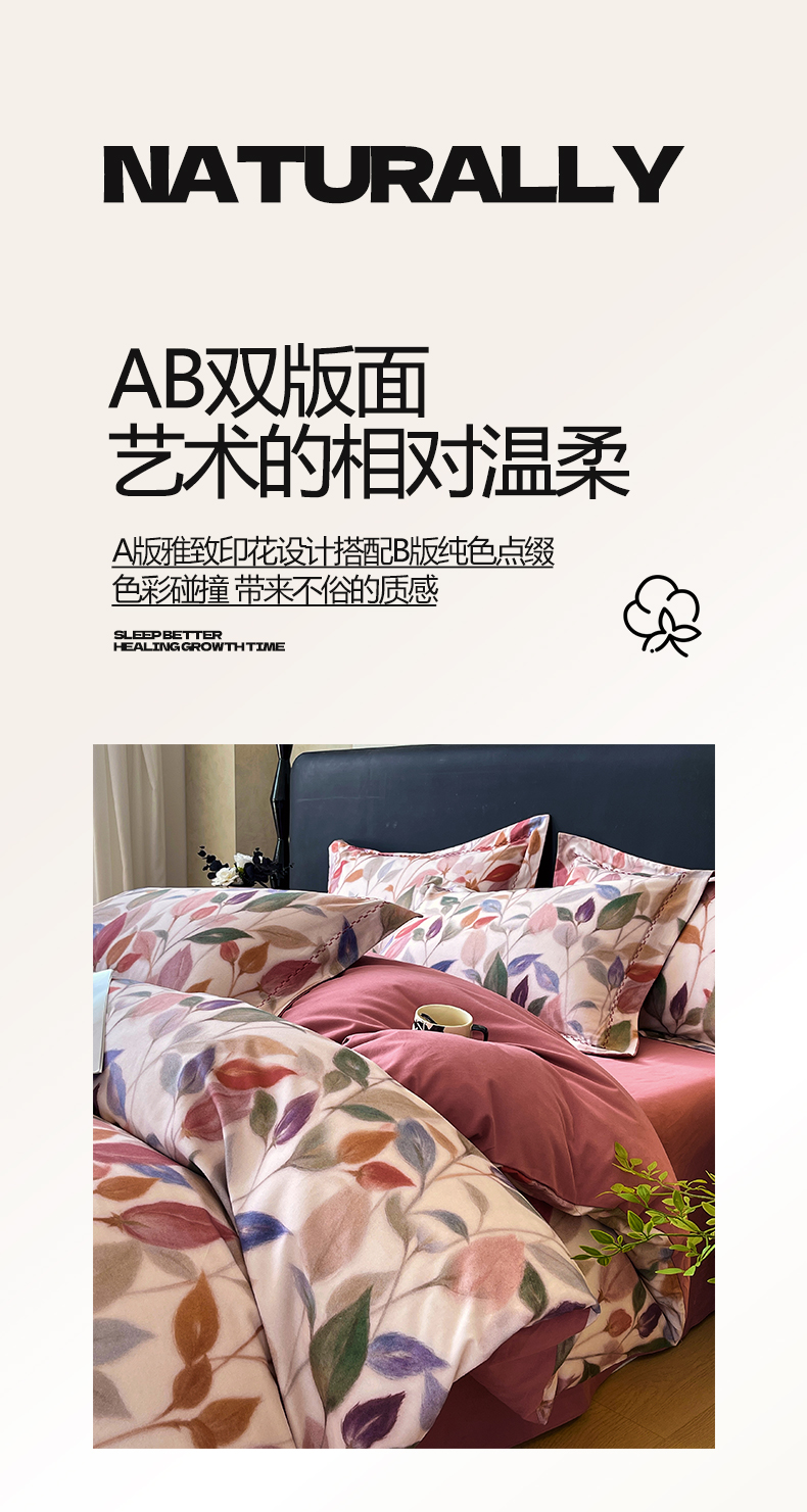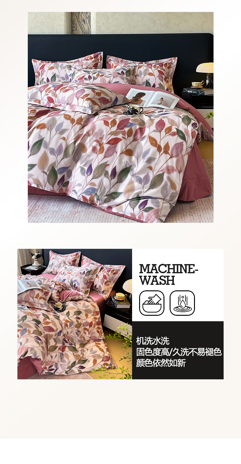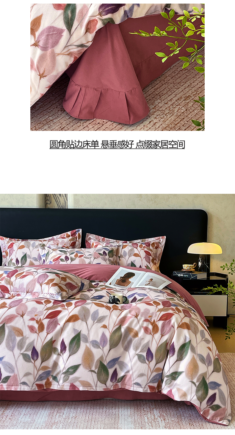 (总)帅露家纺 2025新款A类棉麻活性印染四件套系列,花间意境-红,花间意境-灰,花香满园-红,素锦-咖,香叶时代,映霜-灰,映霜-绿