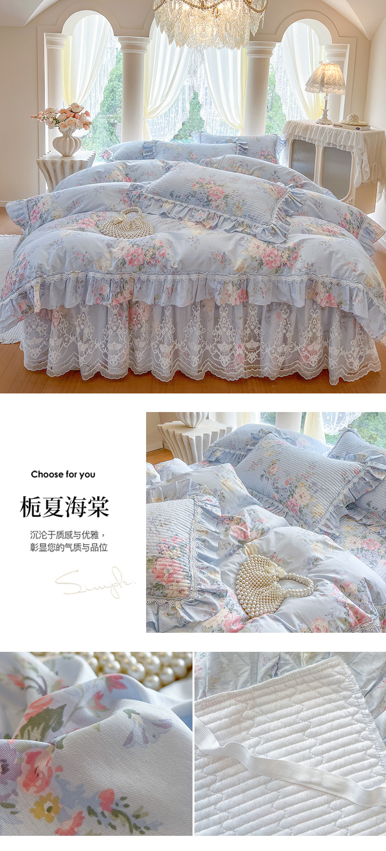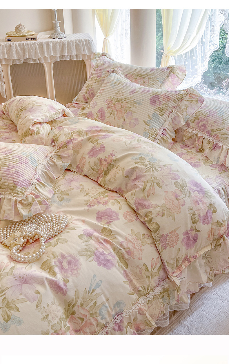 当前位置: 91家纺网 > 商品网购 > 床品套件 > 四件套 > 全棉普通四件套 > 瑞宝 2025新款法式全棉纯棉印花床裙四件套 沐熙