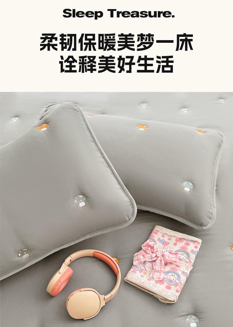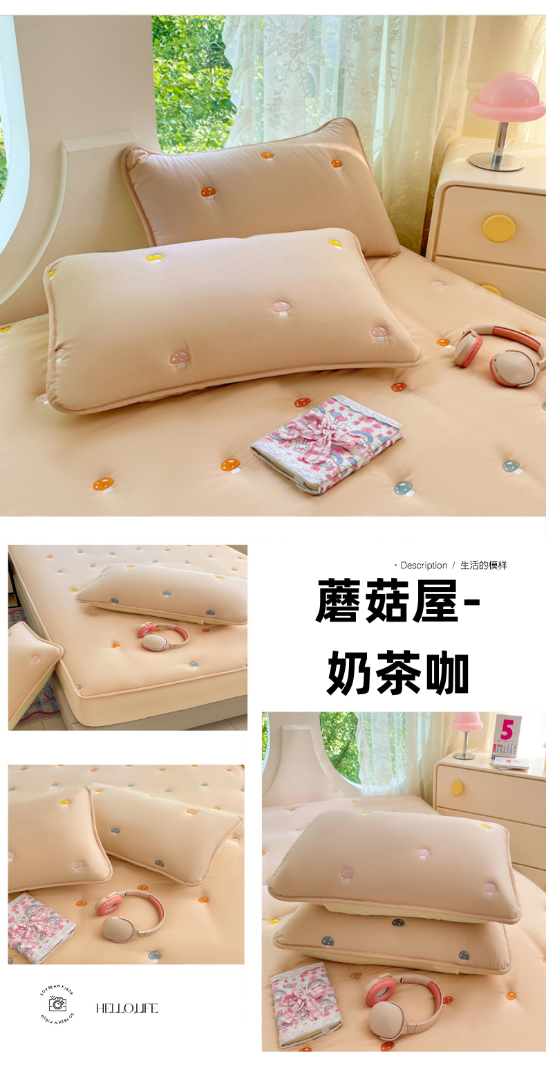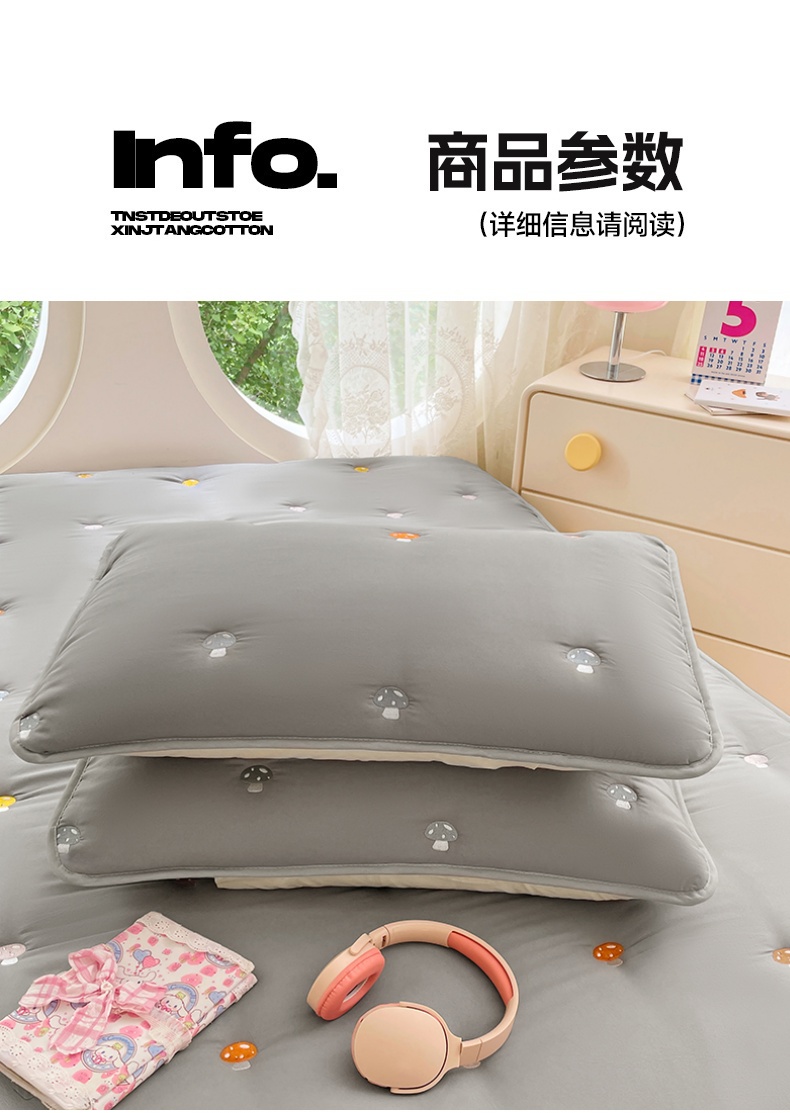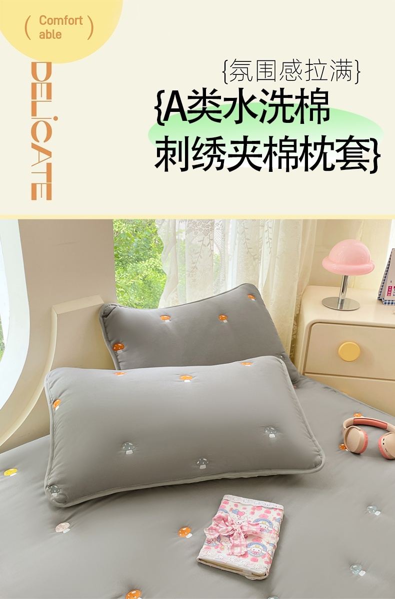 商品名称:梦舒羽 2025新款水洗棉刺绣夹棉枕套加厚宿舍学生枕头套枕芯套 蘑菇屋-高级灰
