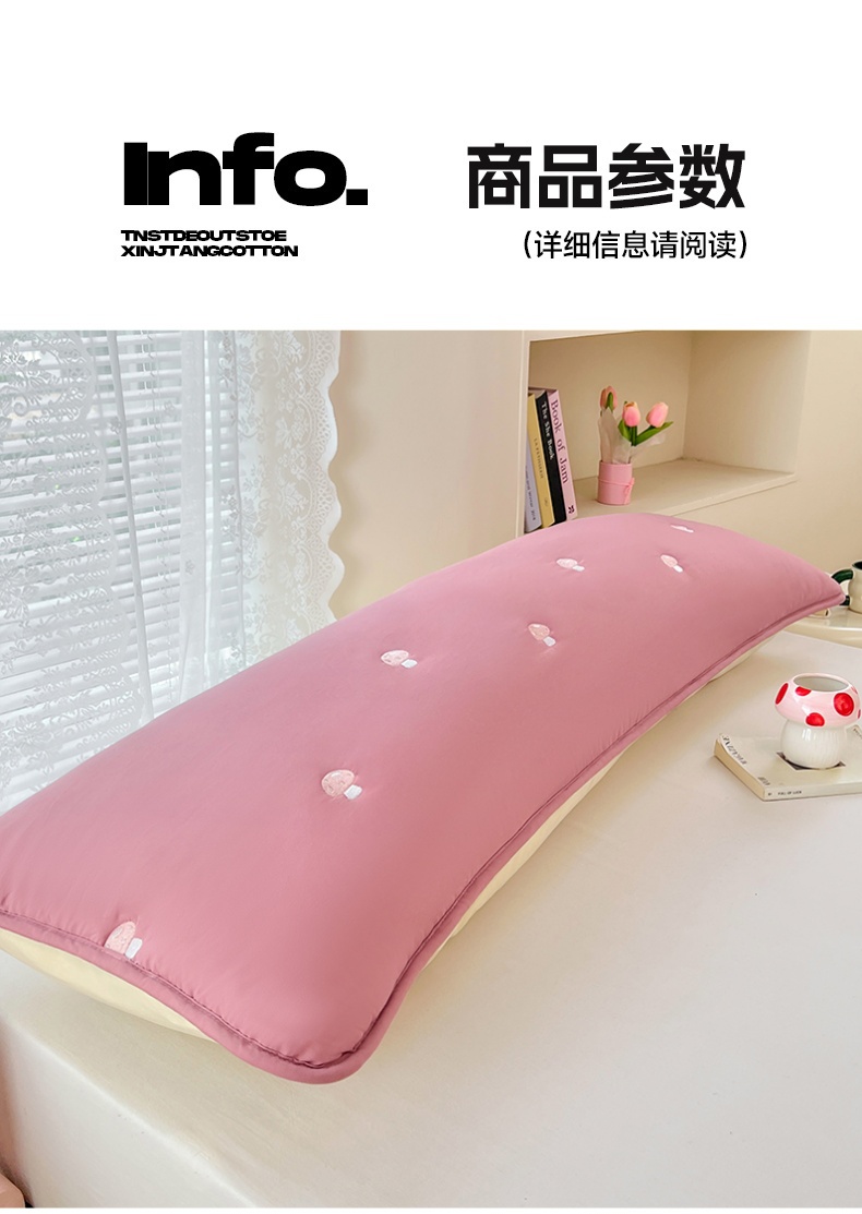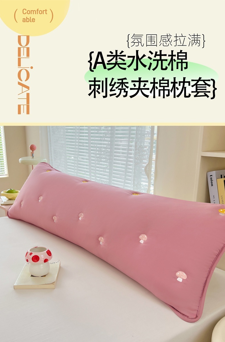 商品名称:梦舒羽 2025新款水洗棉刺绣双人夹棉枕套加厚学生情侣1.5m枕头套1.8米枕芯套 蘑菇屋-玫瑰红