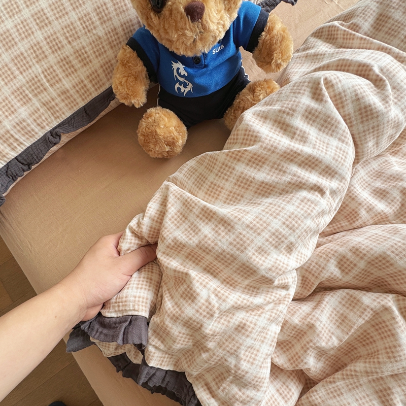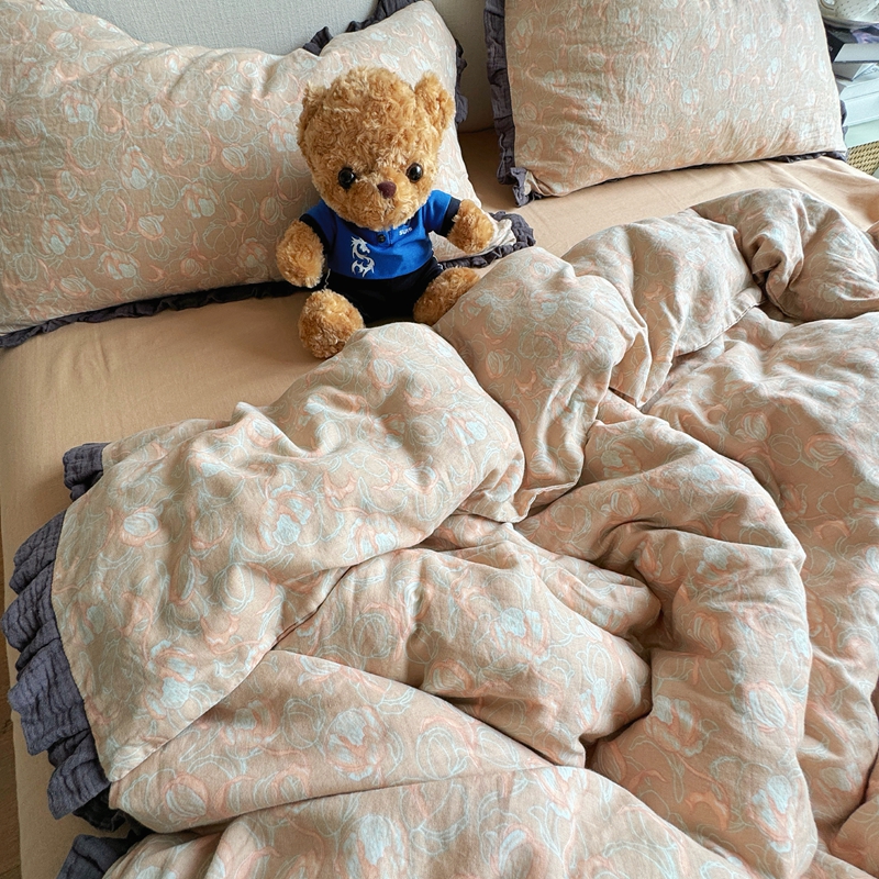 当前位置: 91家纺网 > 商品网购 > 床品套件 > 四件套 > 双层纱四件套 > 8+8 2025新款全棉纯棉双层纱镂空花边/皱皱花边四件套 花边款-海盐拿铁