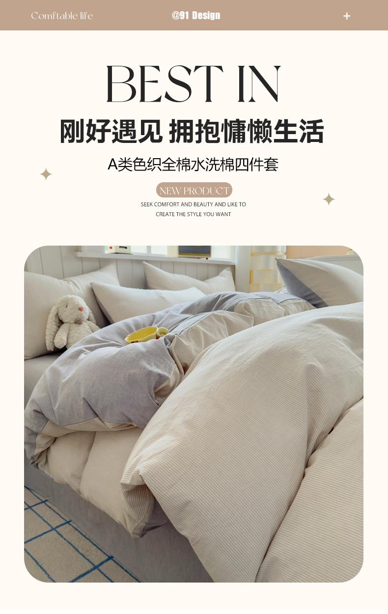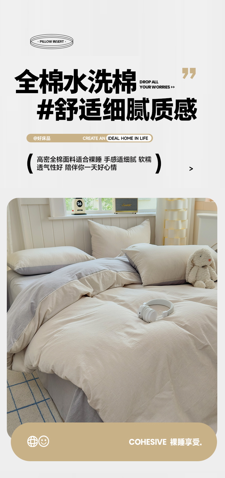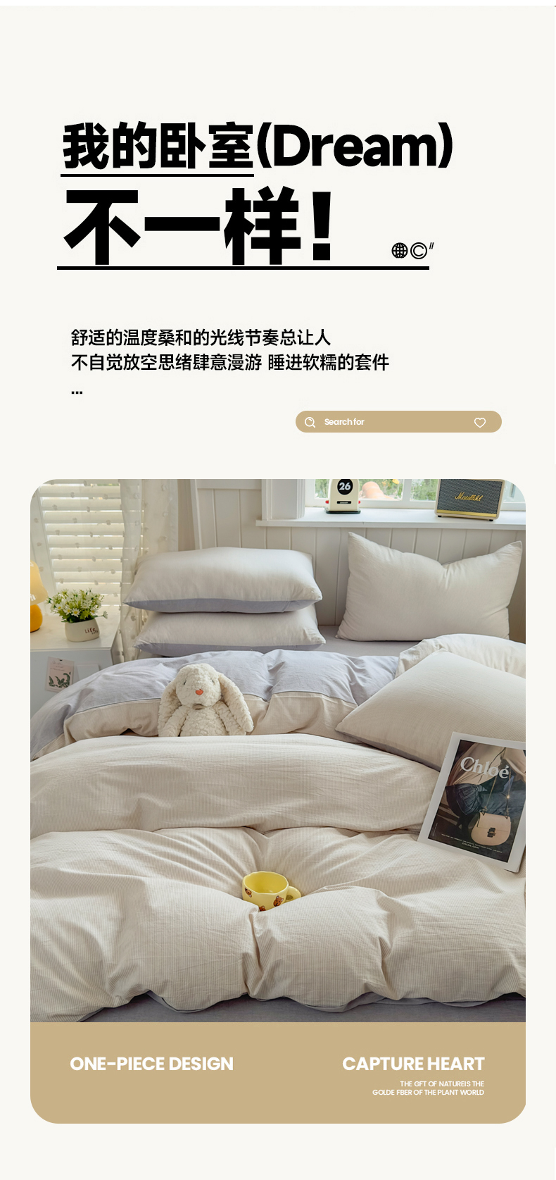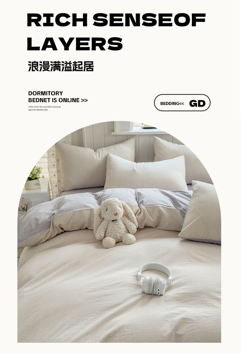 当前位置: 91家纺网 > 商品网购 > 床品套件 > 四件套 > 水洗棉四件套 > 晚依家纺 2025新款A类全棉色织水洗棉四件套纯棉格子纯色被套学生宿舍三件套定制定做 密条-米灰