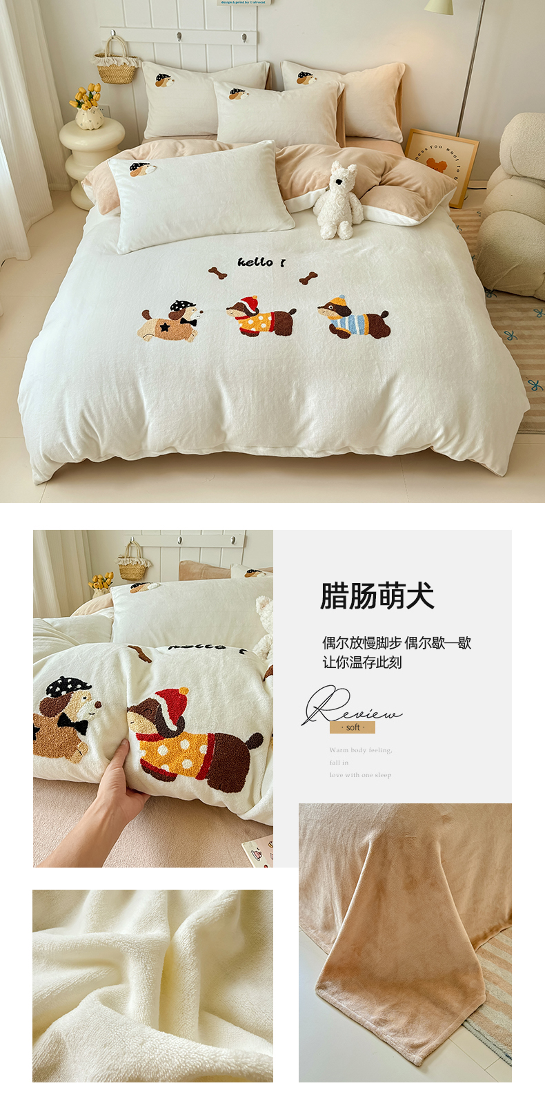 (总)莱凯家纺 2025新款贴布绣牛奶绒四件套,开心狗(白+橘),开心狗(卡其+绿),猫咪乐园(粉),猫咪乐园(灰),晚安羊驼(橘+卡其),晚安羊驼(绿+灰)