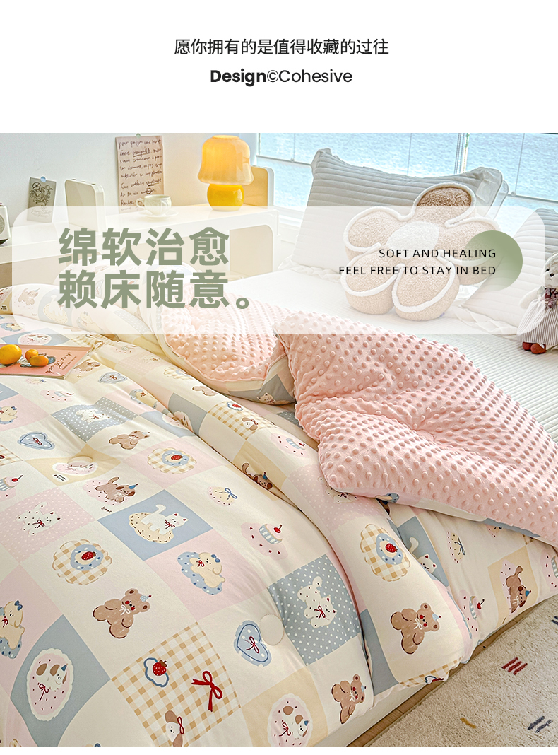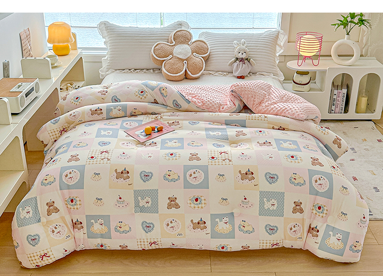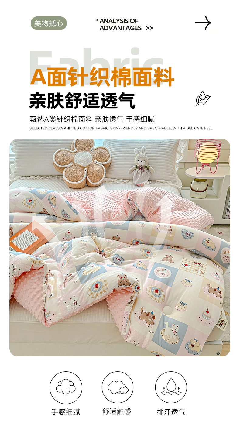 • 91家纺网 家纺一手货源 找家纺 优被业 2025新款A类牛奶丝针织棉豆豆被 大豆被 冬被 被子被芯 蛋糕熊