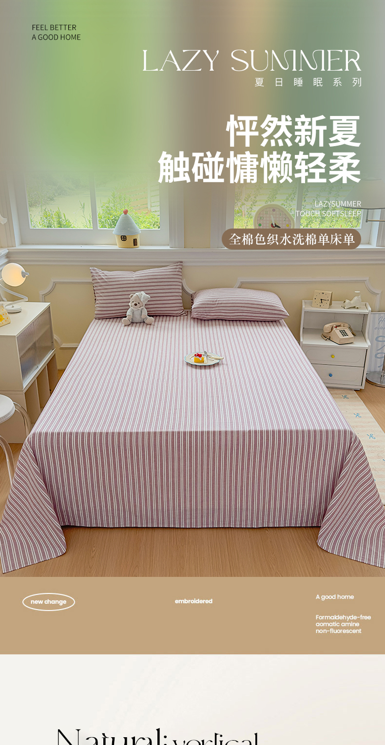 商品名称:菡宝 2025新款全棉纯棉色织水洗棉单床单 牧野魅影紫