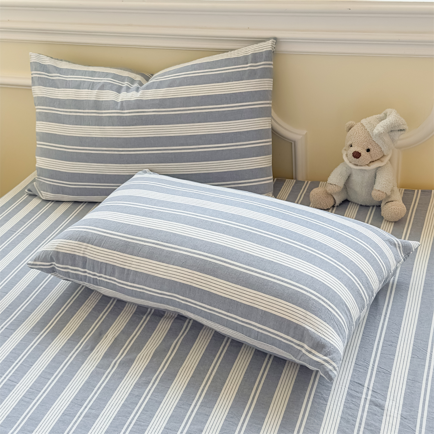 商品名称:菡宝 2025新款全棉纯棉色织水洗棉单品系列单枕套枕套单品 漫幽灰蓝条