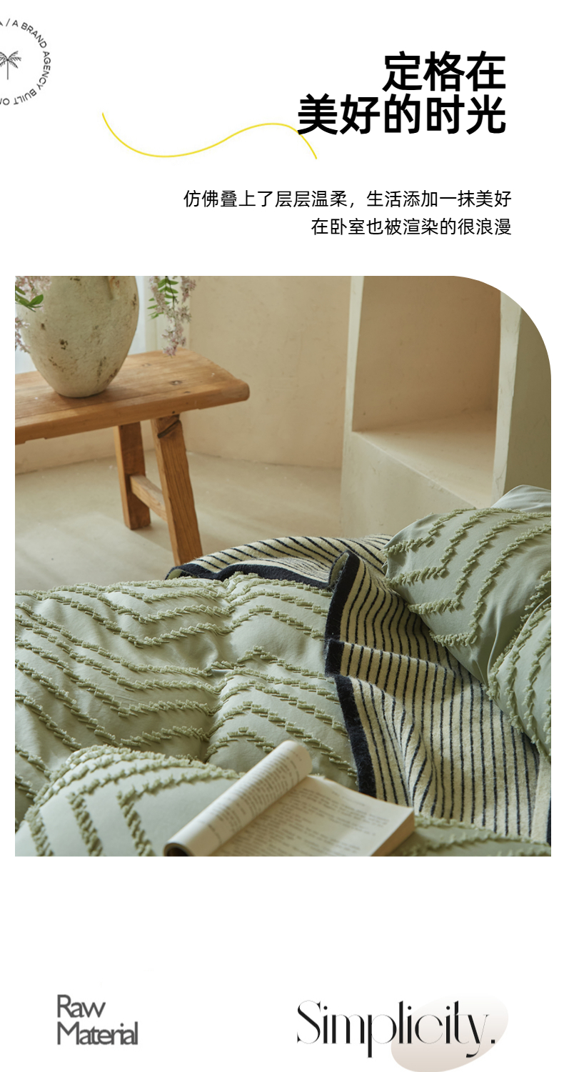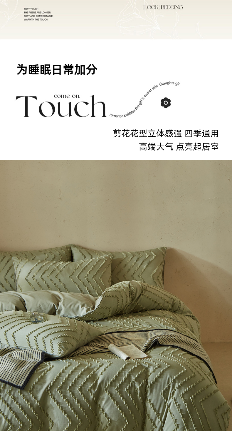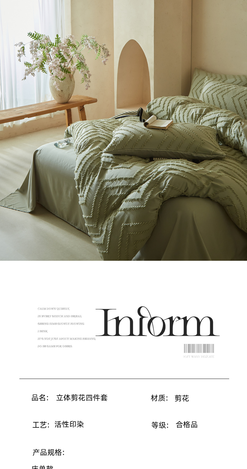 当前位置: 91家纺网 > 商品网购 > 床品套件 > 四件套 > 其它四件套 > 缘生活 2025新款立体剪花A面剪花面料B面加厚磨毛布料四件套 剪花波浪-旧绿