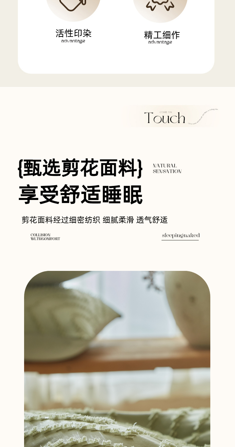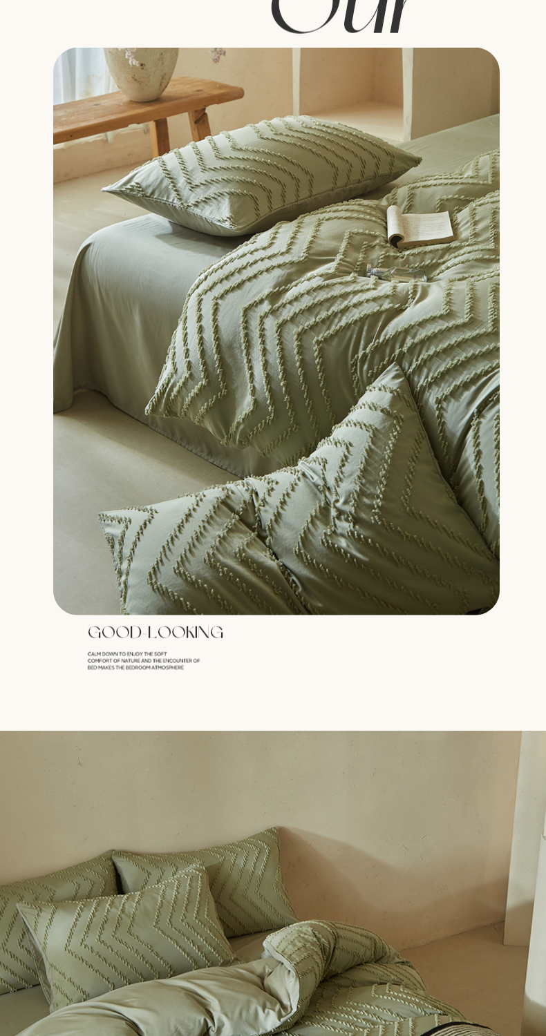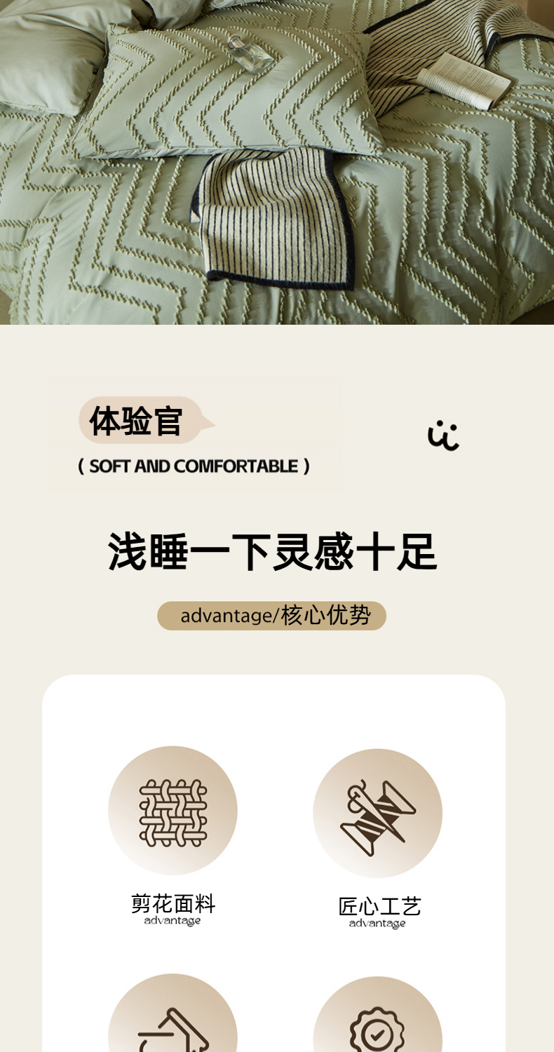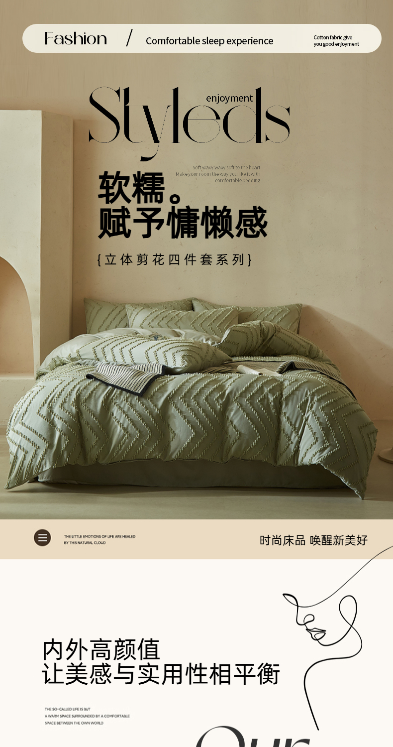 当前位置: 91家纺网 > 商品网购 > 床品套件 > 四件套 > 其它四件套 > 缘生活 2025新款立体剪花A面剪花面料B面加厚磨毛布料四件套 剪花波浪-旧绿