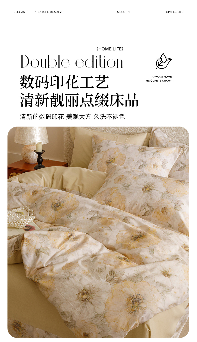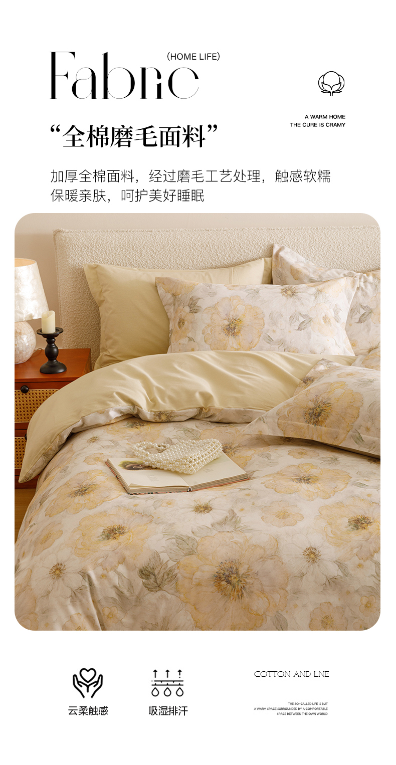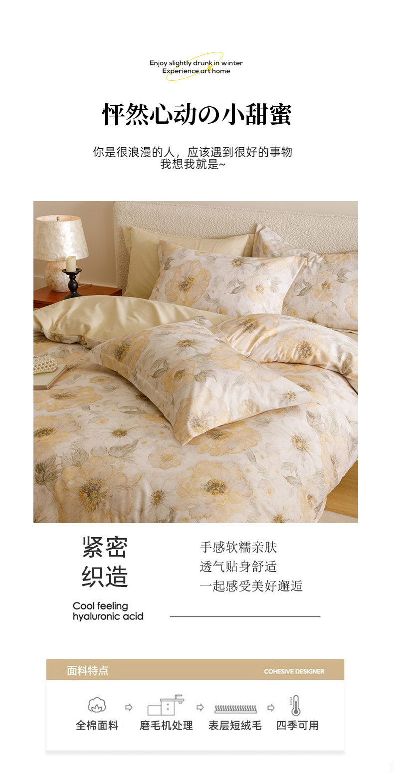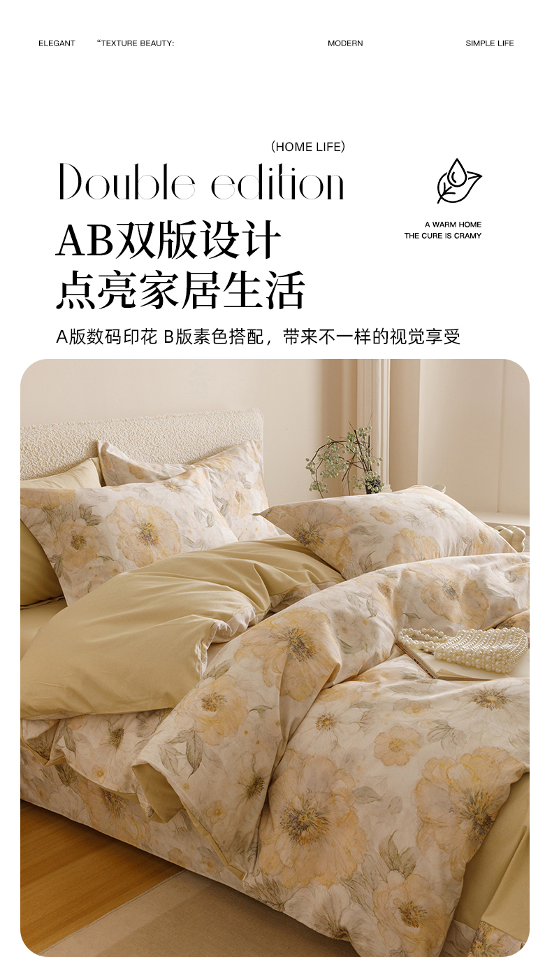 当前位置: 91家纺网 > 商品网购 > 床品套件 > 四件套 > 全棉普通四件套 > 爱思佳 2025新款加厚全棉纯棉磨毛数码印花四件套 豆蔻年华