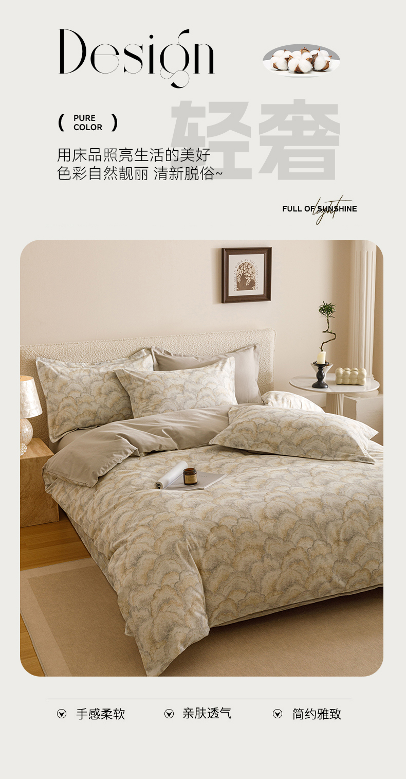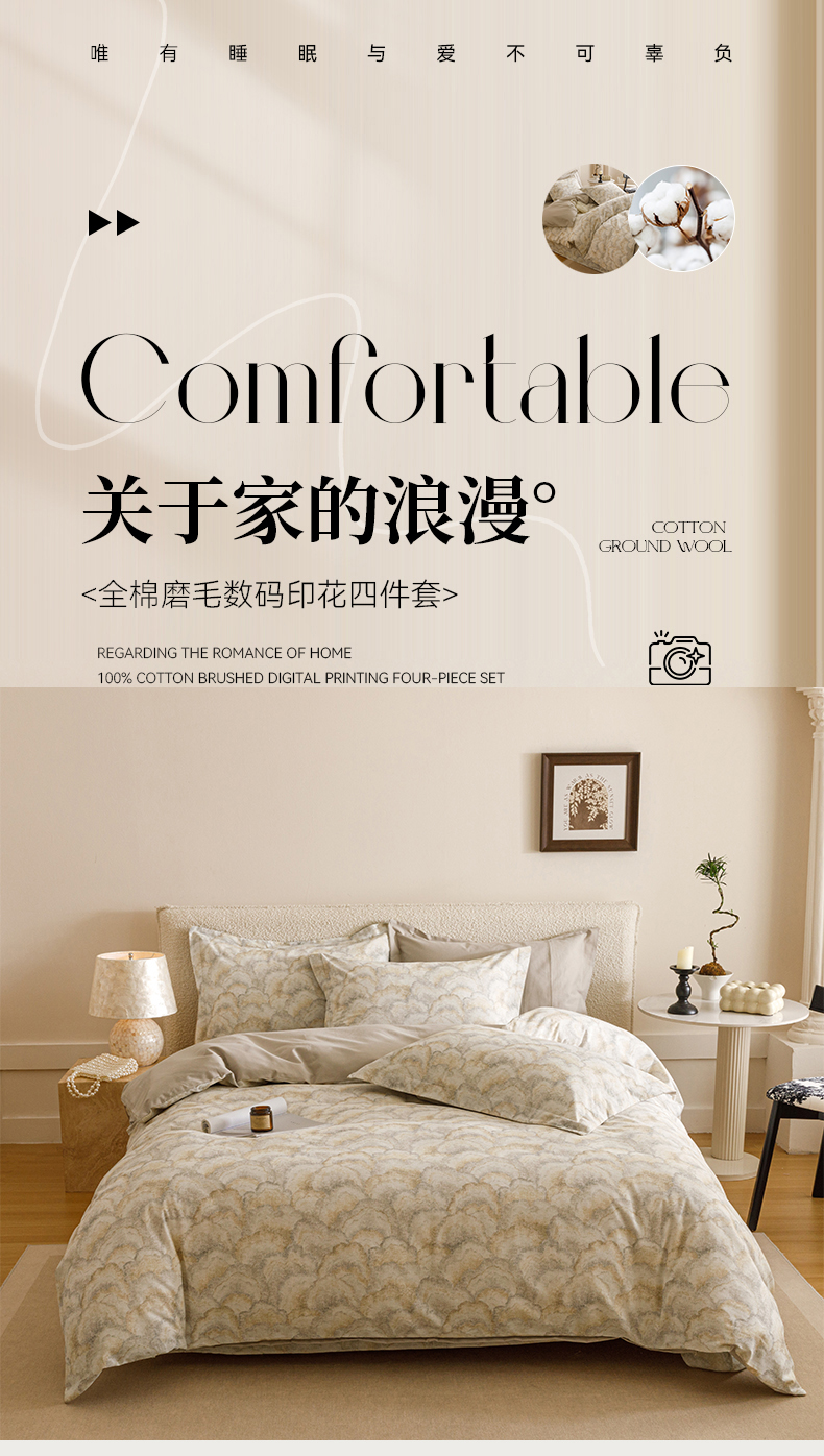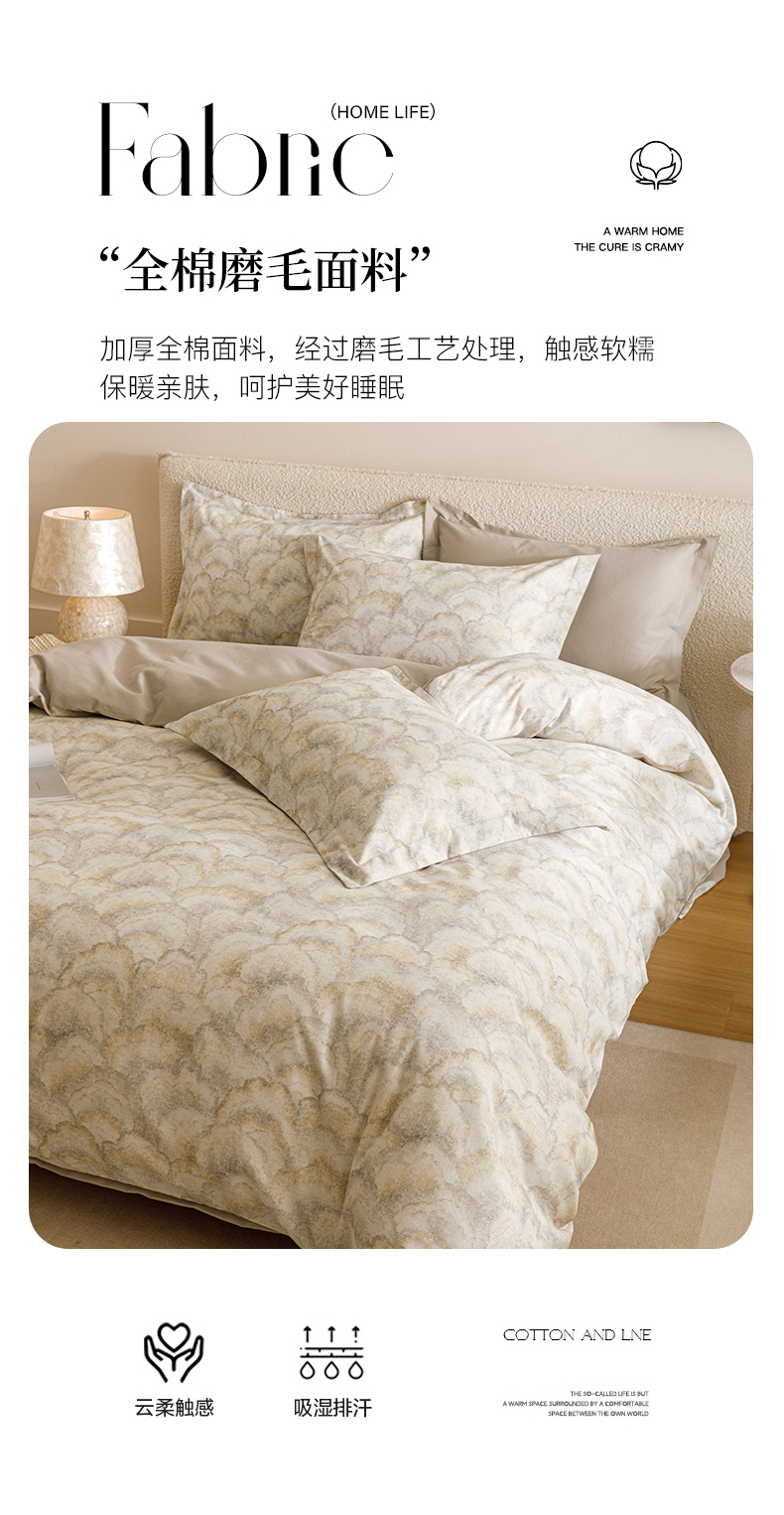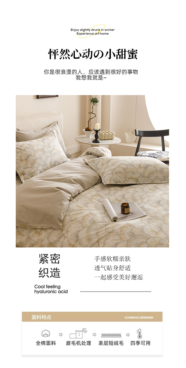 当前位置: 91家纺网 > 商品网购 > 床品套件 > 四件套 > 全棉普通四件套 > 爱思佳 2025新款加厚全棉纯棉磨毛数码印花四件套 温言