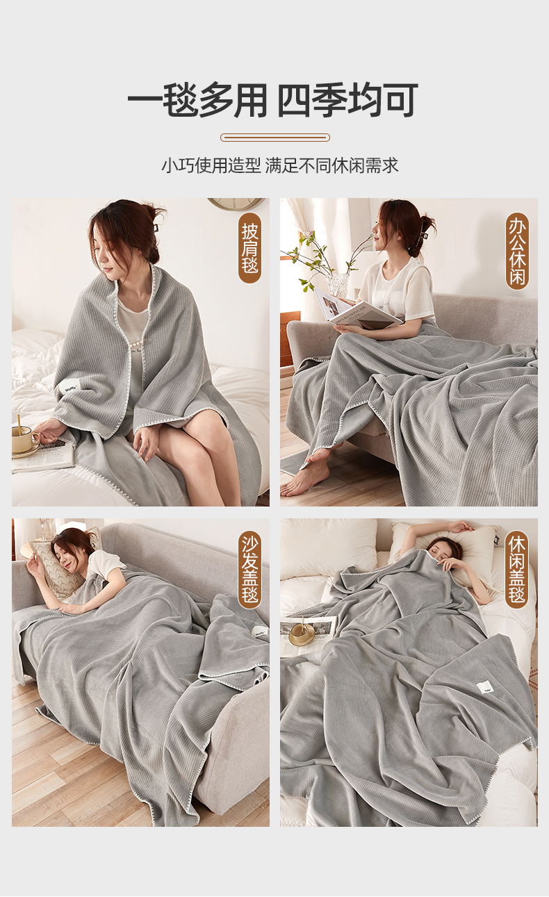 莱家富 2026新款500克加厚A类华夫格牛奶绒双面毛毯轻奢休闲盖毯子多尺寸多功能午睡办 组合图仅做展示