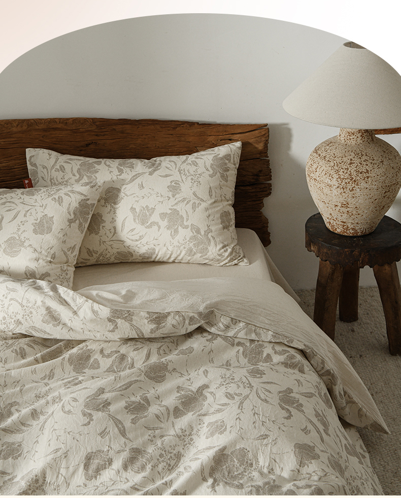 当前位置: 91家纺网 > 商品网购 > 床品套件 > 四件套 > 其它四件套 > 羚羊语家纺 2025新款A类棉麻高支密原生棉花亚麻四件套复古色织数码印花文艺风绉绉汉麻亚麻自 小重山