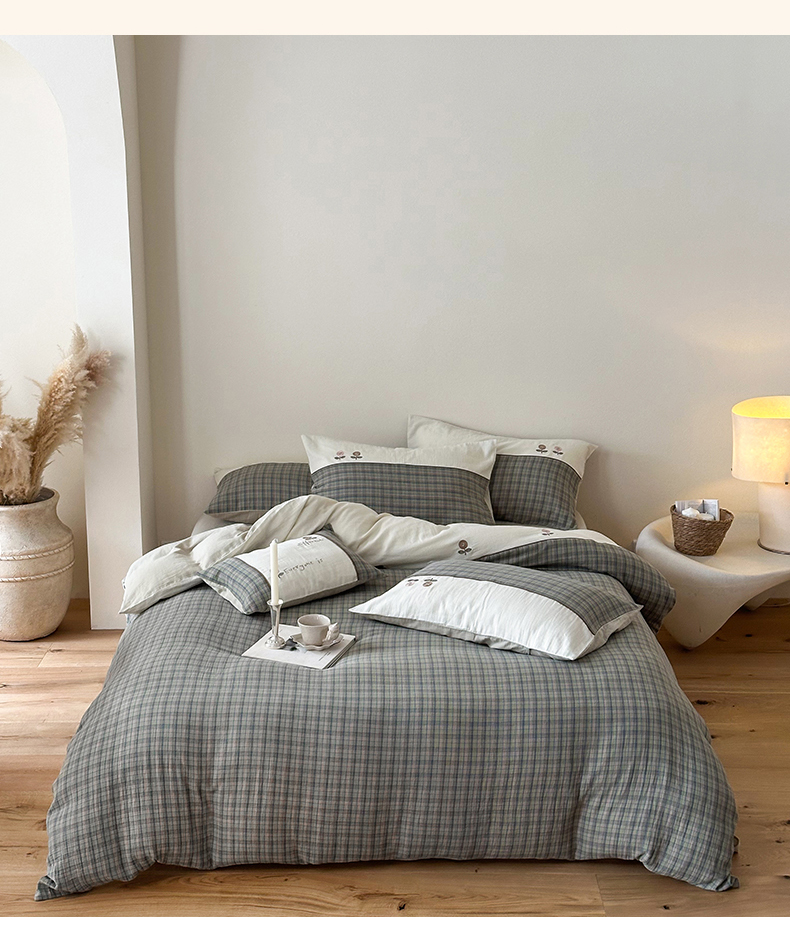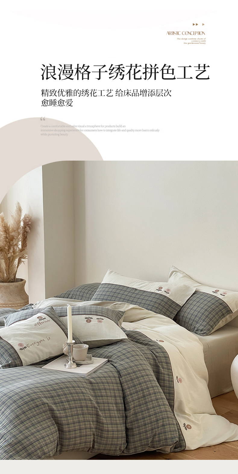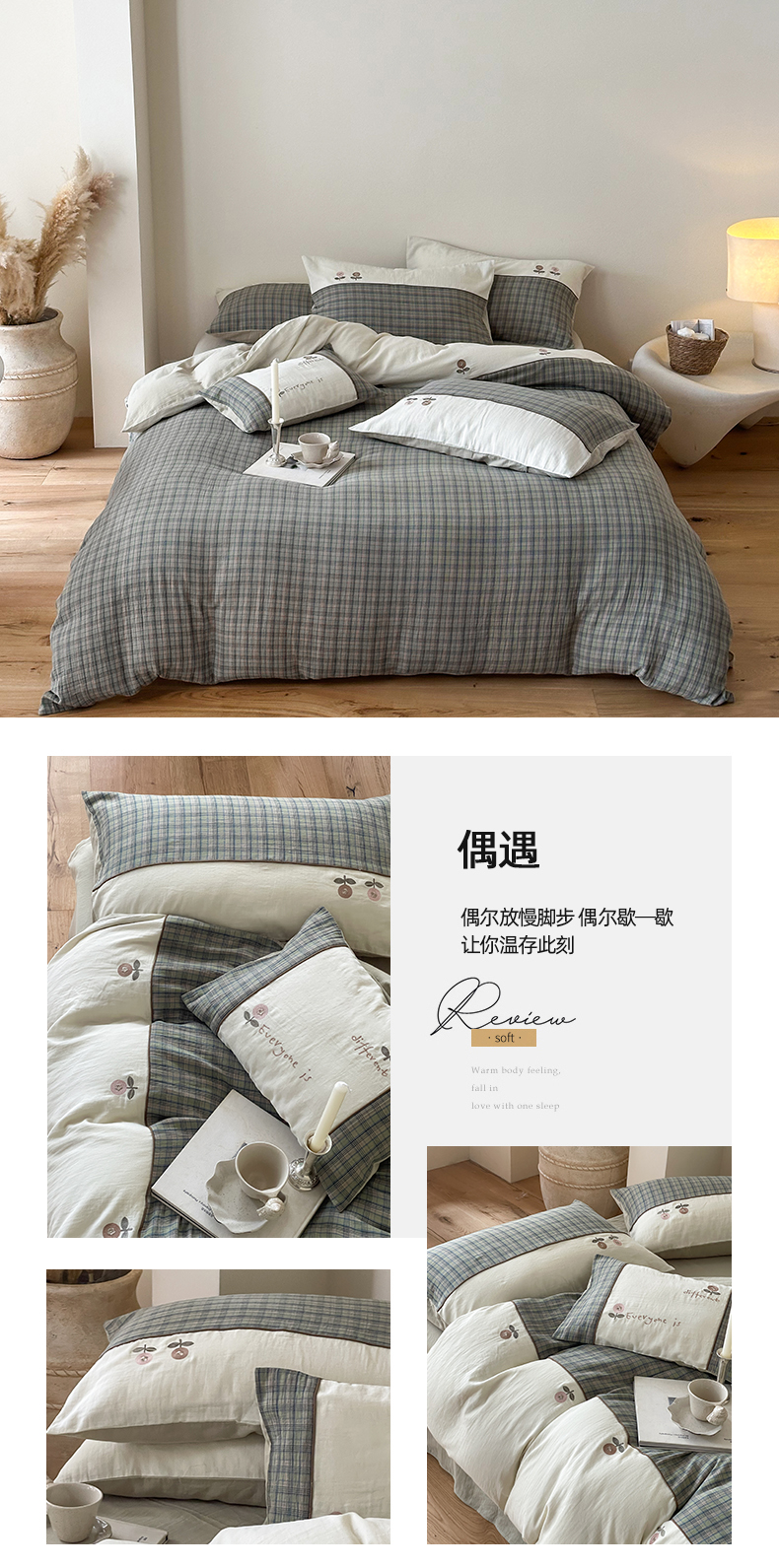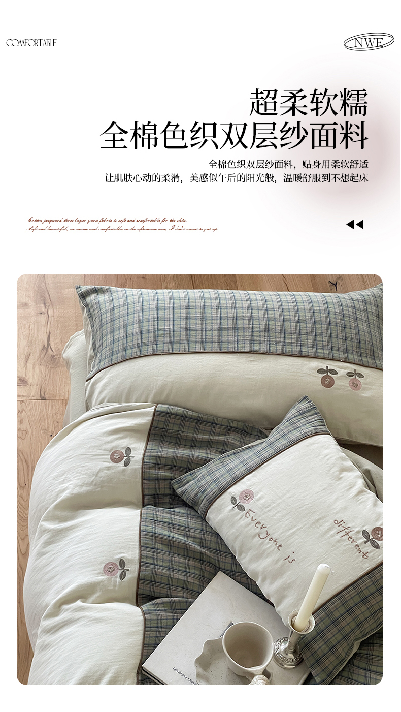 商品名称:FORTWO2025新款色织双层纱格子绣花拼色四件套 偶遇