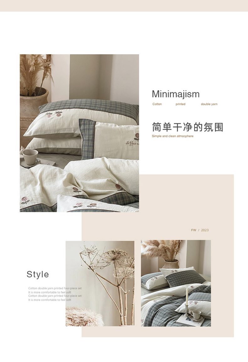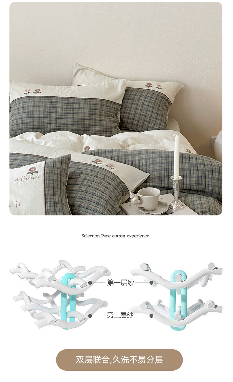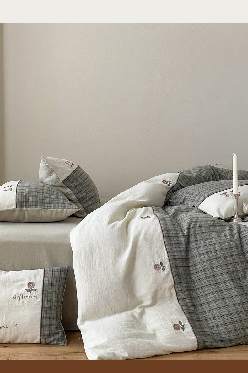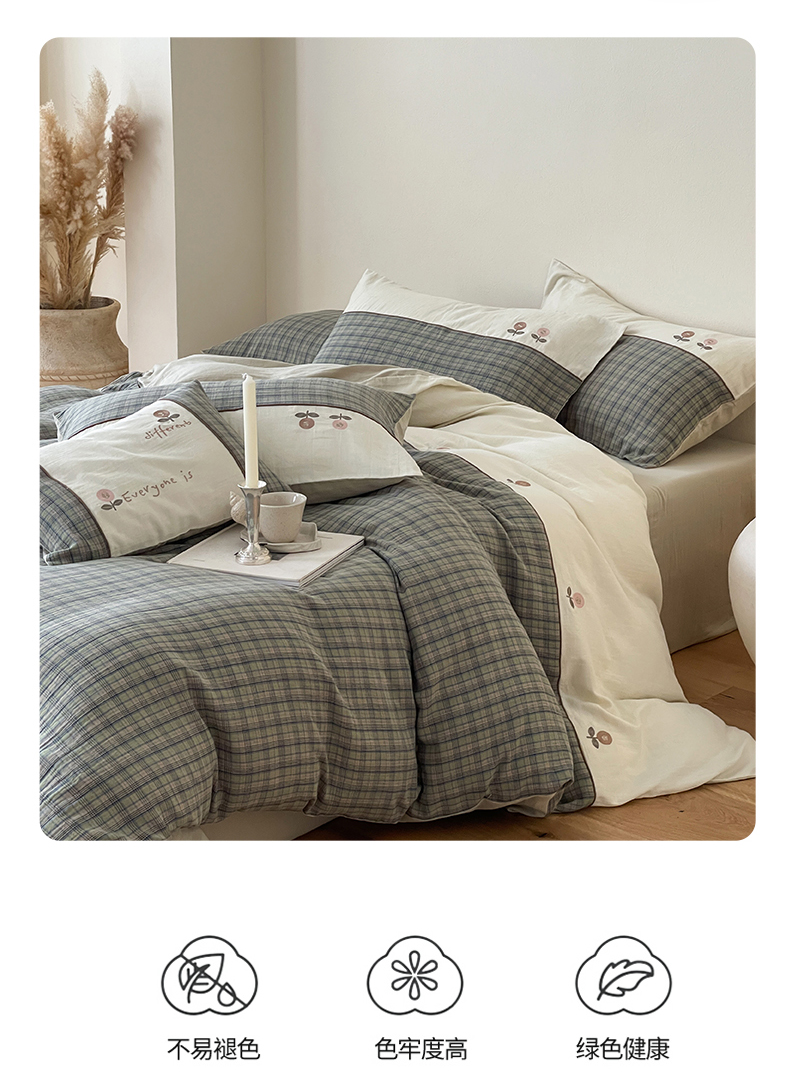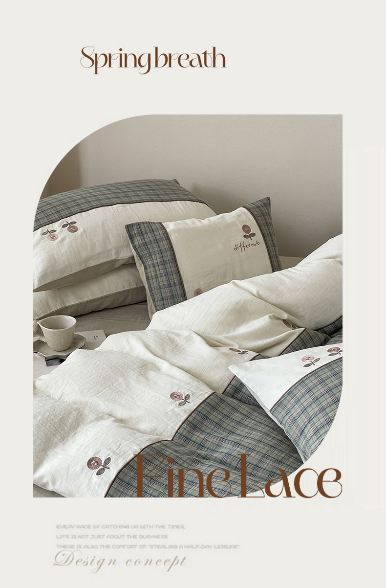 商品名称:FORTWO2025新款色织双层纱格子绣花拼色四件套 偶遇