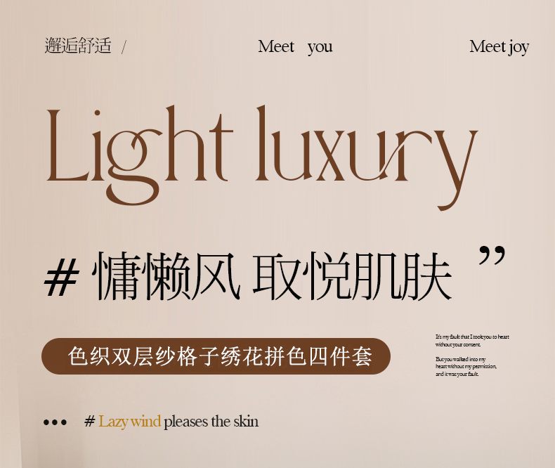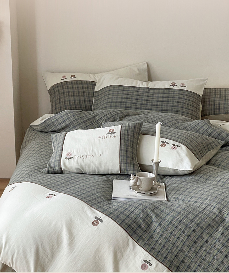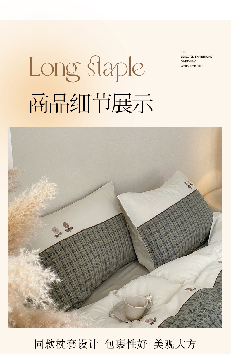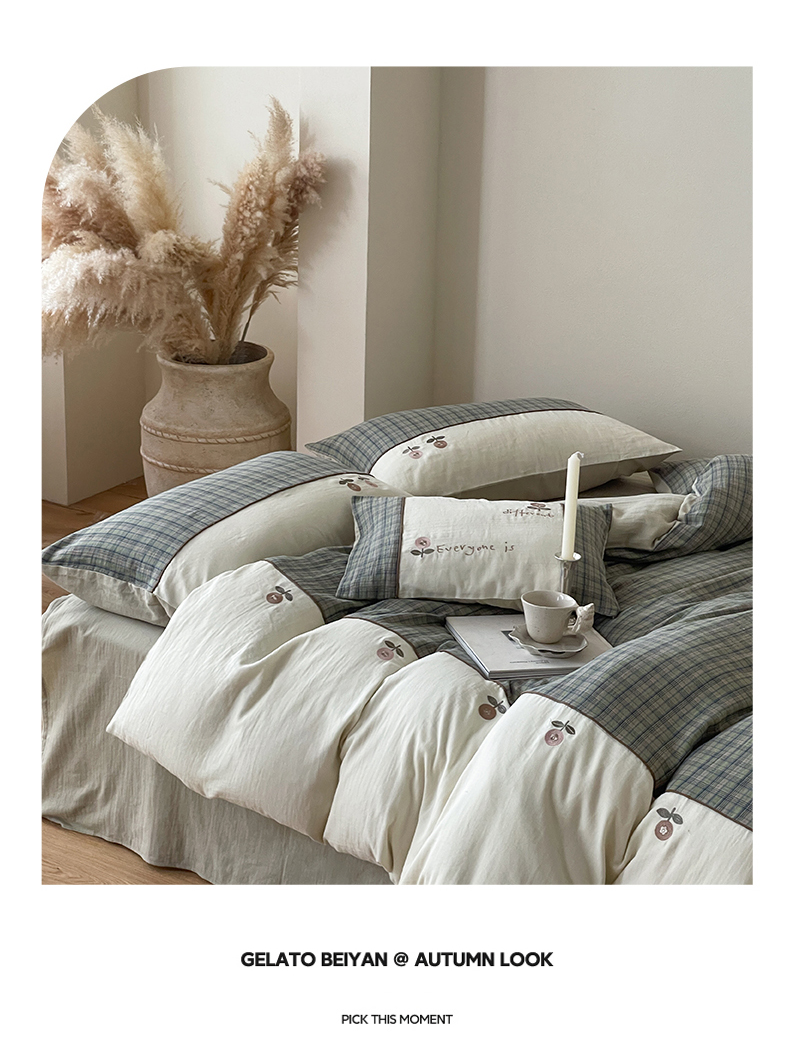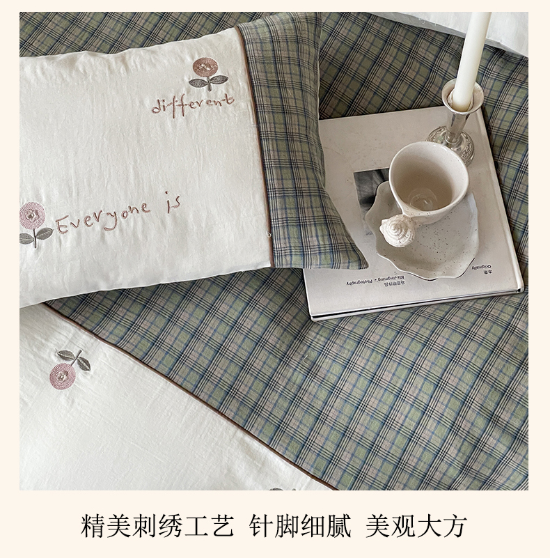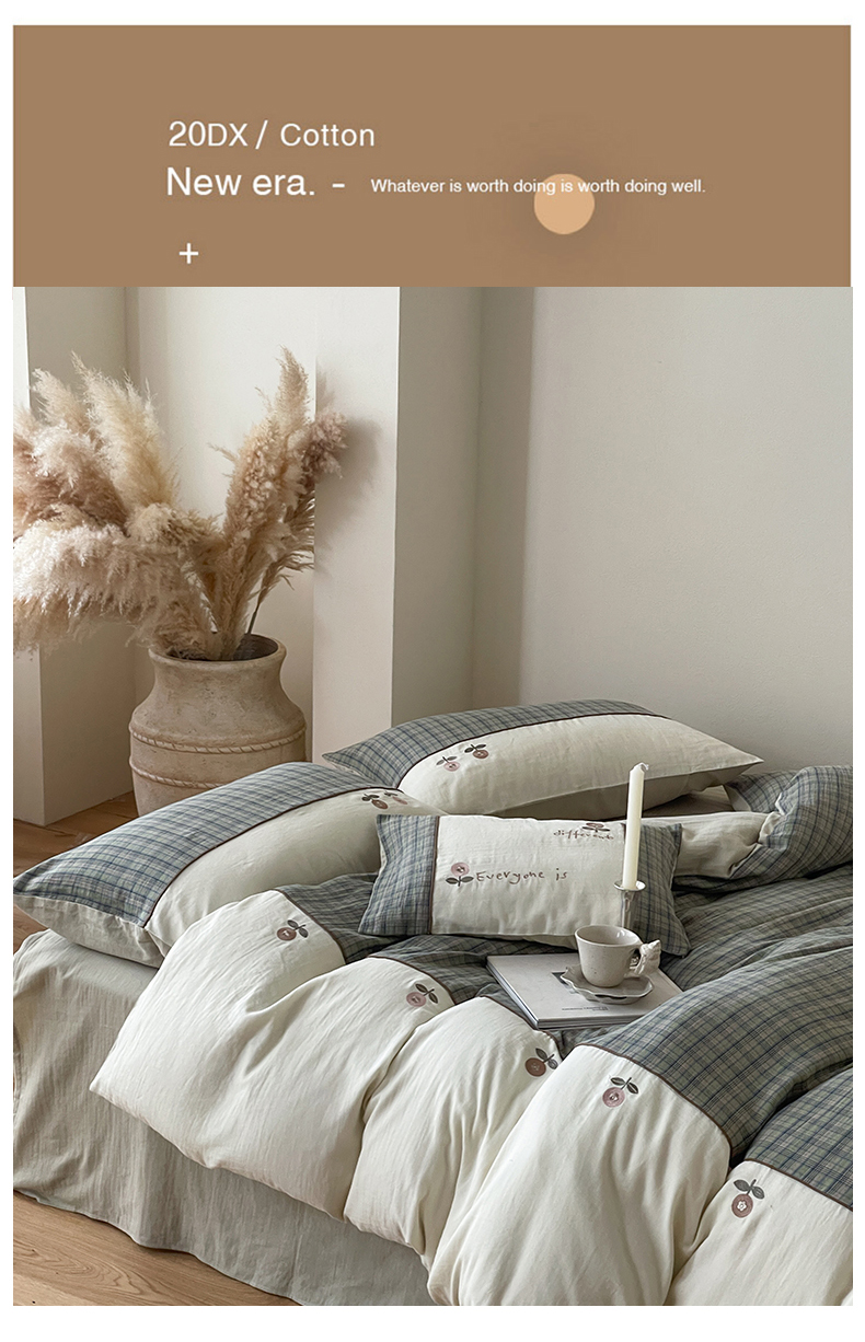商品名称:FORTWO2025新款色织双层纱格子绣花拼色四件套 偶遇