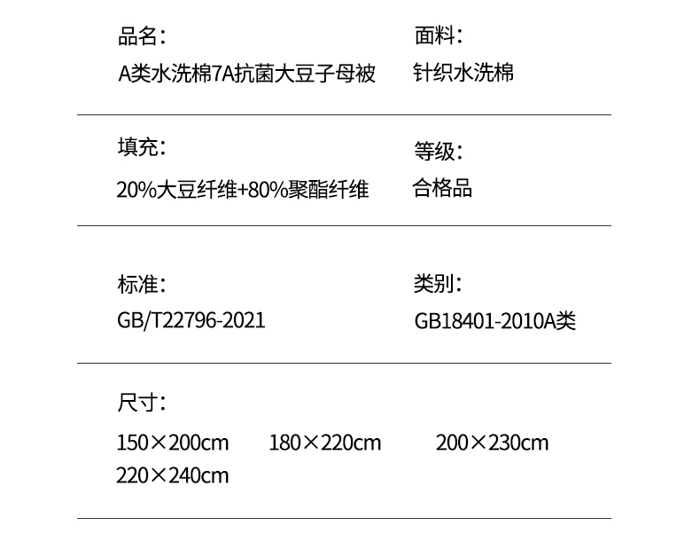 200*230cm4.0斤春秋被 | ¥50.00 |