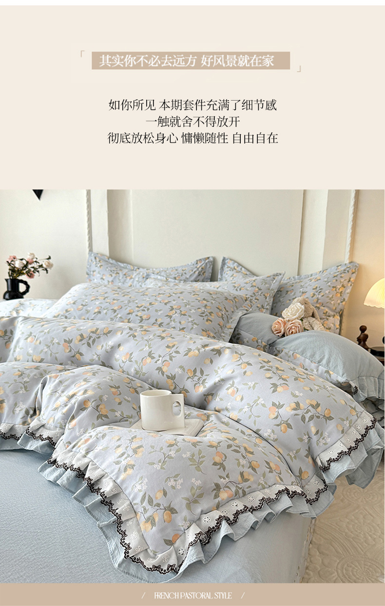 (总)韩约家纺 2026新款韩式花边古法棉感床盖四件套,知否,午后时光,漫花蝶舞,莓莓果,花影,甜心狗,初遇,萝莉,雨沫