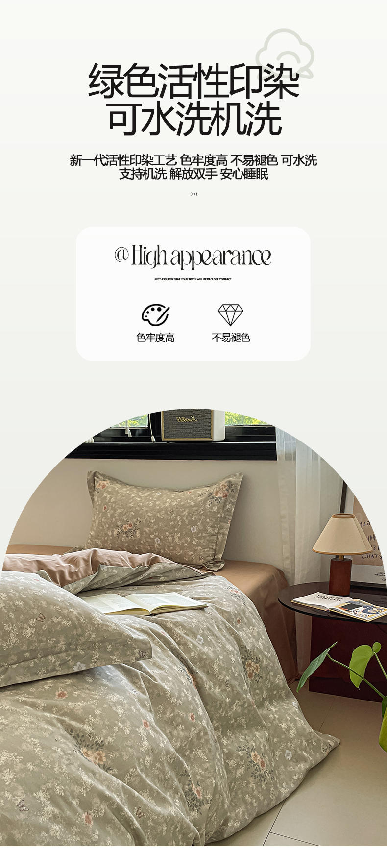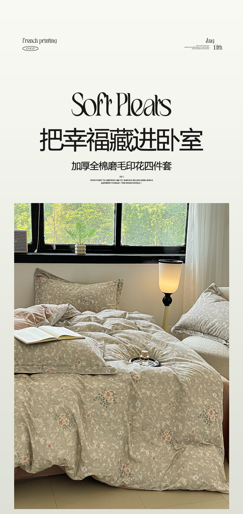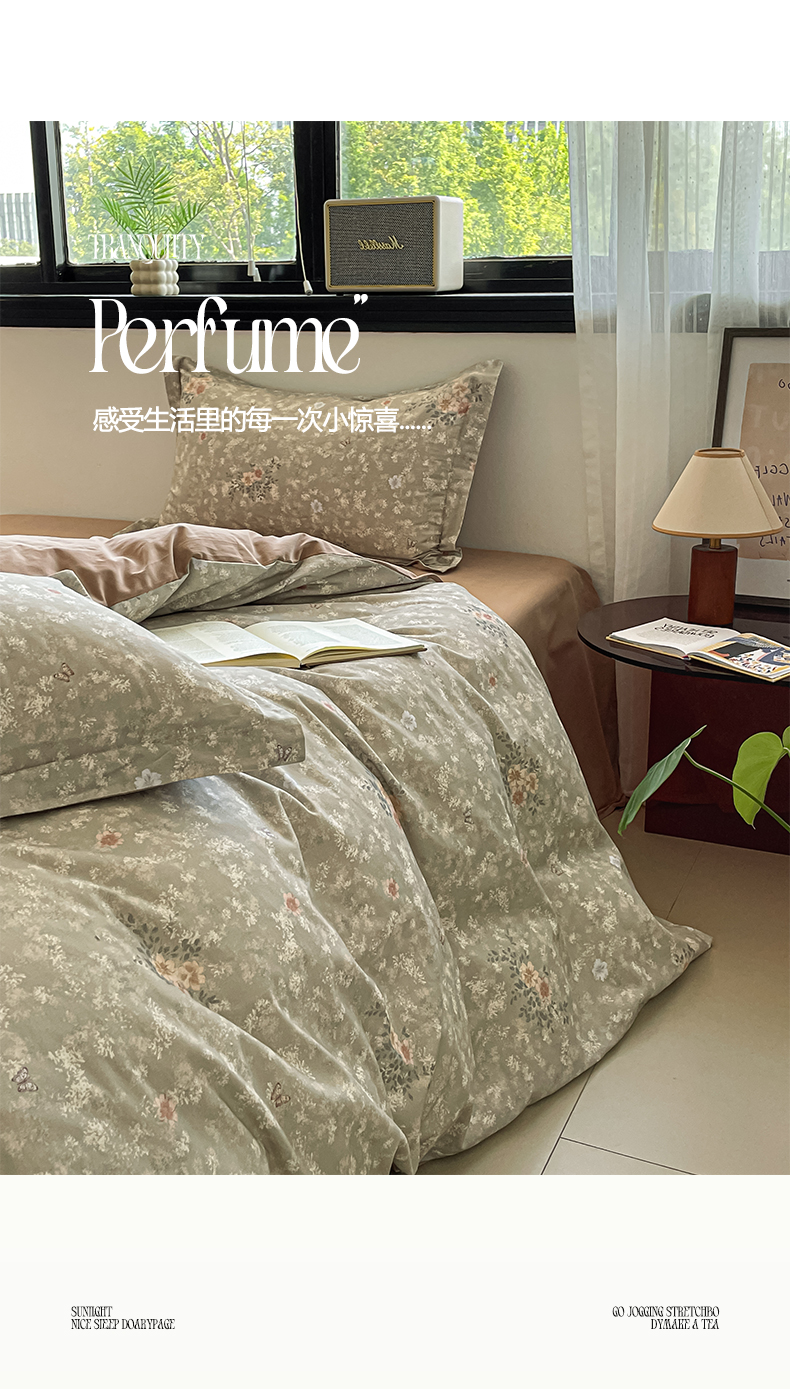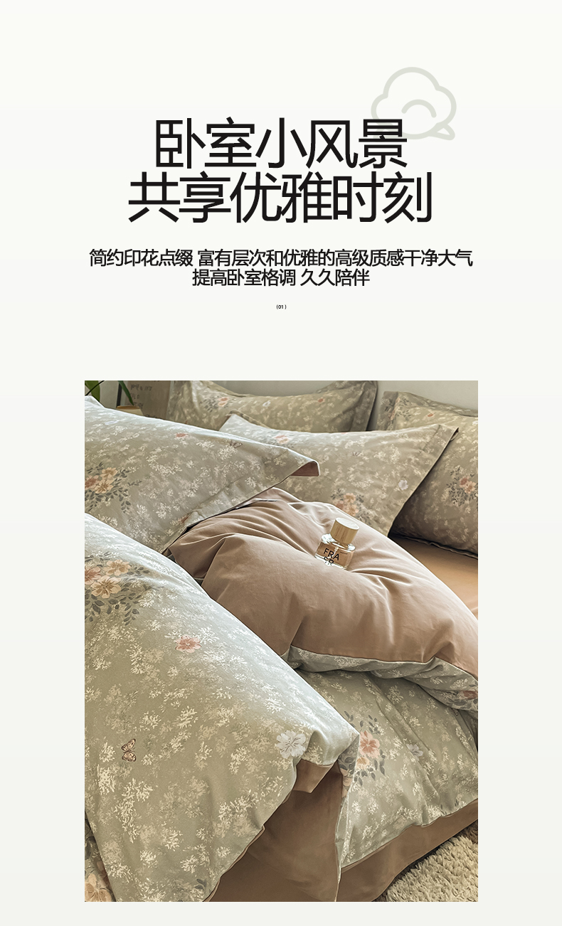 当前位置: 91家纺网 > 商品网购 > 床品套件 > 四件套 > 磨毛活性四件套 > 涵宸家纺 2025新款加厚全棉磨毛印花四件套--罗马系列 场景二 F山茶