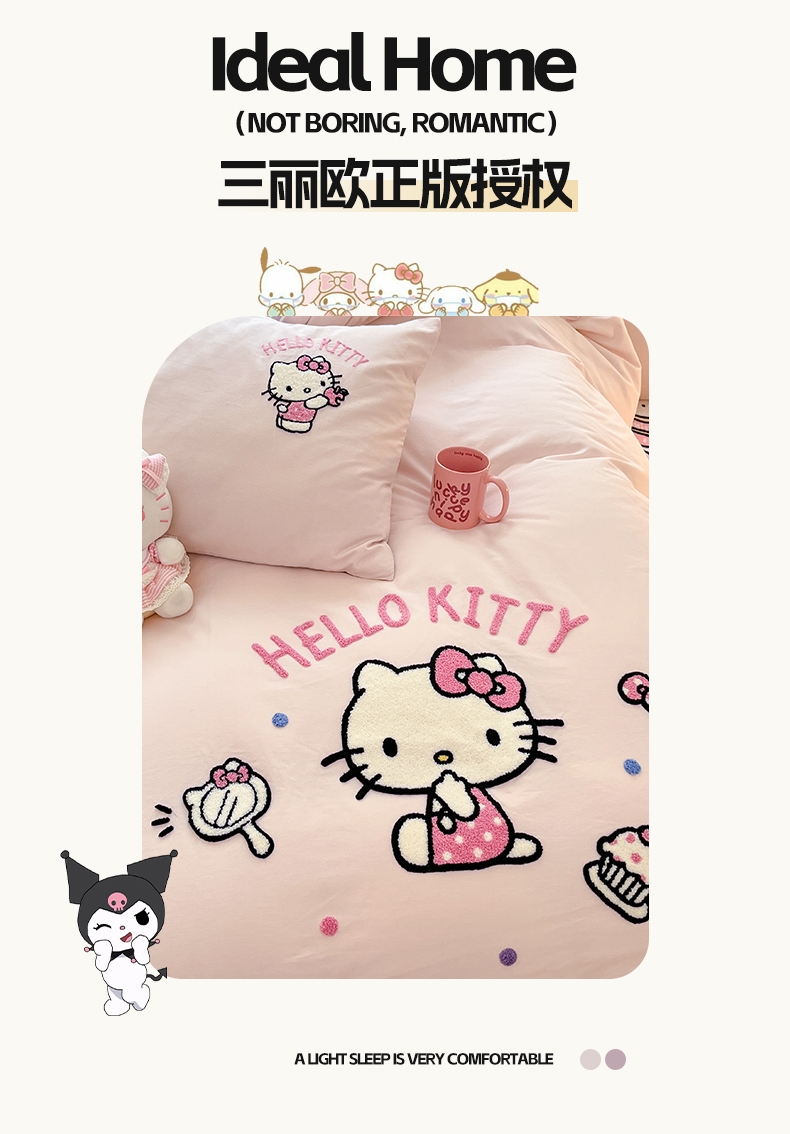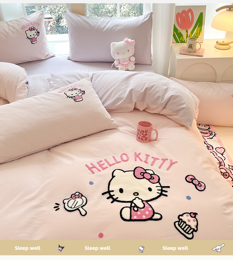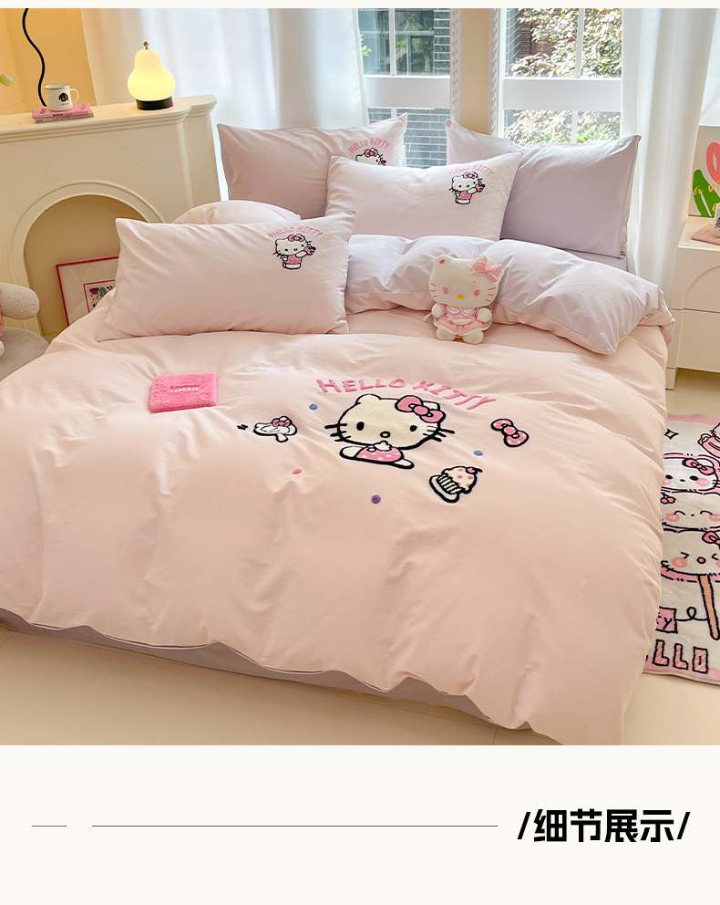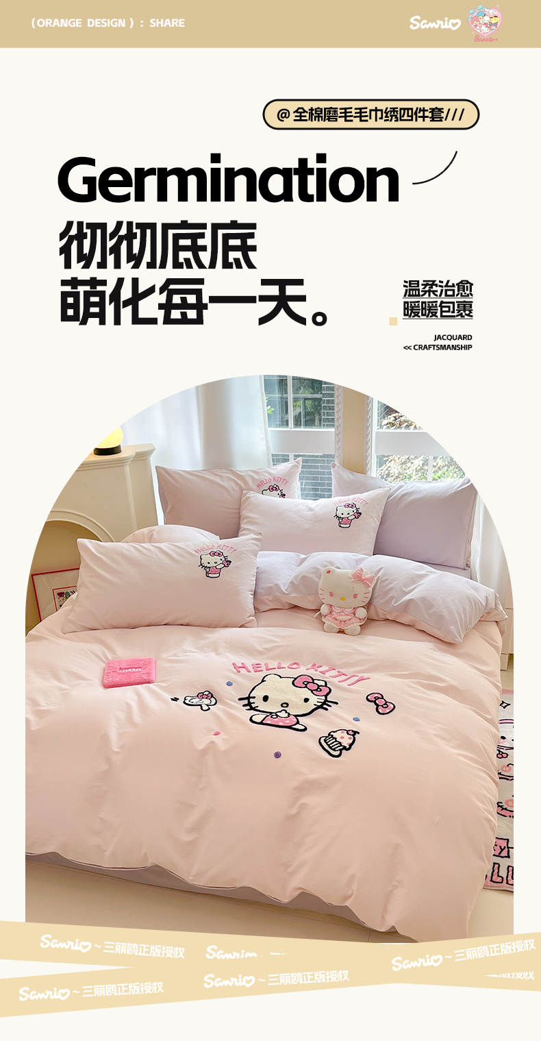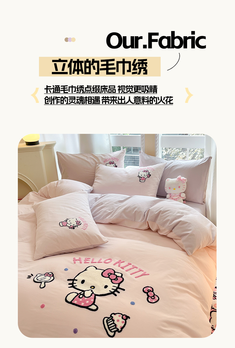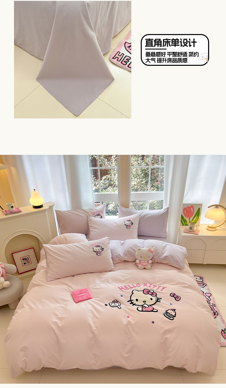 当前位置: 91家纺网 > 商品网购 > 床品套件 > 四件套 > 全棉普通四件套 > 雅居纺家纺 2025新款全棉纯棉磨毛三丽鸥毛巾绣四件套 蛋糕KT