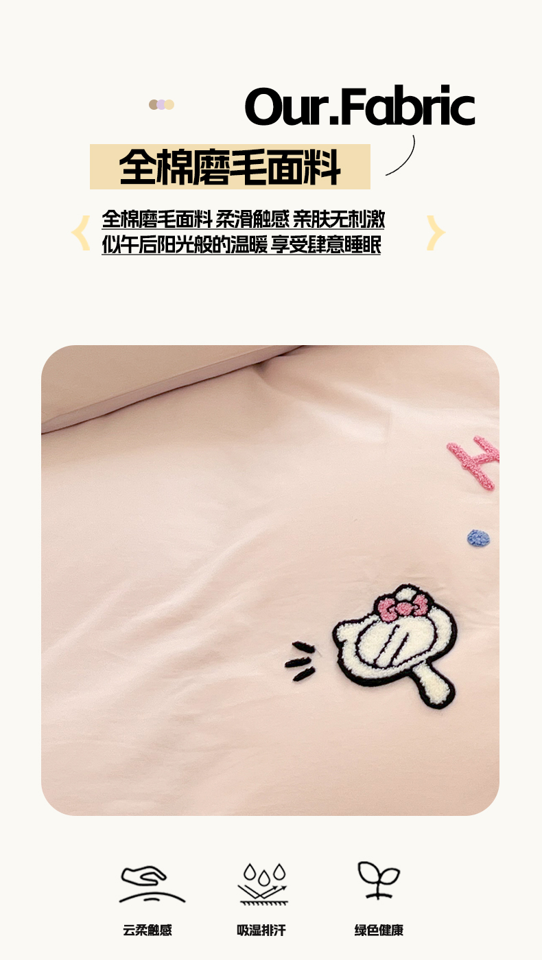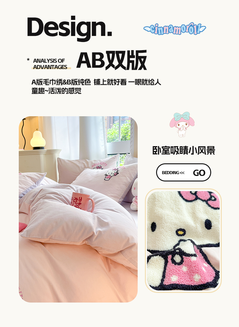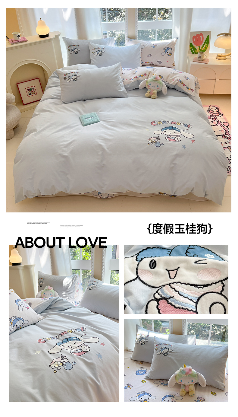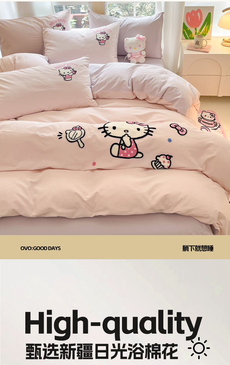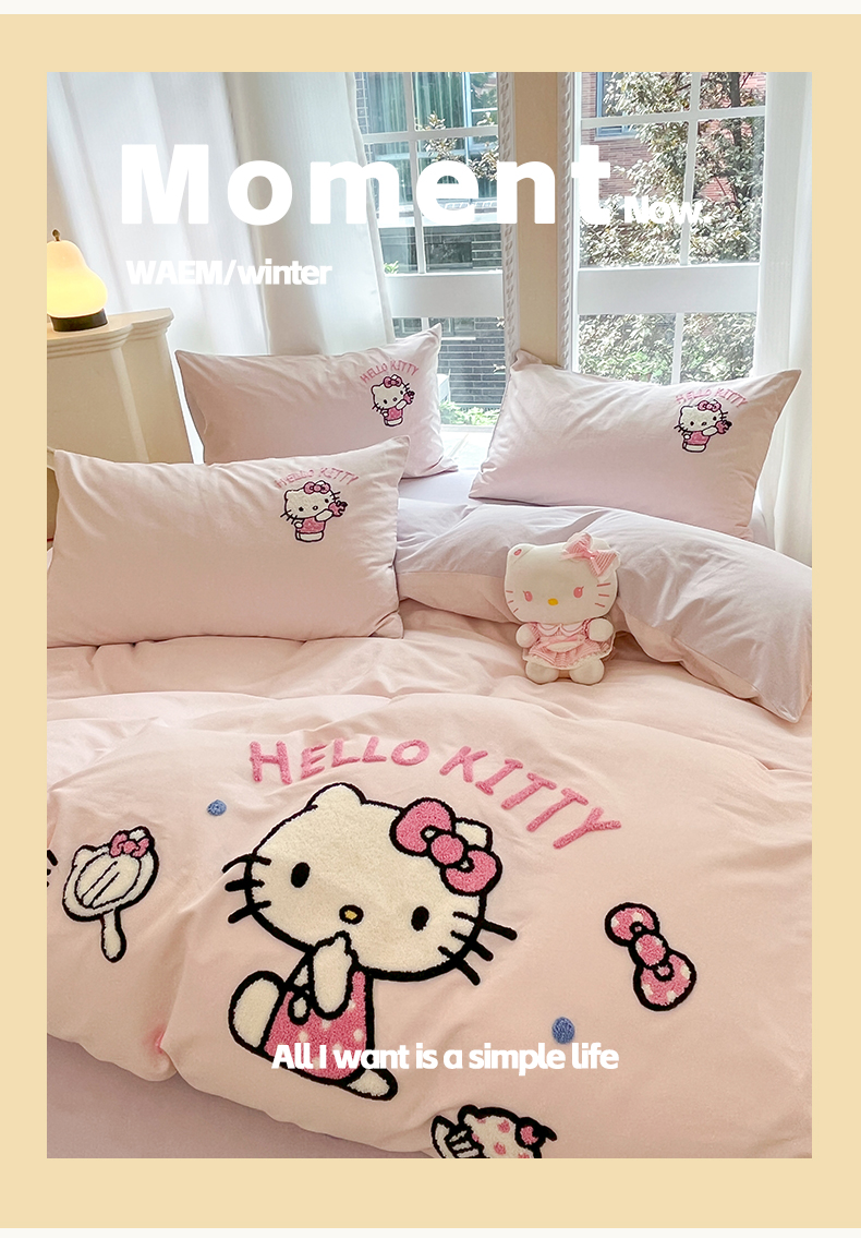 当前位置: 91家纺网 > 商品网购 > 床品套件 > 四件套 > 全棉普通四件套 > 雅居纺家纺 2025新款全棉纯棉磨毛三丽鸥毛巾绣四件套 蛋糕KT