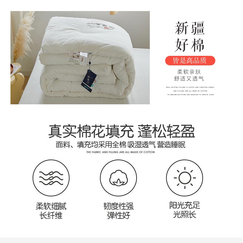 • 91家纺网 家纺一手货源 找家纺 VIP被业 2025新款里外新疆棉原棉被子被芯 舒心白