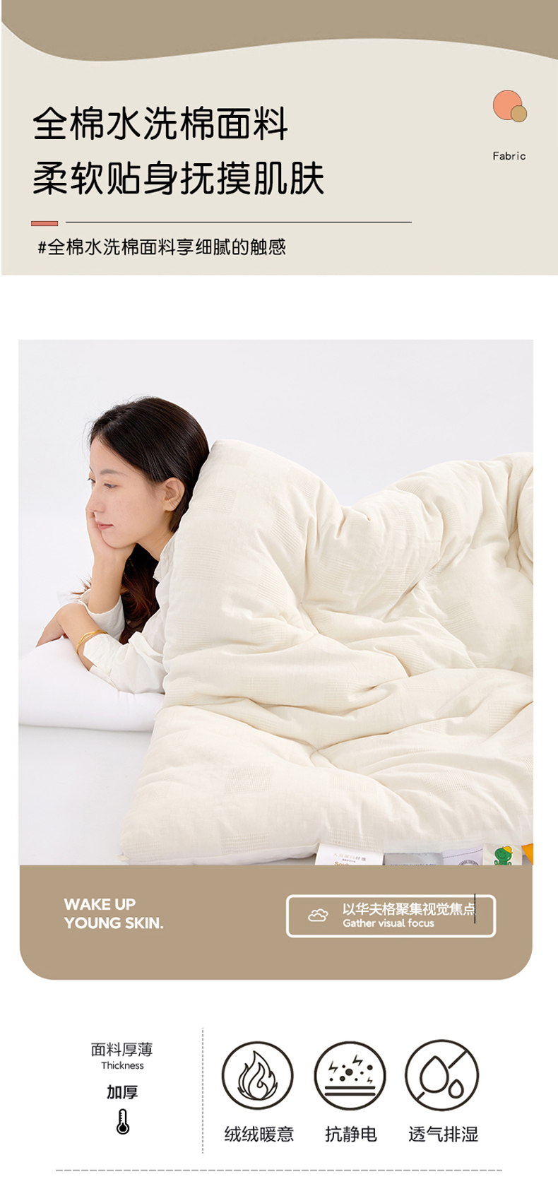 • 91家纺网 家纺一手货源 找家纺 (总)VIP被业 2025新款星辰织条全棉大豆子母被冬被被芯,白色,粉色,灰色