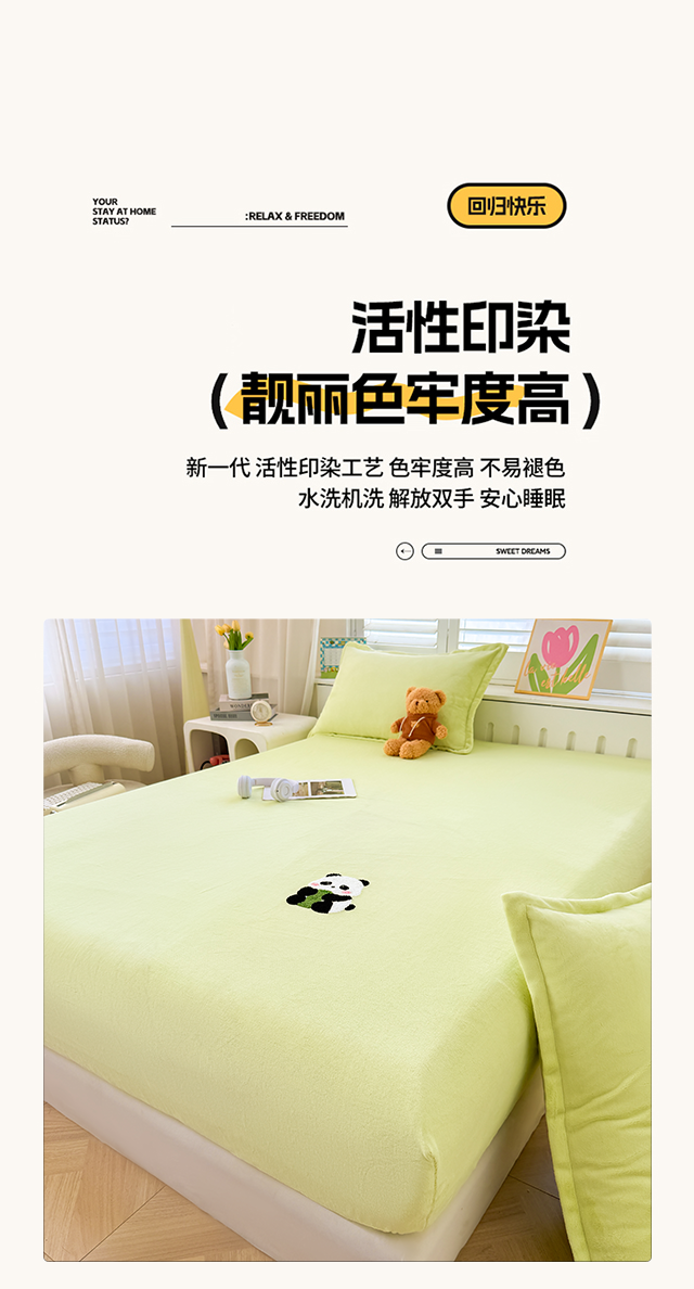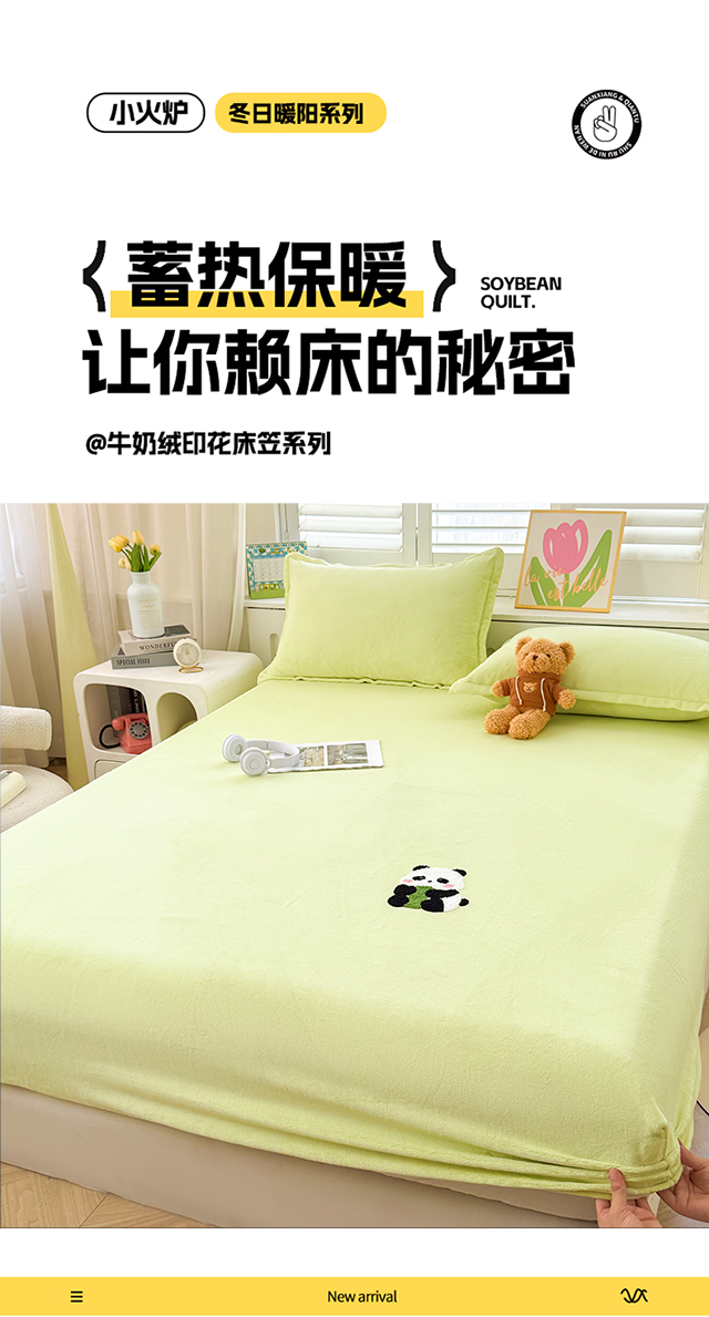 (总)湘之帛 2024新款高克重舒适牛奶绒三件套床笠,繁花似锦,格子小熊,可爱小熊,快乐萌狗,恋爱物语,甜心兔兔