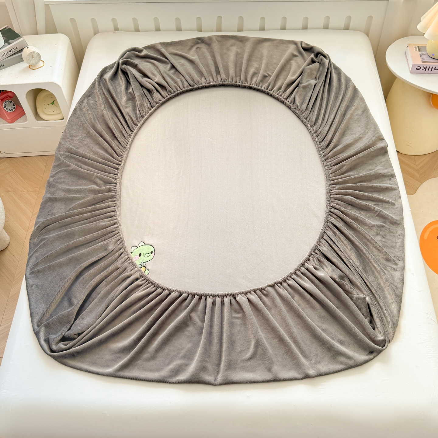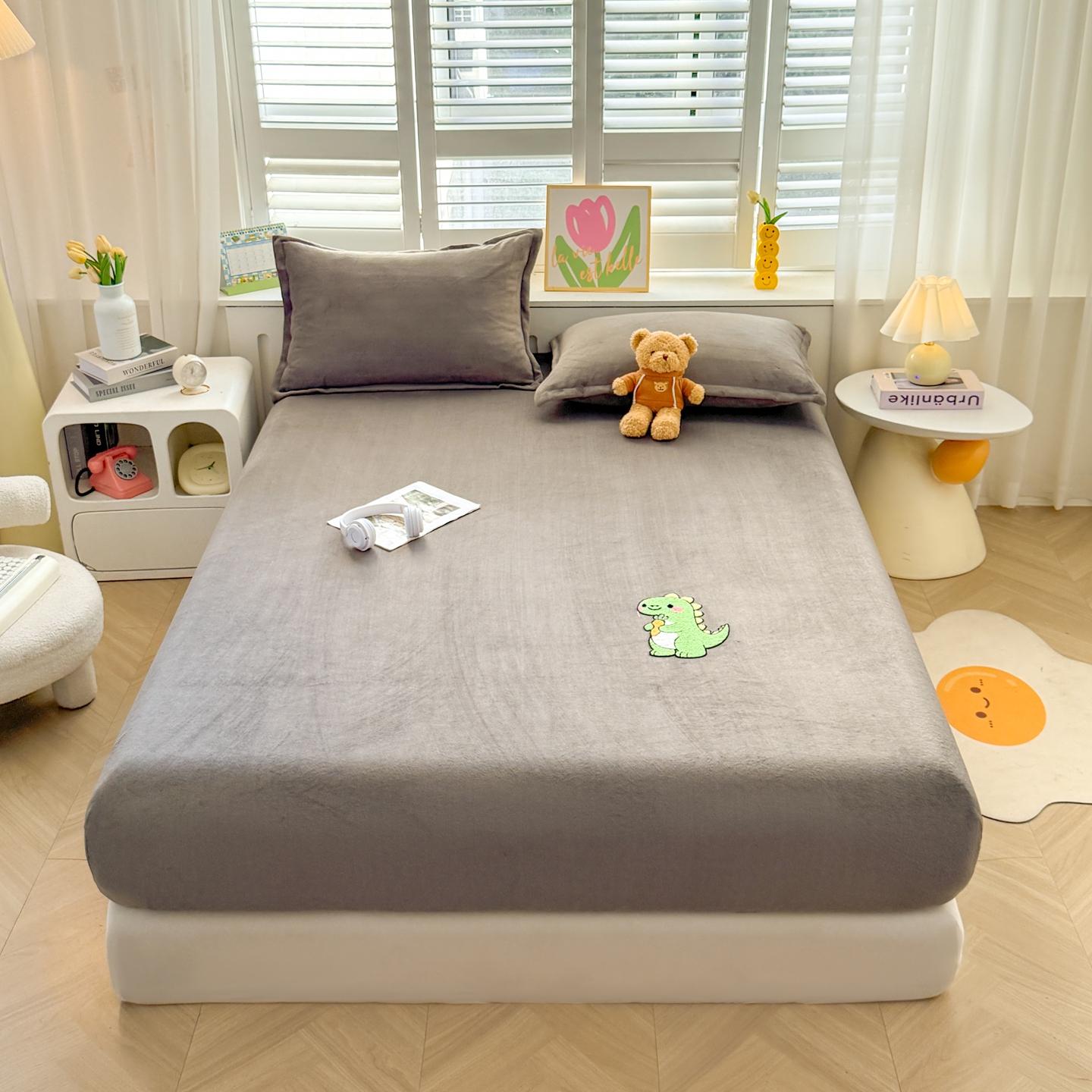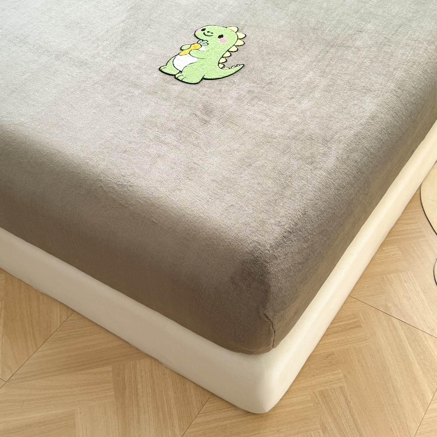 湘之帛 2025新款牛奶绒印花床笠 小恐龙-深灰