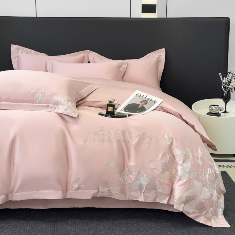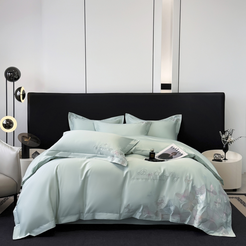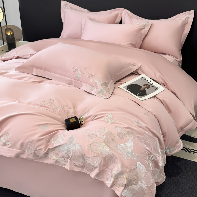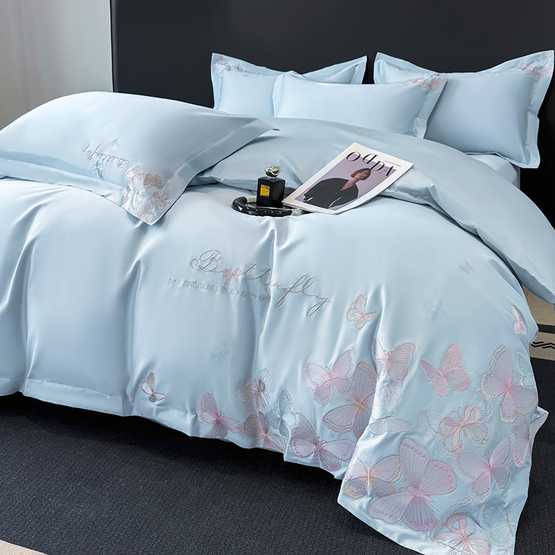 (总)2025新款刺绣亲肤棉简约四件套 蝶舞的恋歌