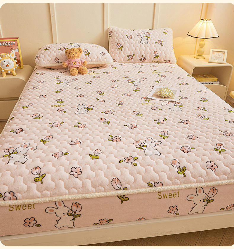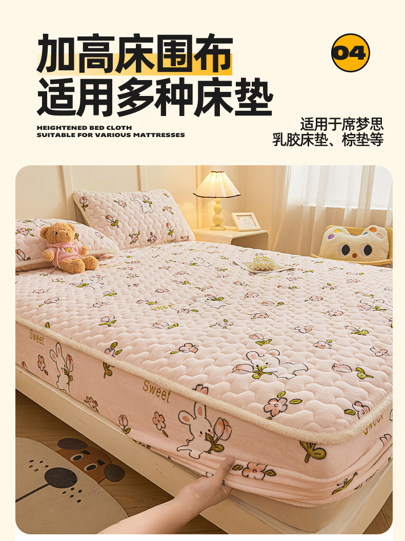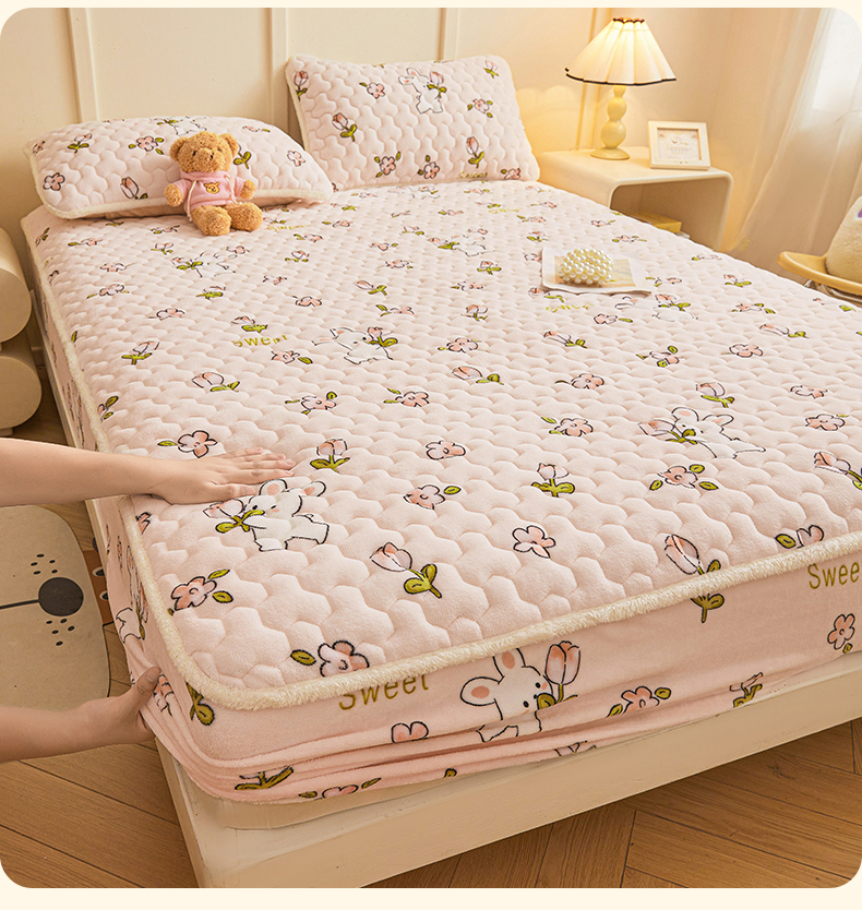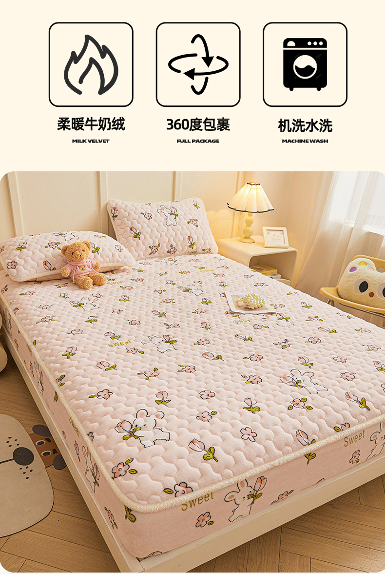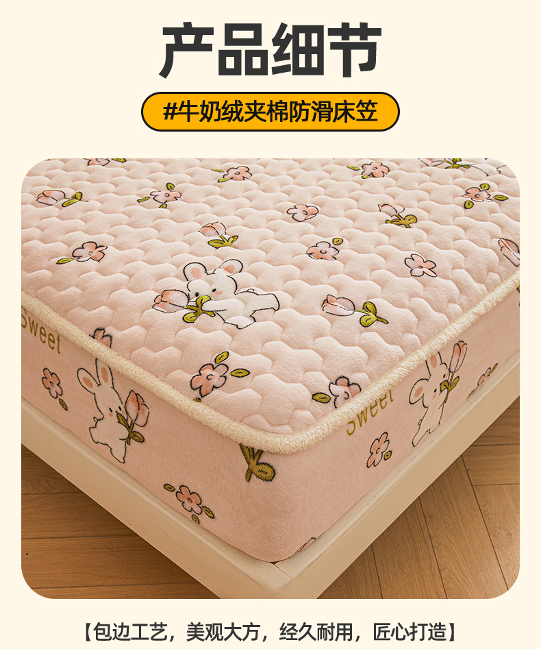 当前位置: 91家纺网 > 商品网购 > 床上用品 > 床垫套 > 雯豆家纺 2025新款牛奶绒夹棉床笠印花款床垫保护套秋冬保暖床罩 牛奶绒夹棉床笠-月季小兔